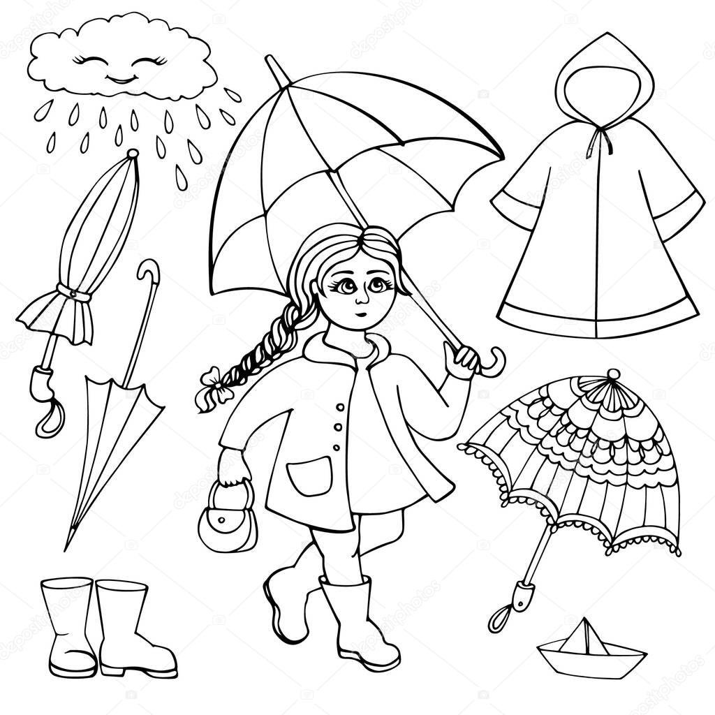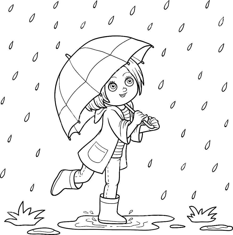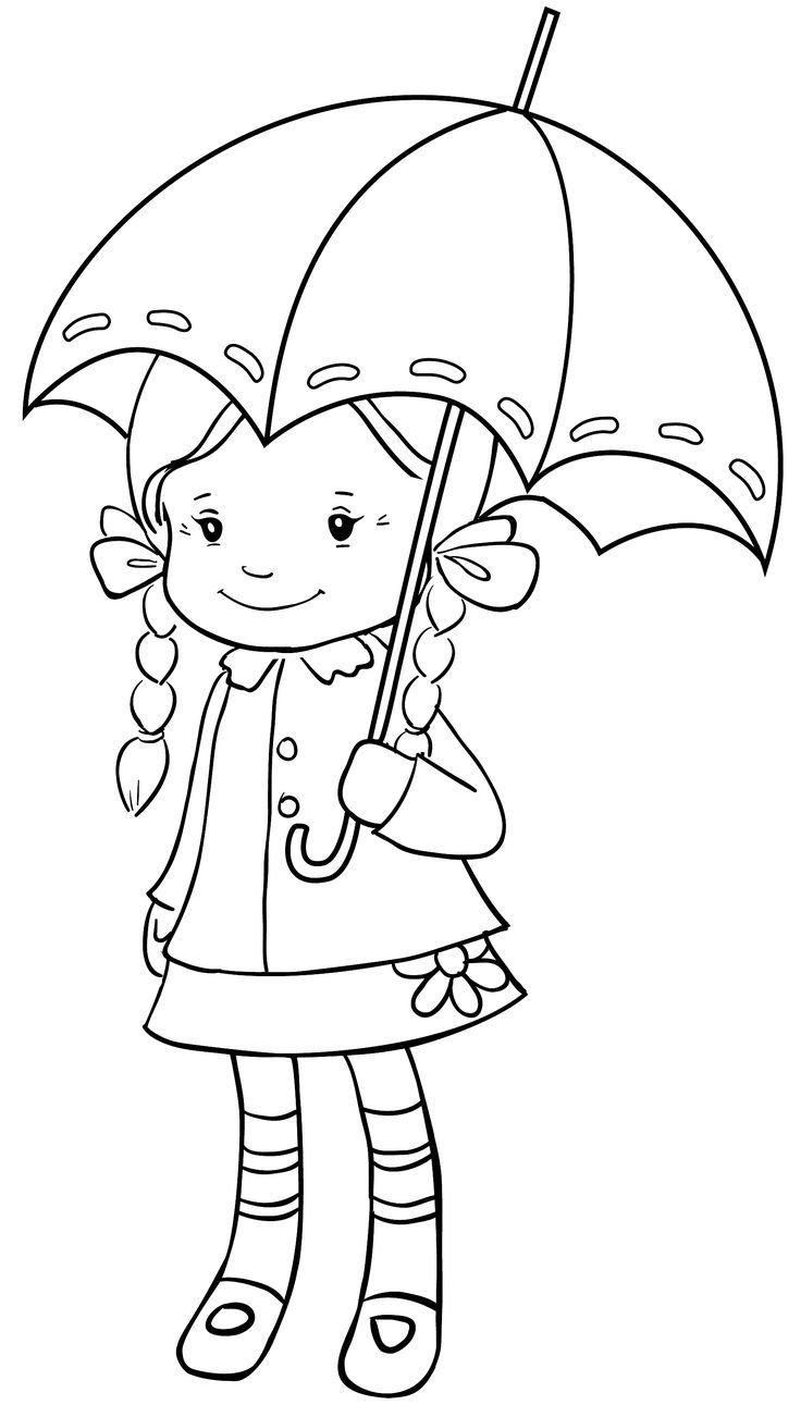 Девочка под зонтом раскраска