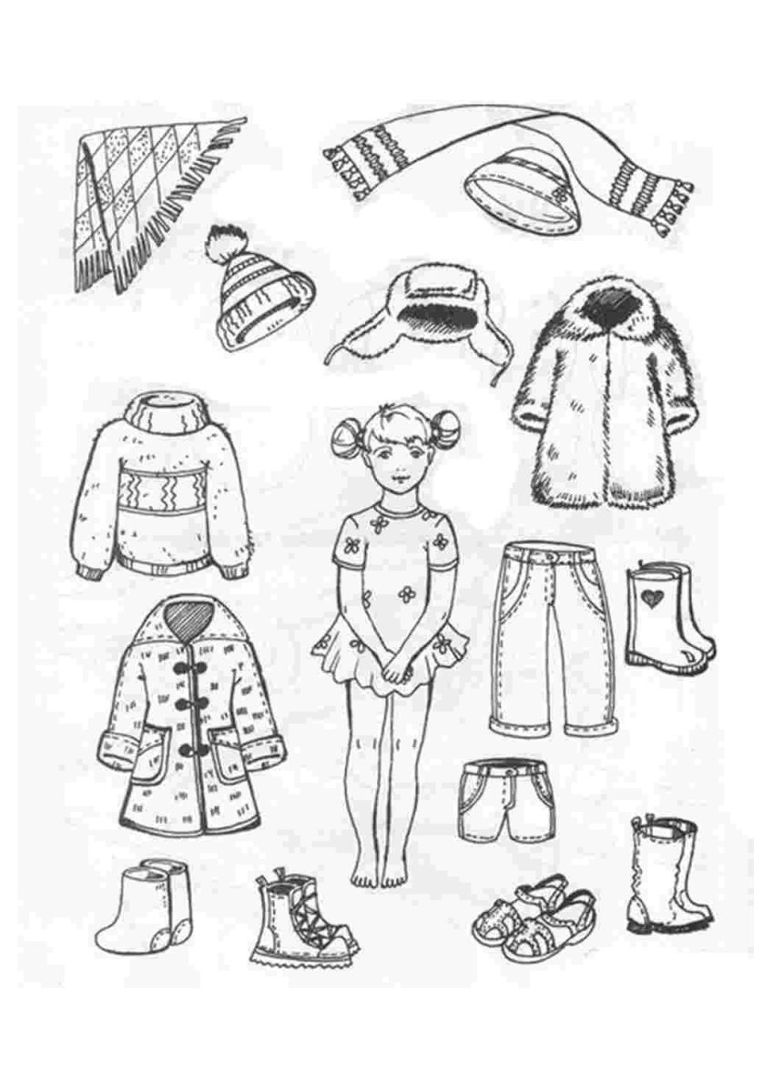 Раскраски зимней одежды для детского сада
