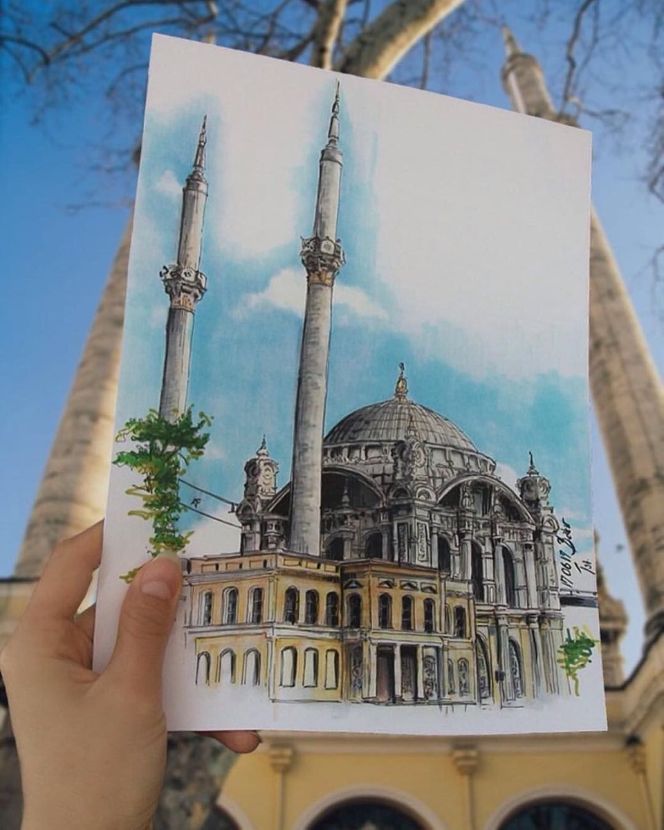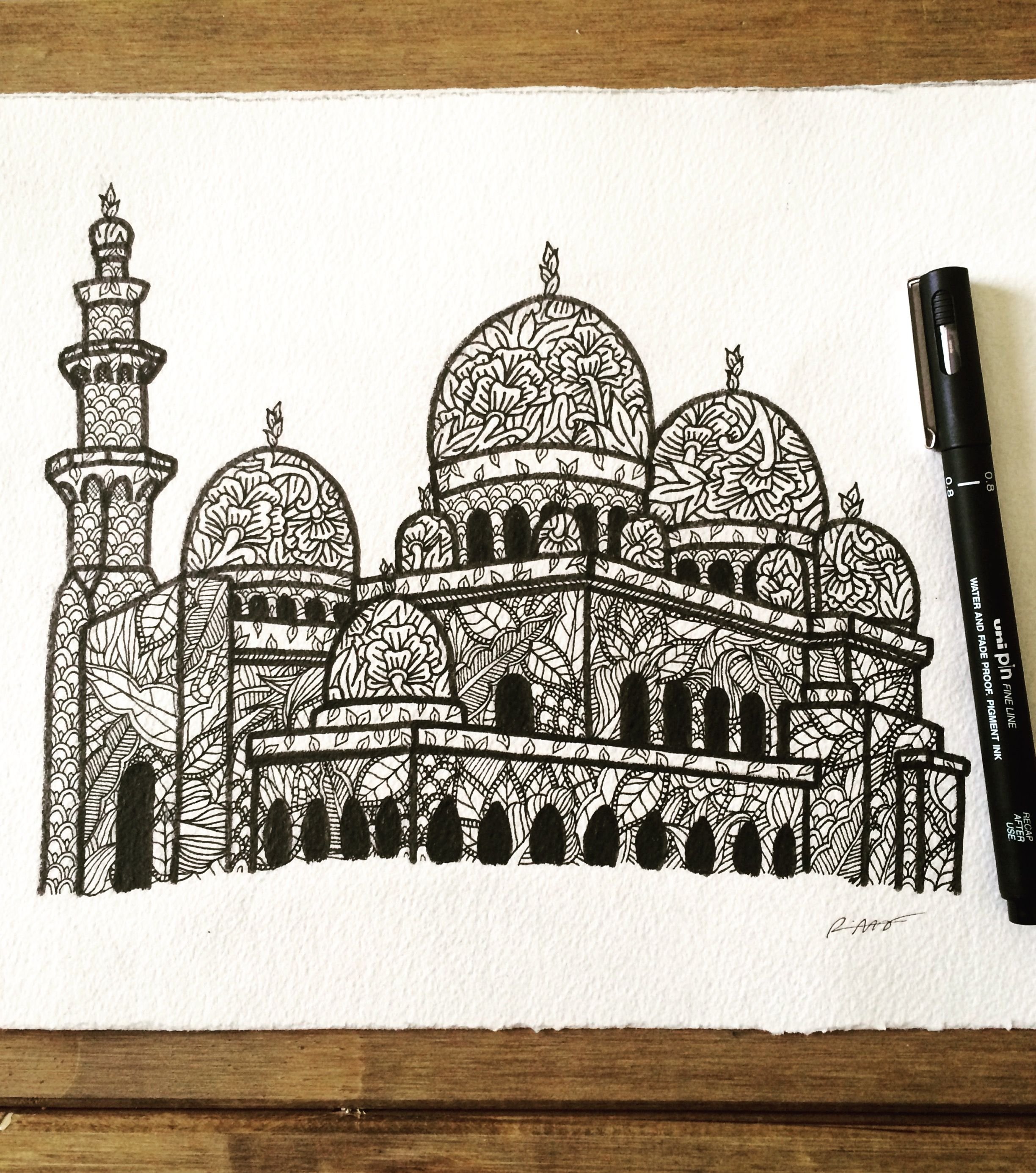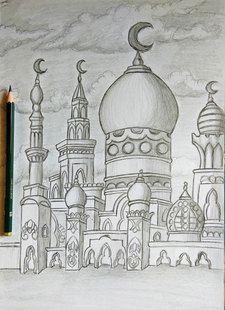 Мечеть пророка Мухаммеда в Медине нарисовать