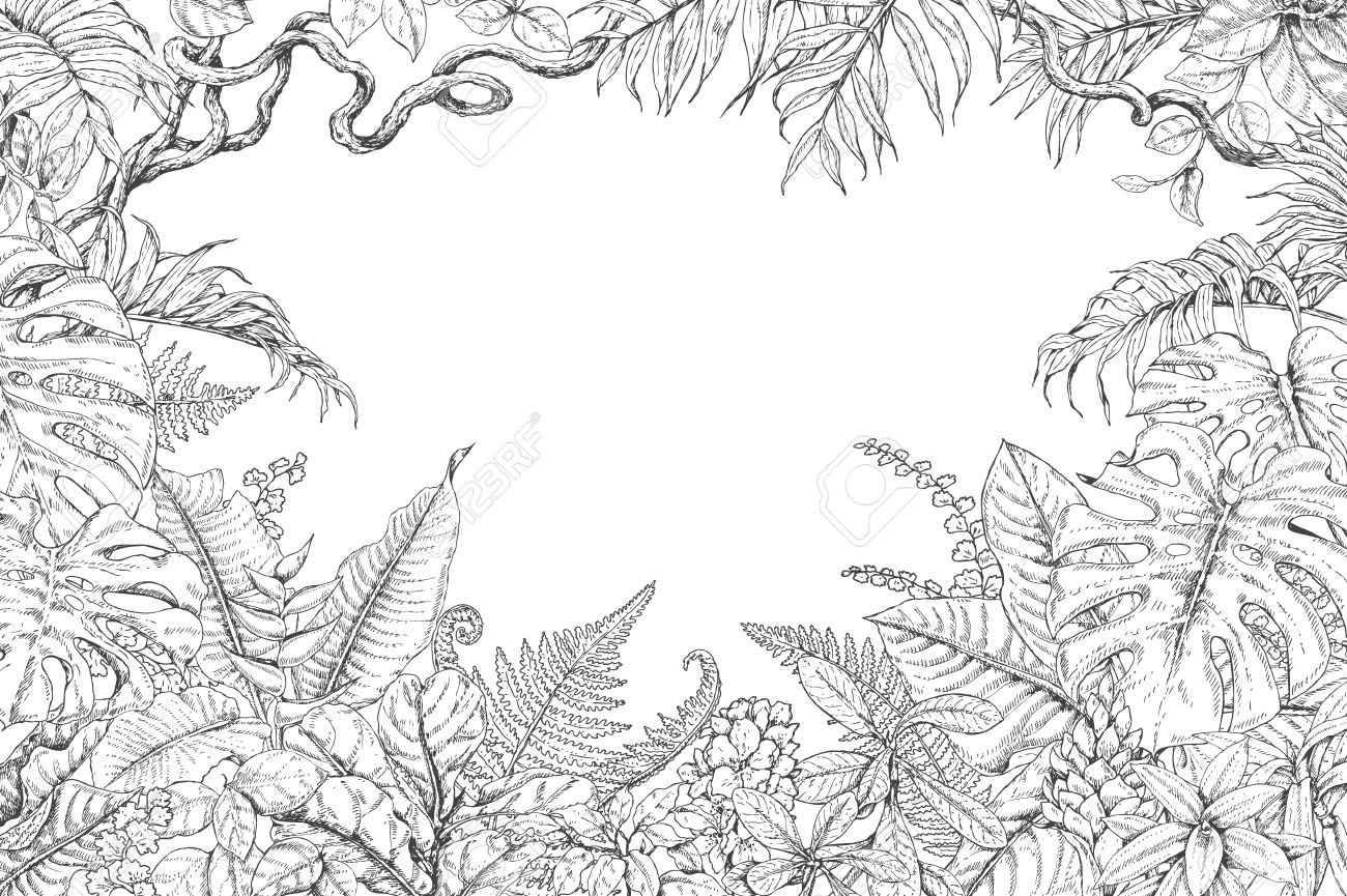 Листы растений тропические зарисовка