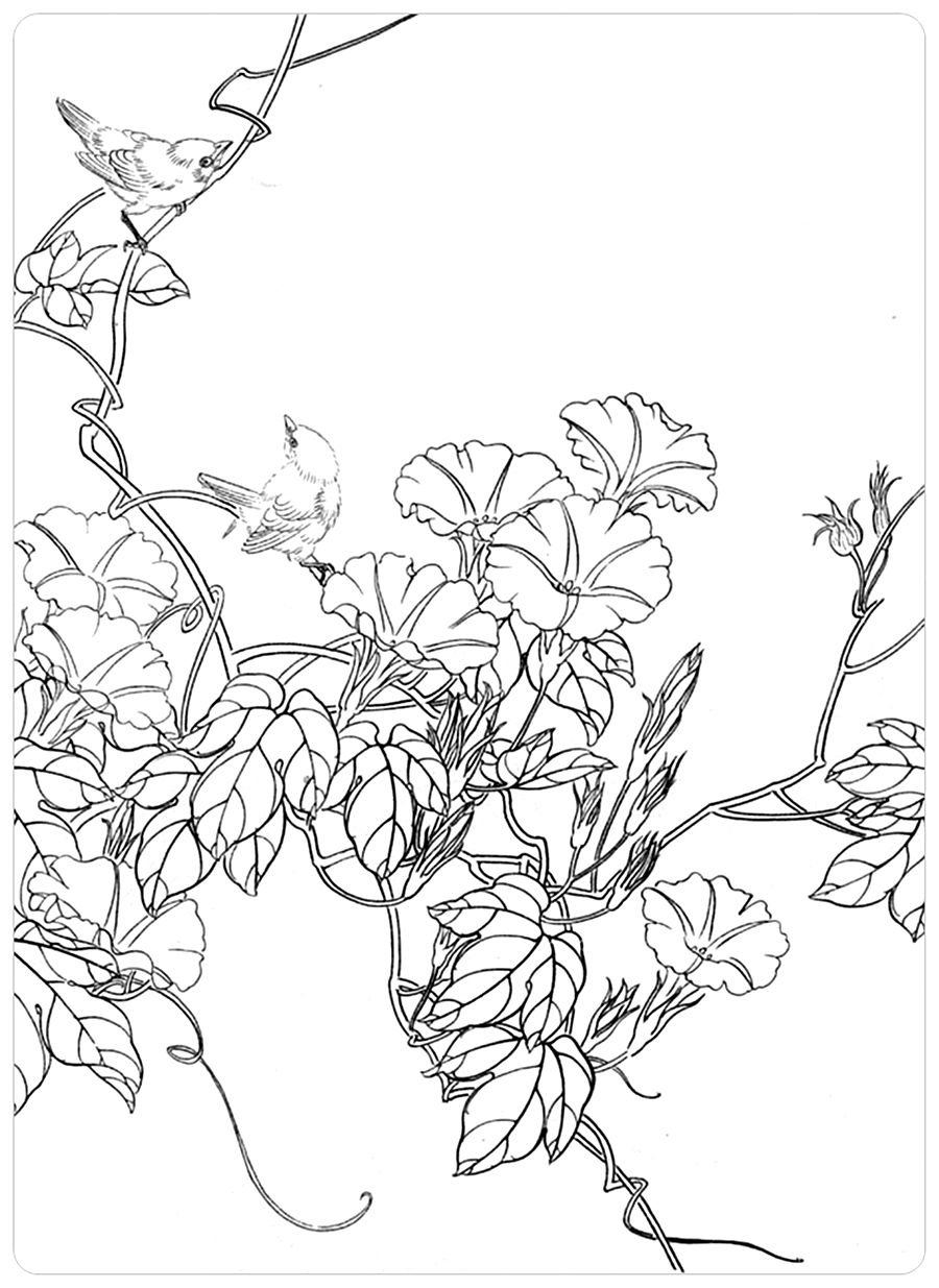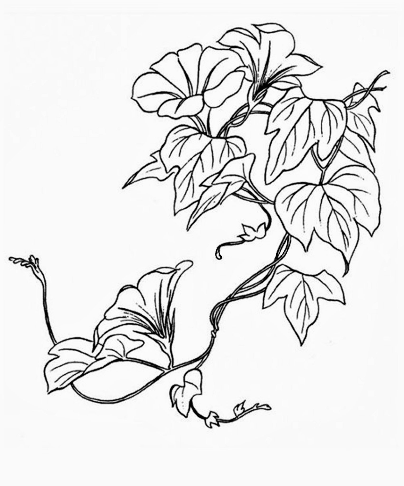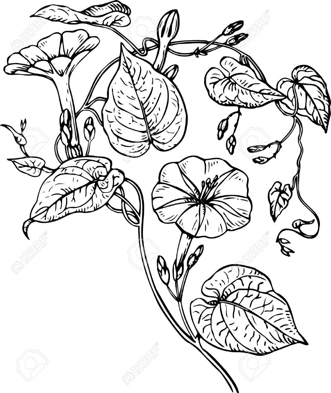 Цветы вьюны черно белое