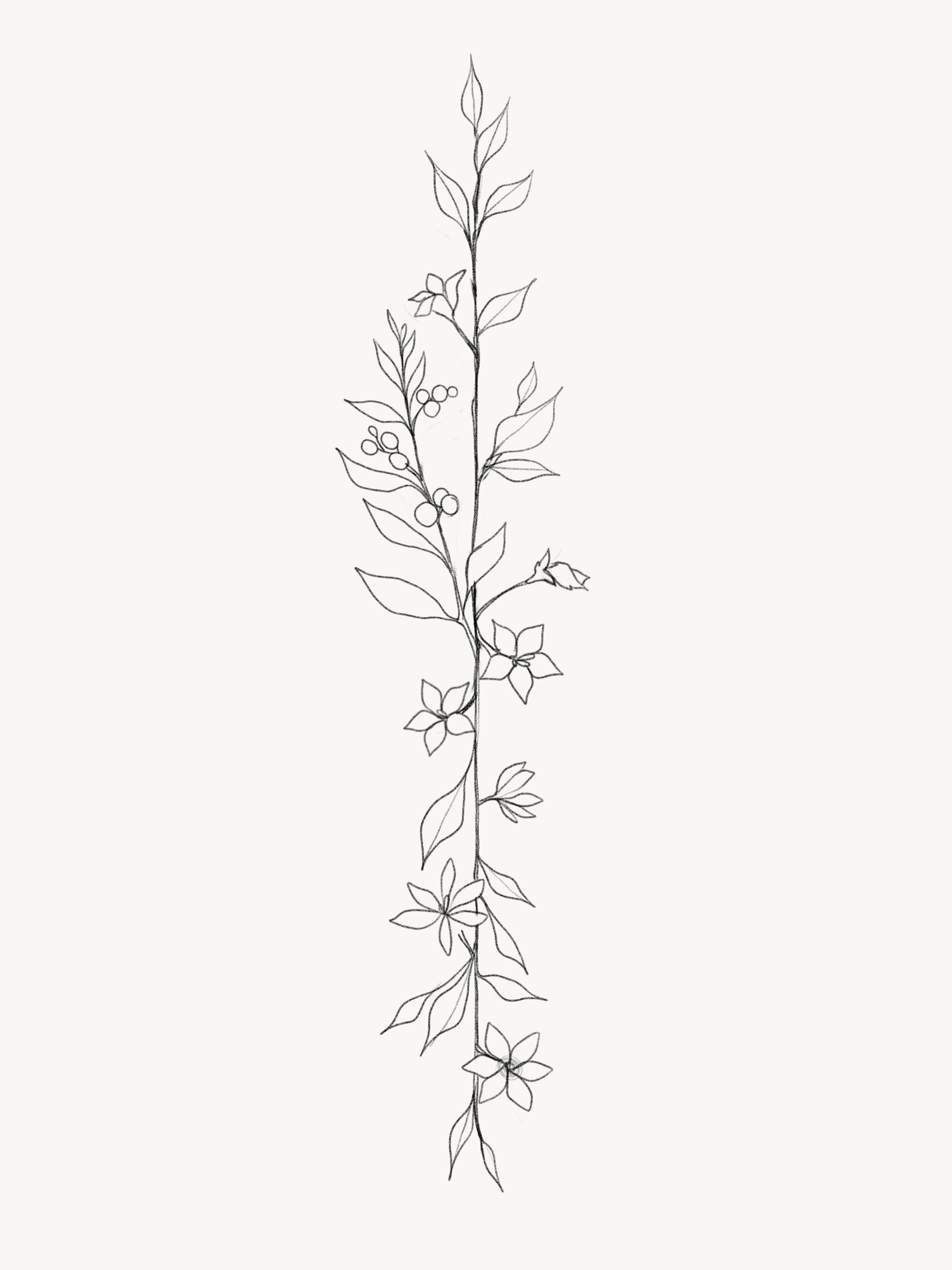 Эскиз тату веточка с цветами