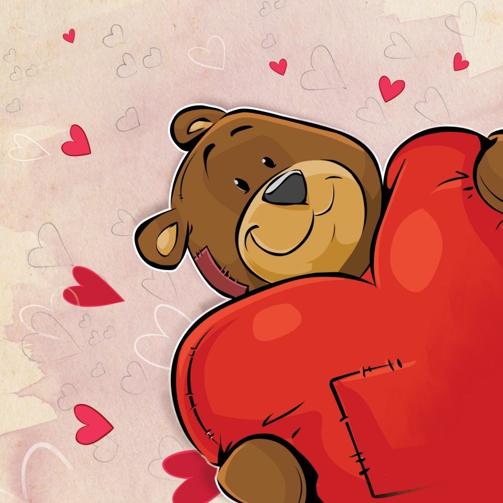 Медвежонок обнимает сердечко