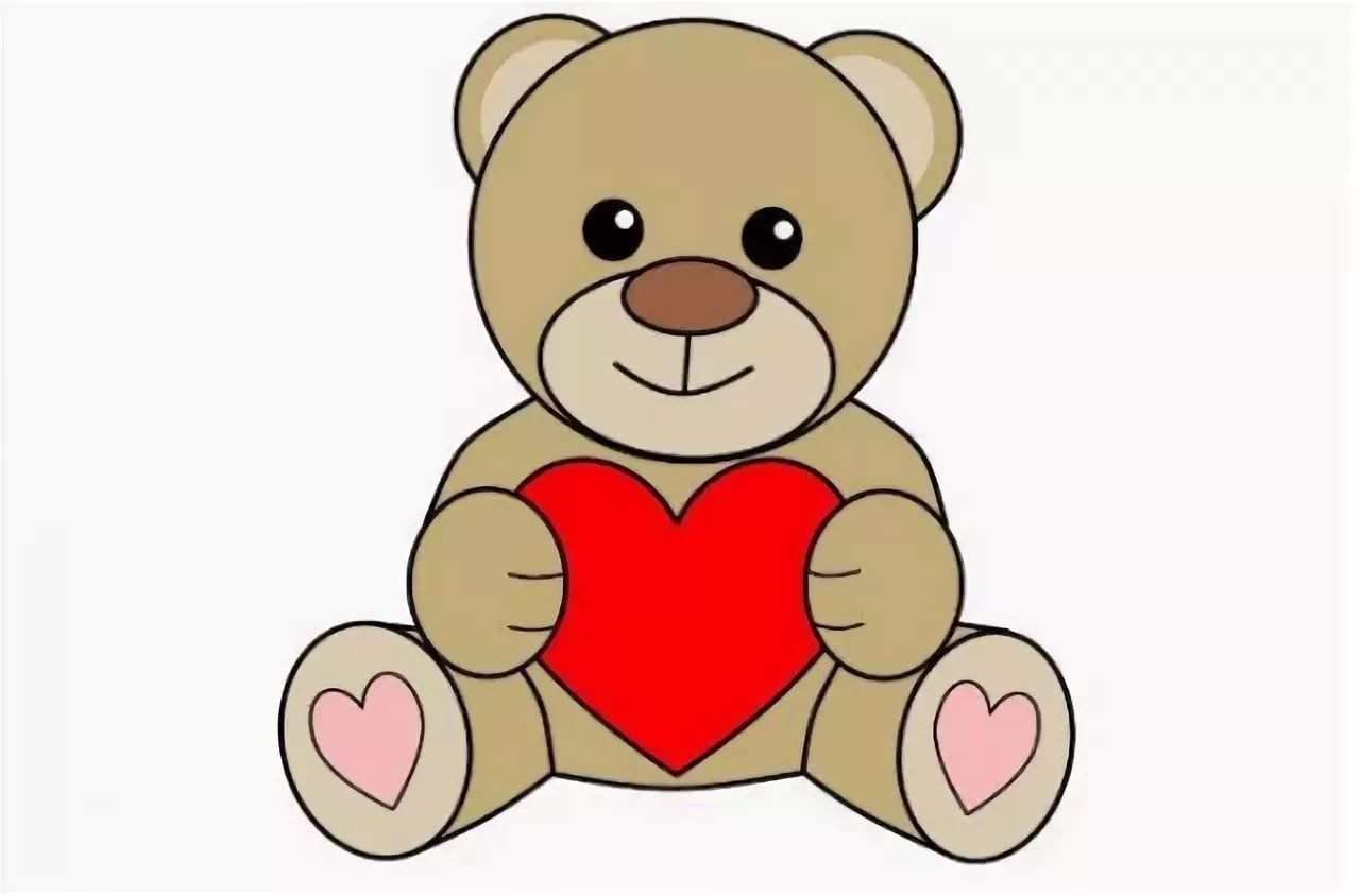 Медвежонок рисование с сердечком в руках