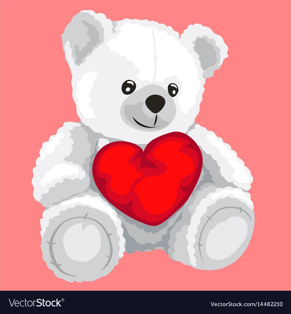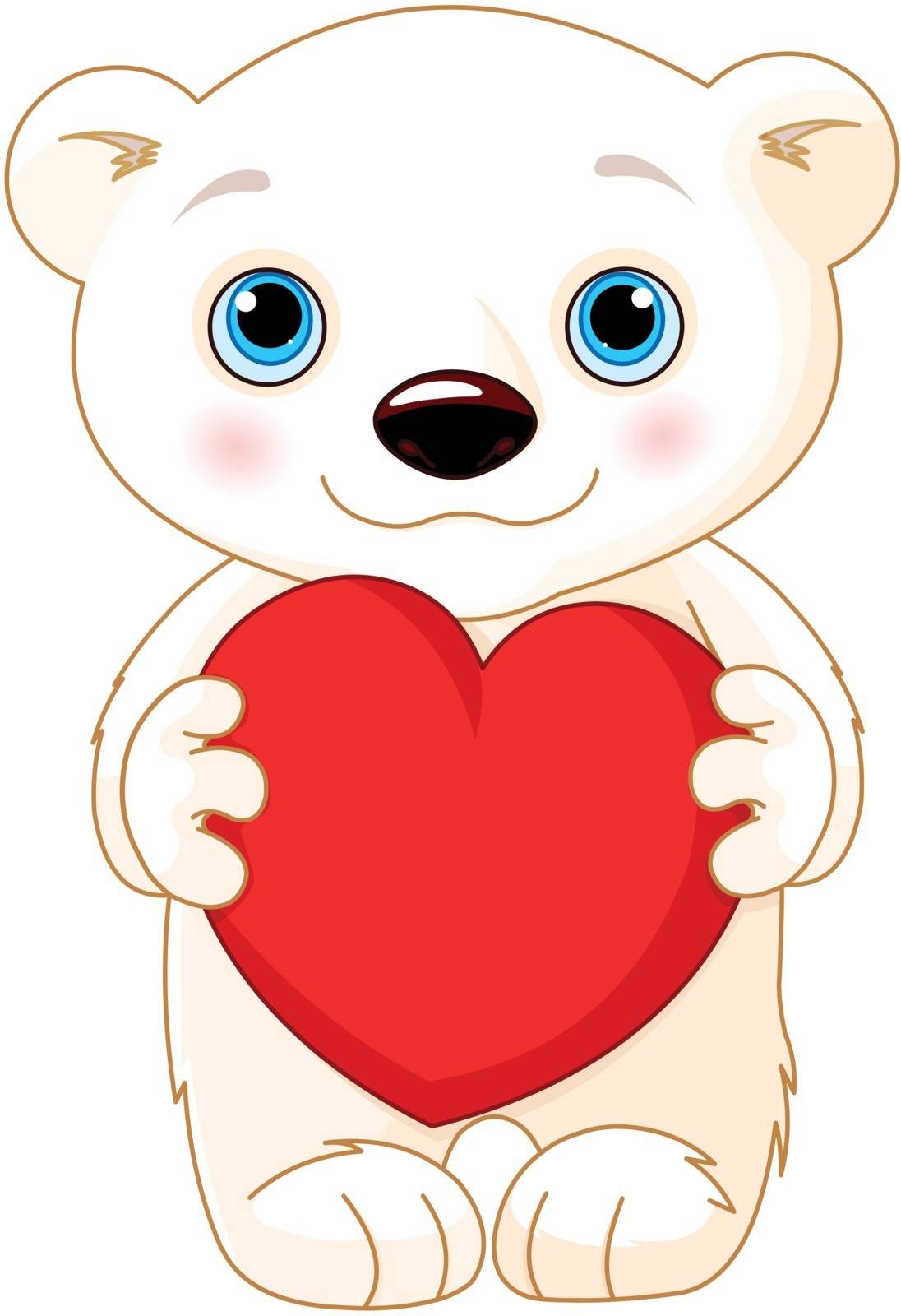 Белый мишка мультяшный с красным сердечком