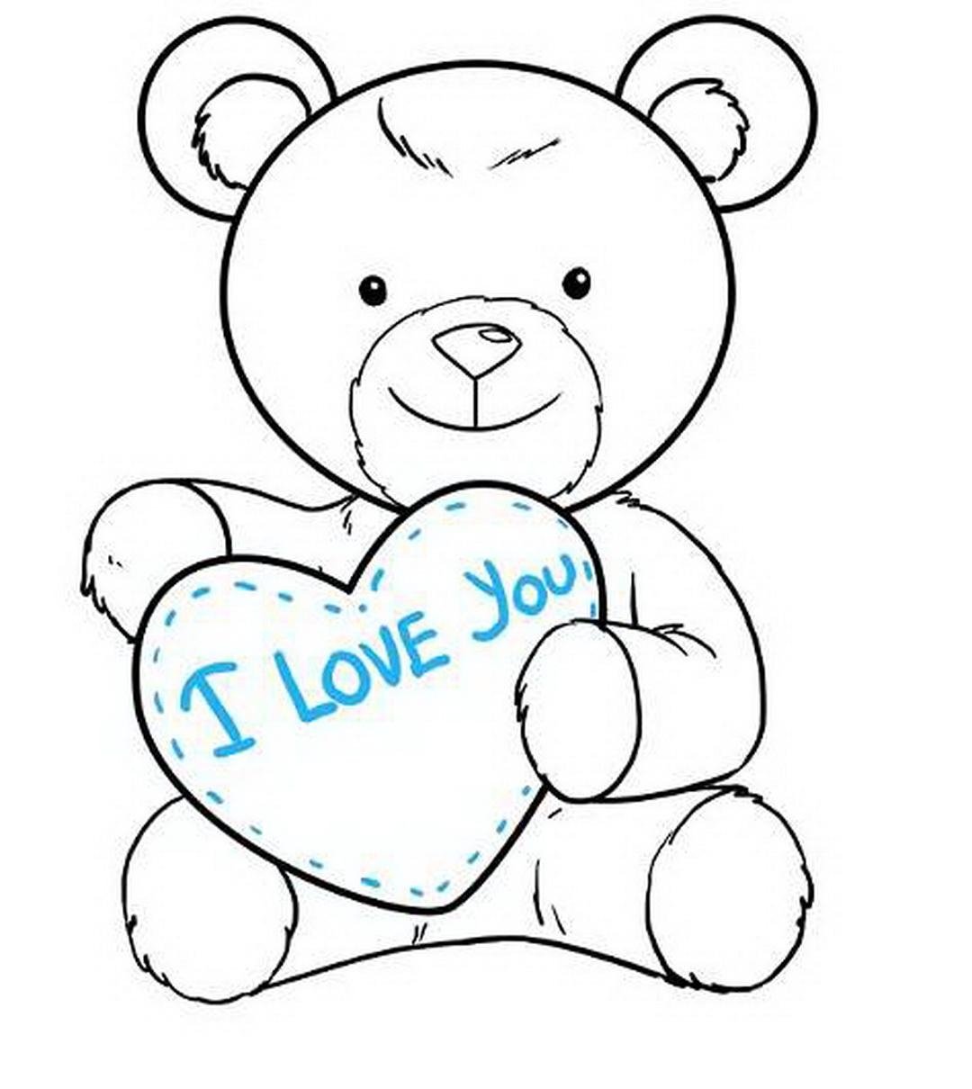 Мишка с сердцем в лапах рисунок карандашом