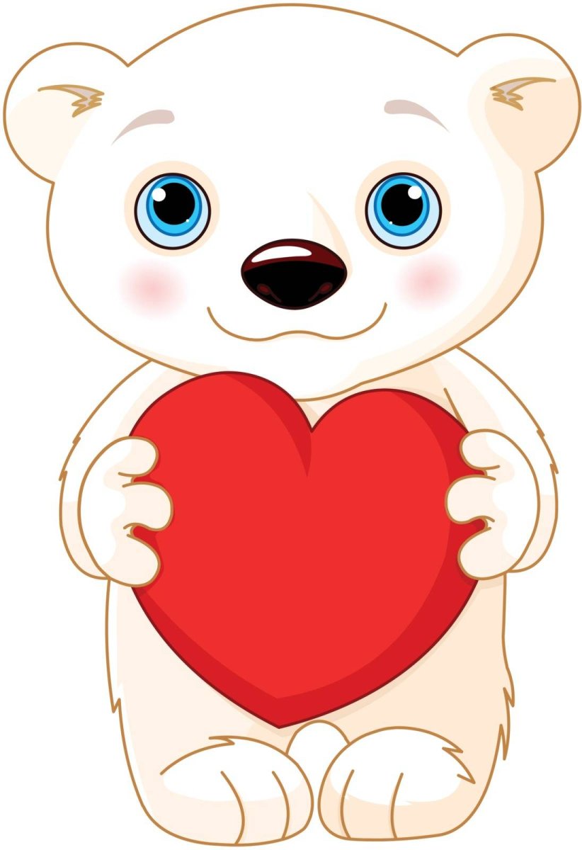 Белая мишка с сердечком risunki
