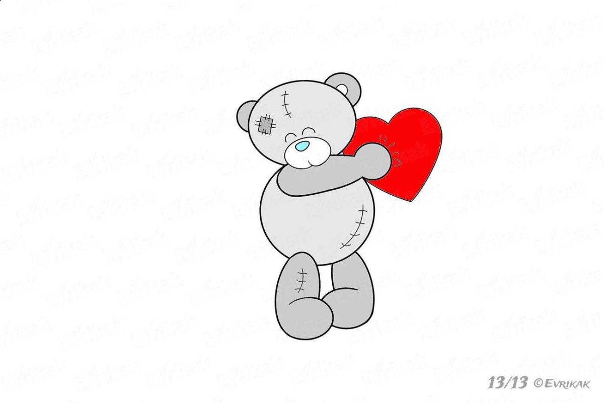 Нарисовать плюшевого мишку с сердечком