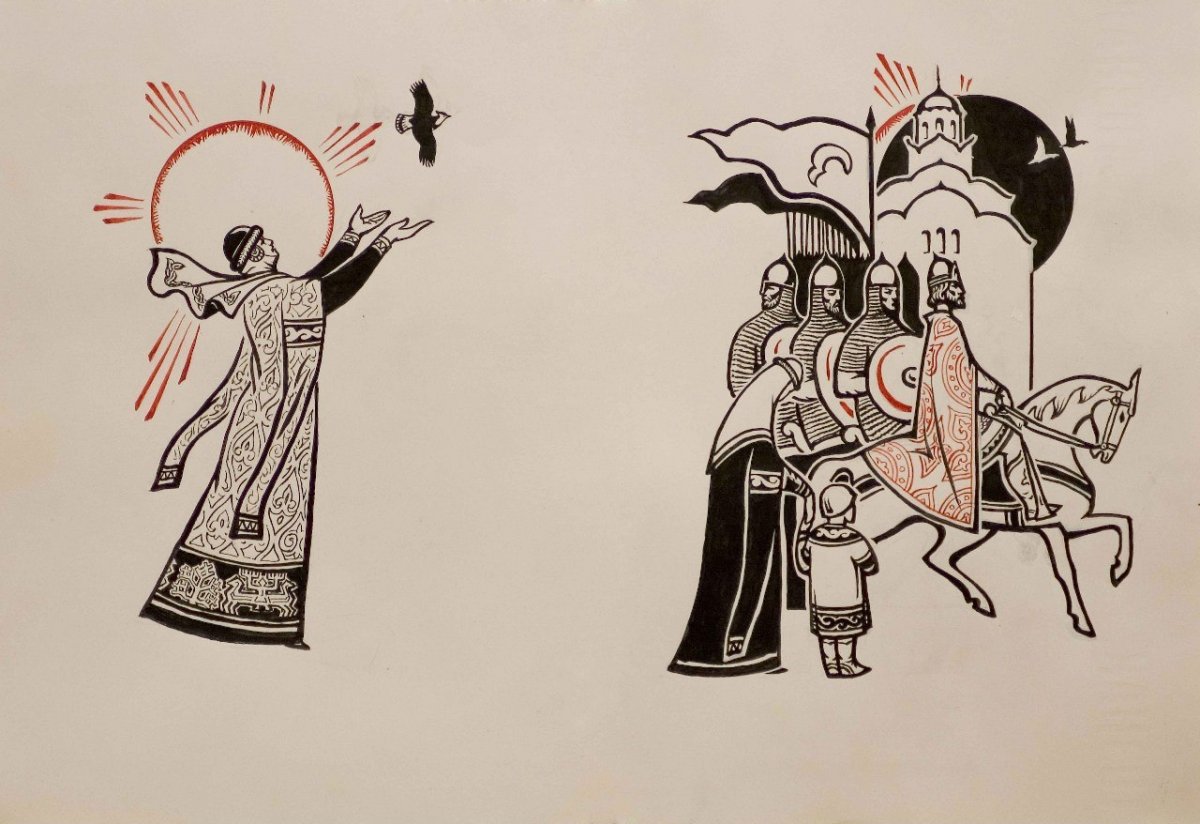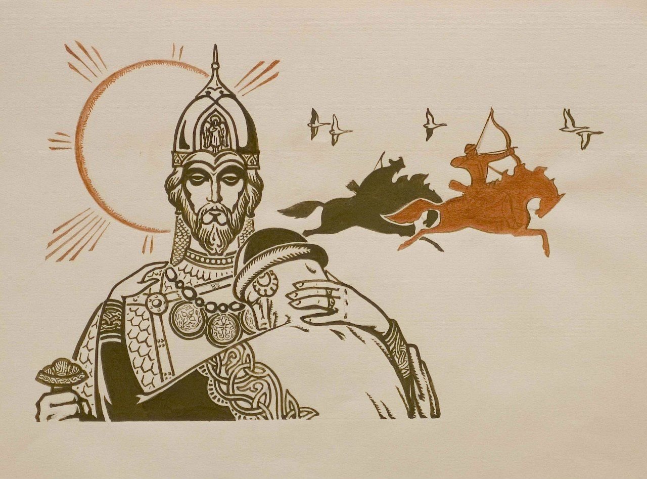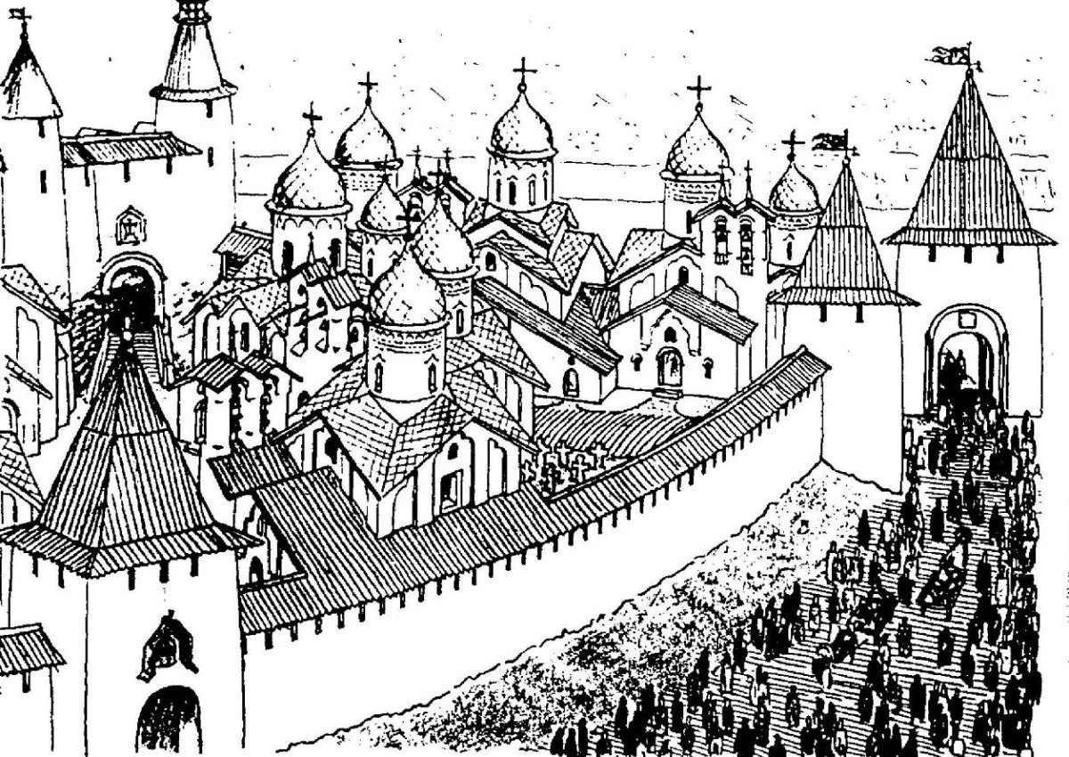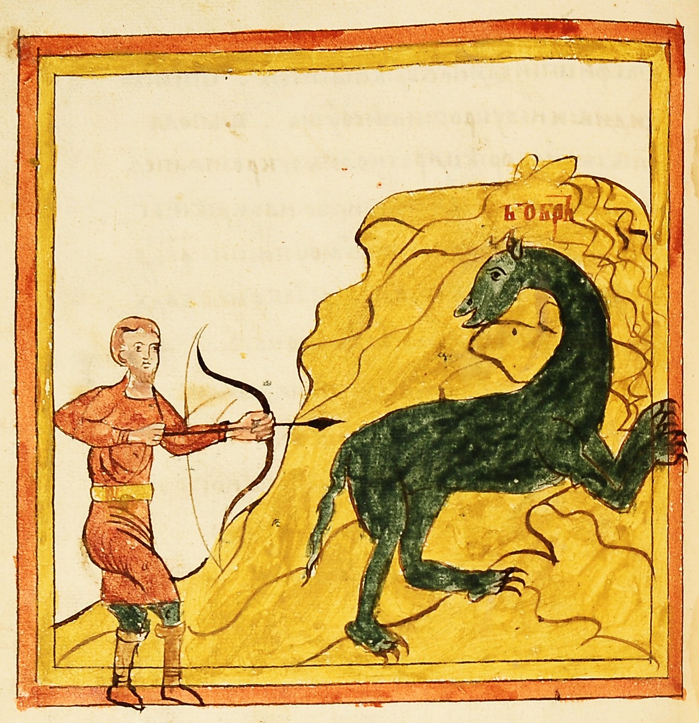 Пленение рептилоида". Гравюра. Великий Новгород,1154 г.