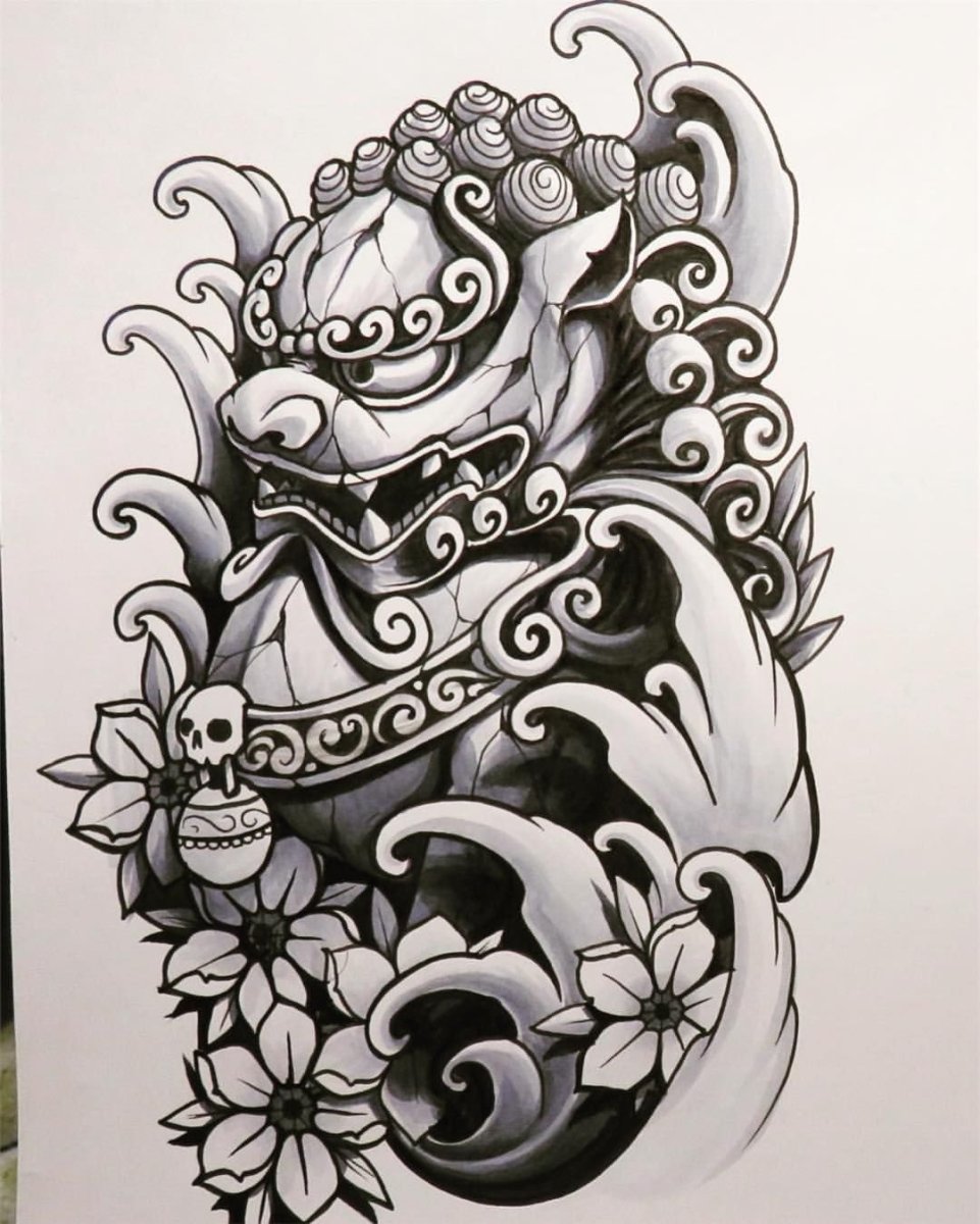 Японский Лев тату эскиз