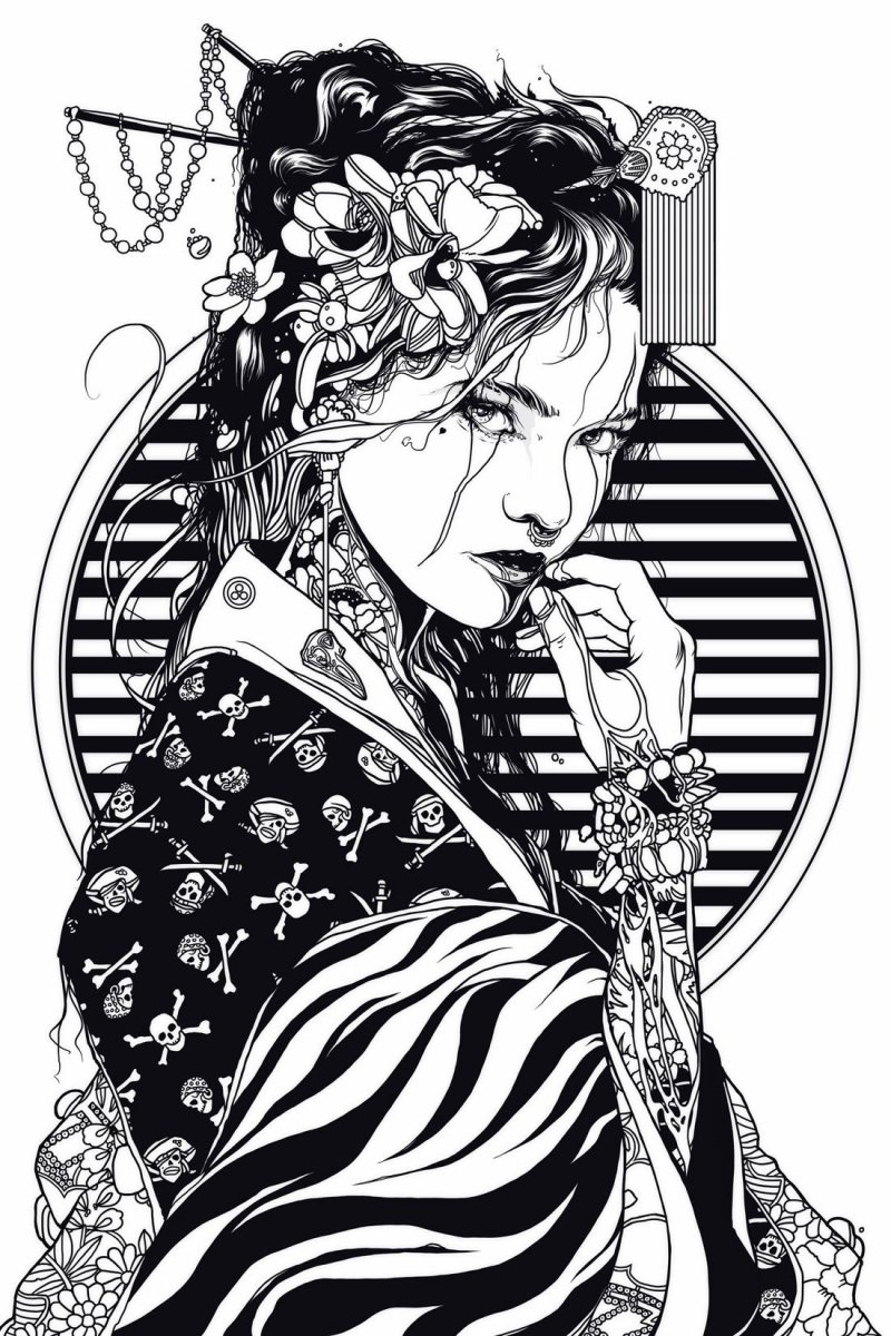 Эскиз тату японская гейша