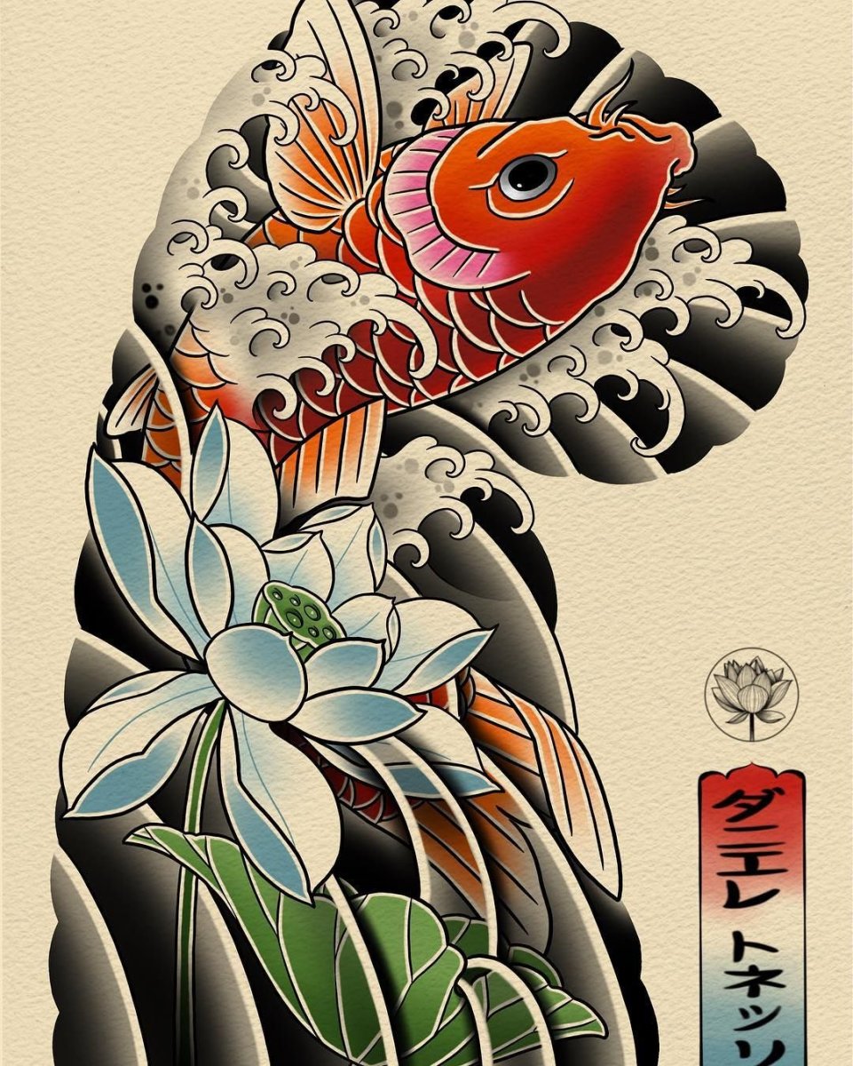 Японский Карп тату акварель