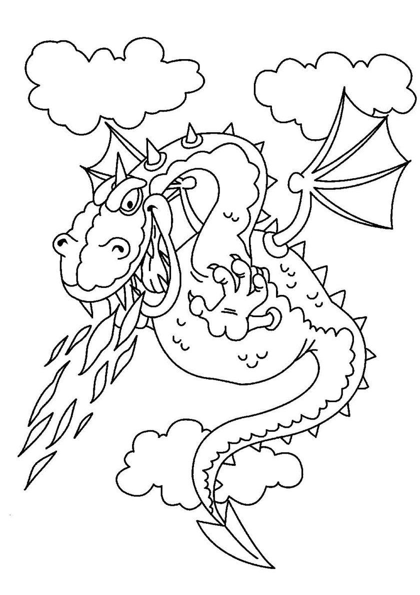 Раскраска огнедышащий дракон для детей