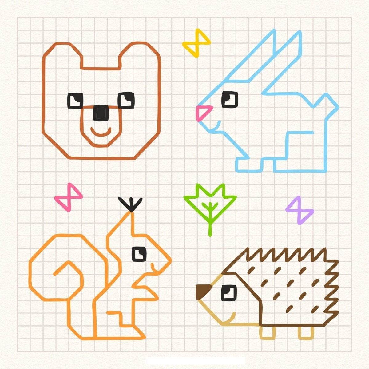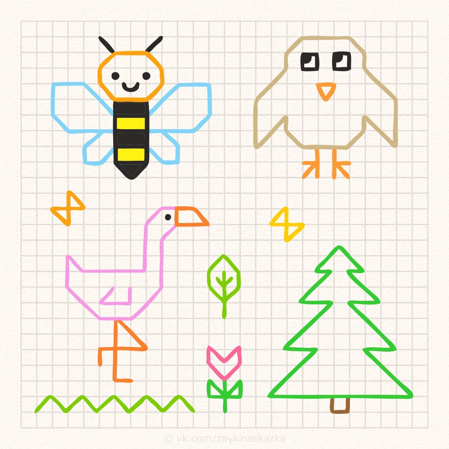 Детские рисунки по клеточкам