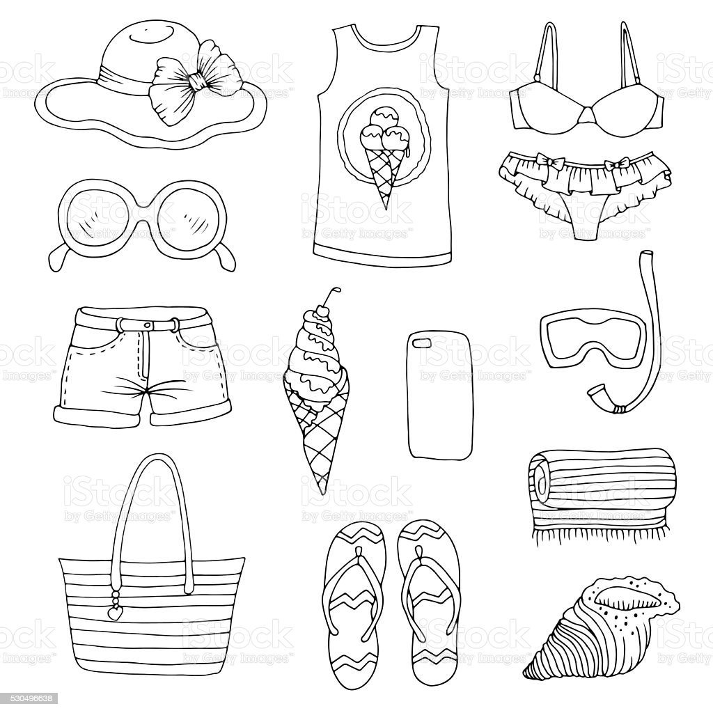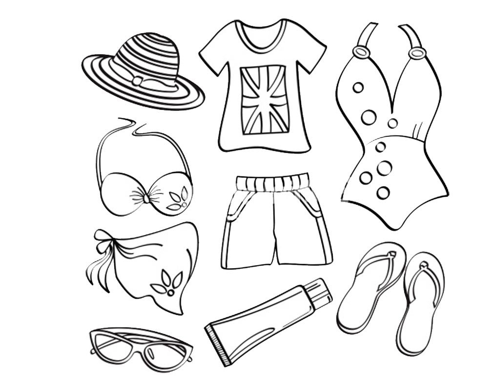 Летние вещи раскраска для детей