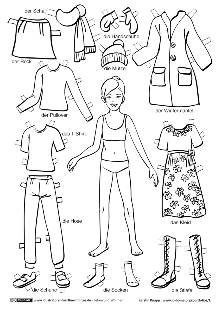 Раскраска кукла с одеждой