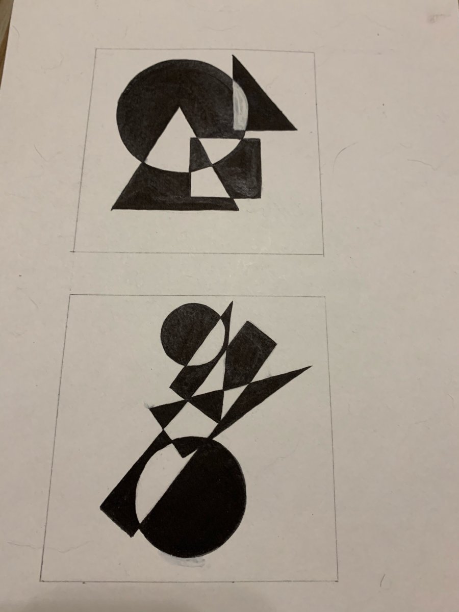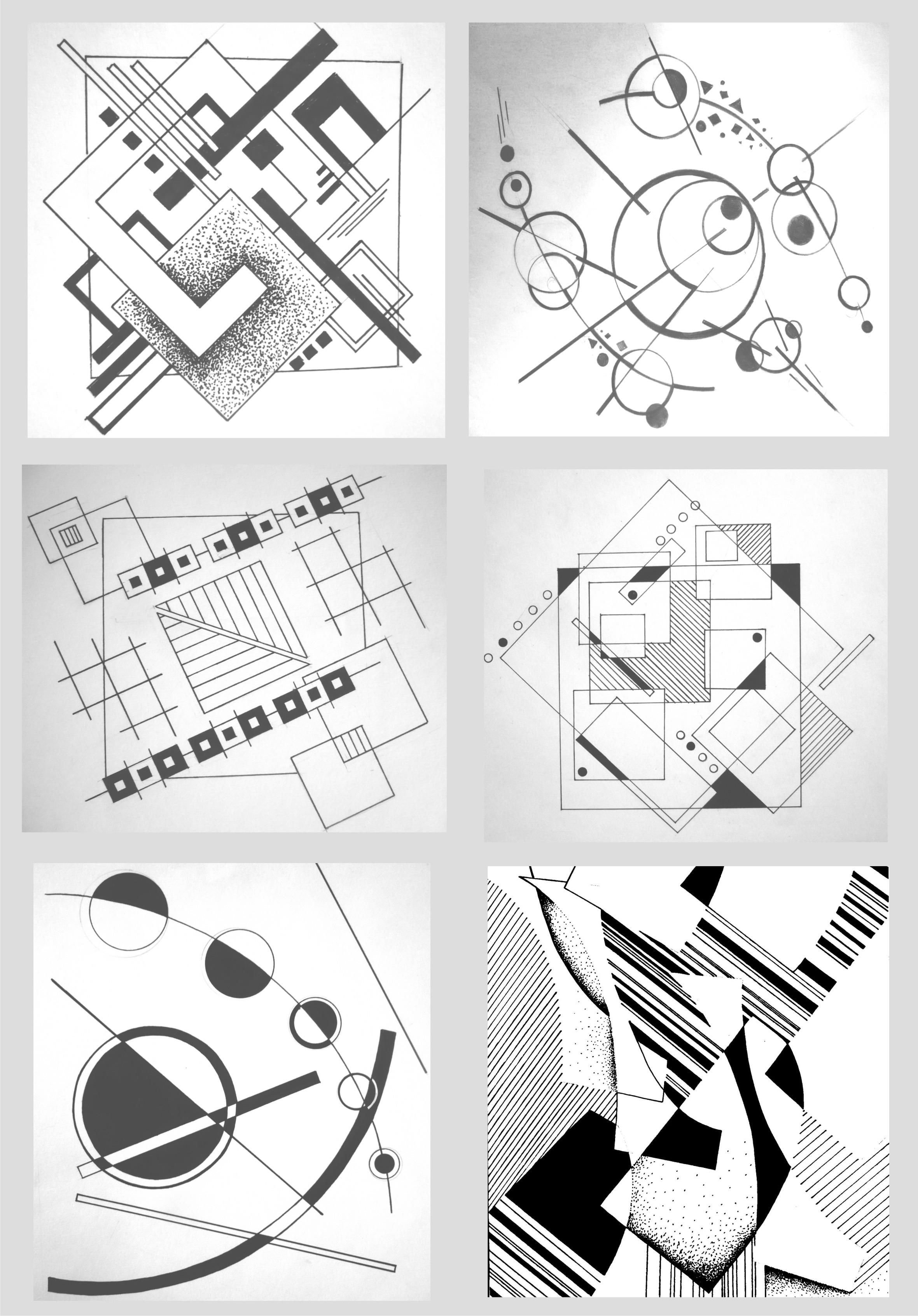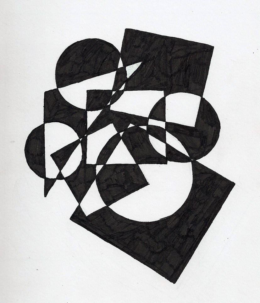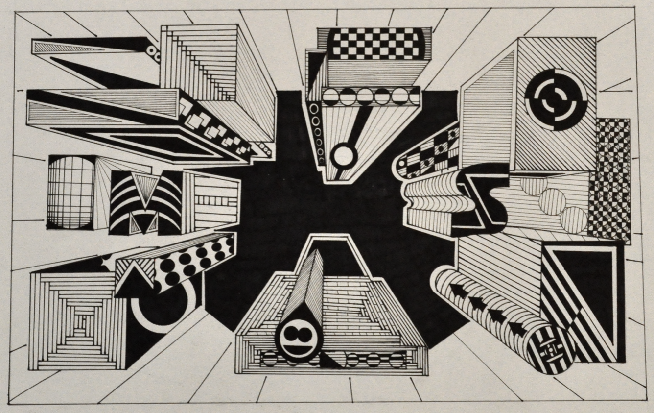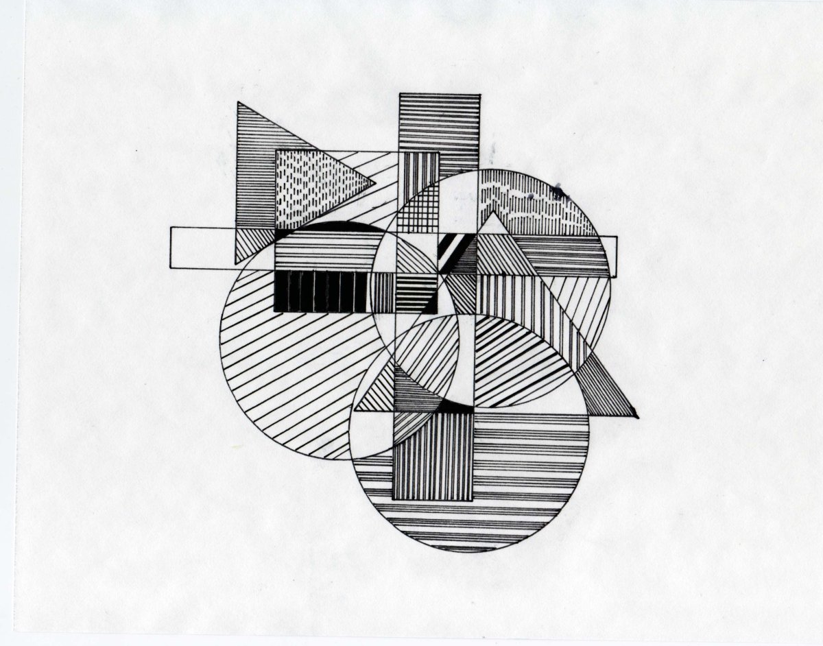 Натюрморт из геометрических форм (куб, конус, шар), Графика.