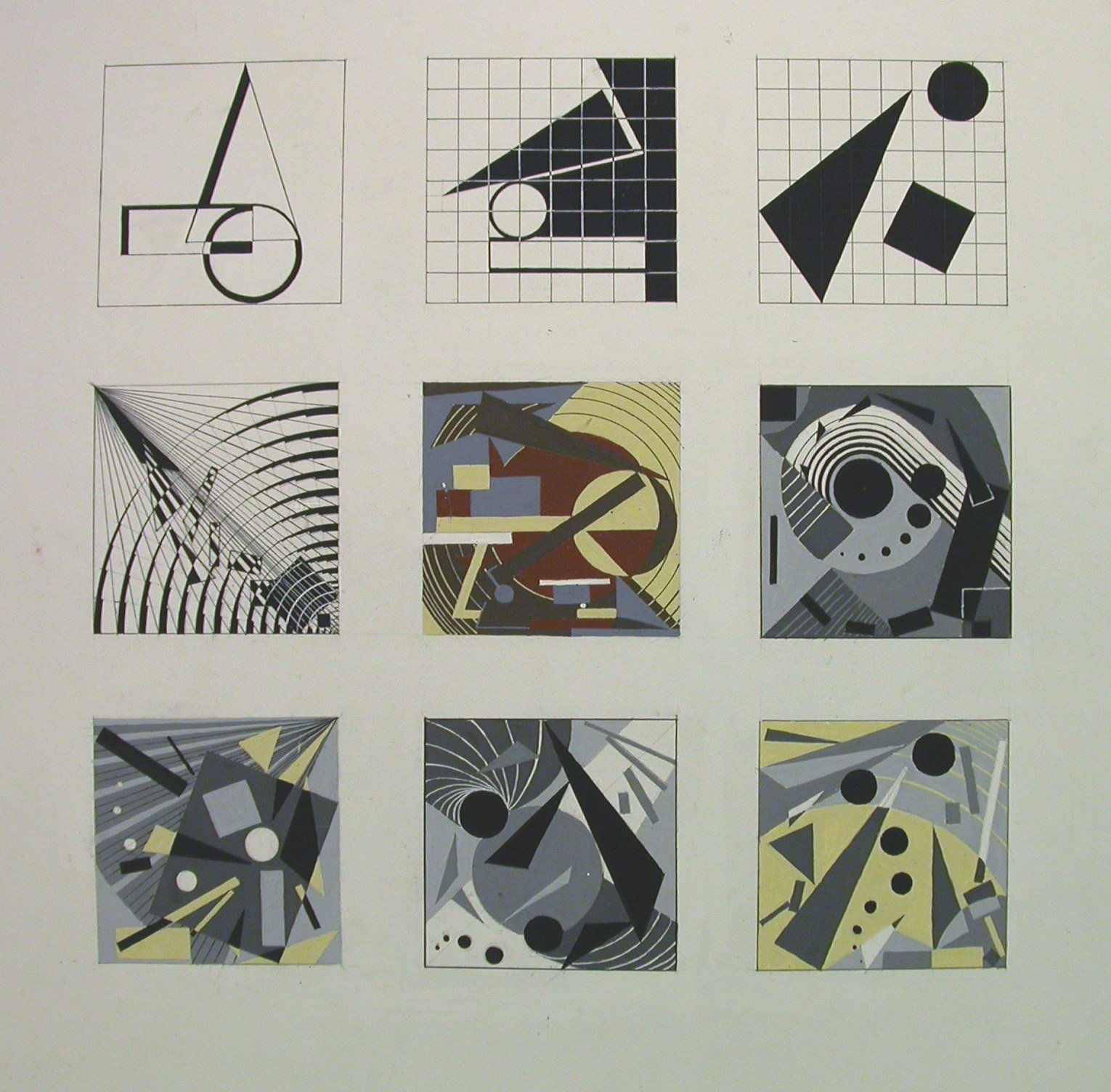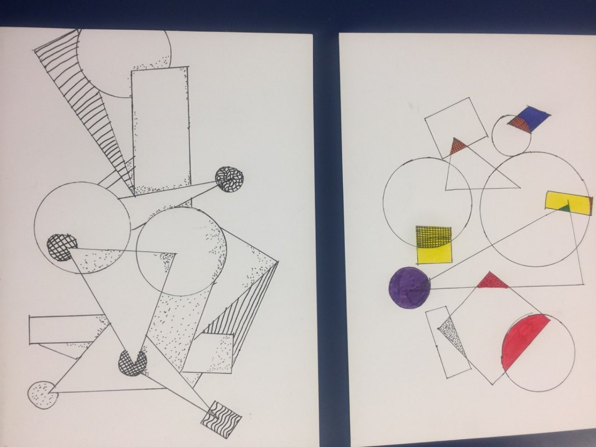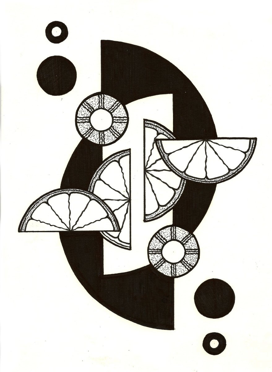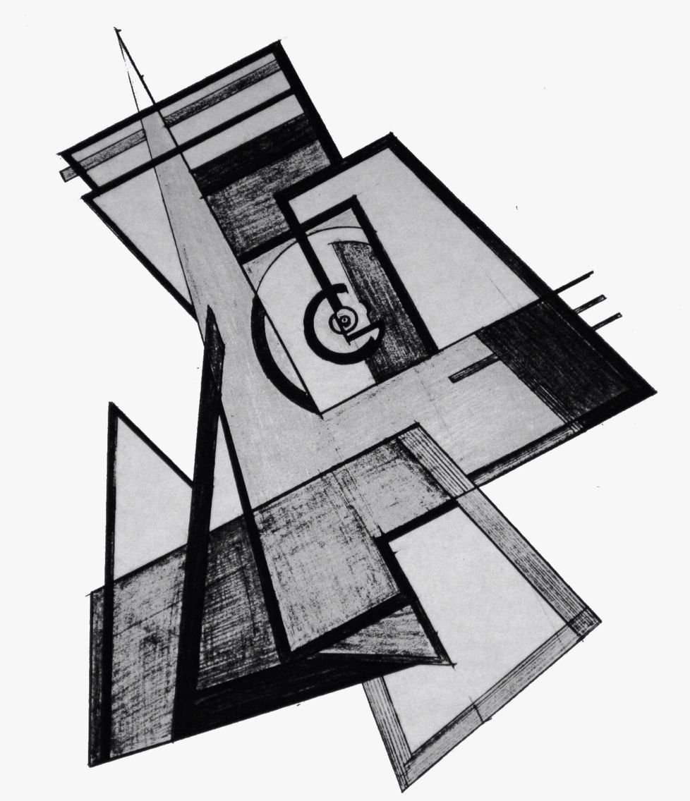 Натюрморт из геометрических форм (куб, конус, шар), Графика.