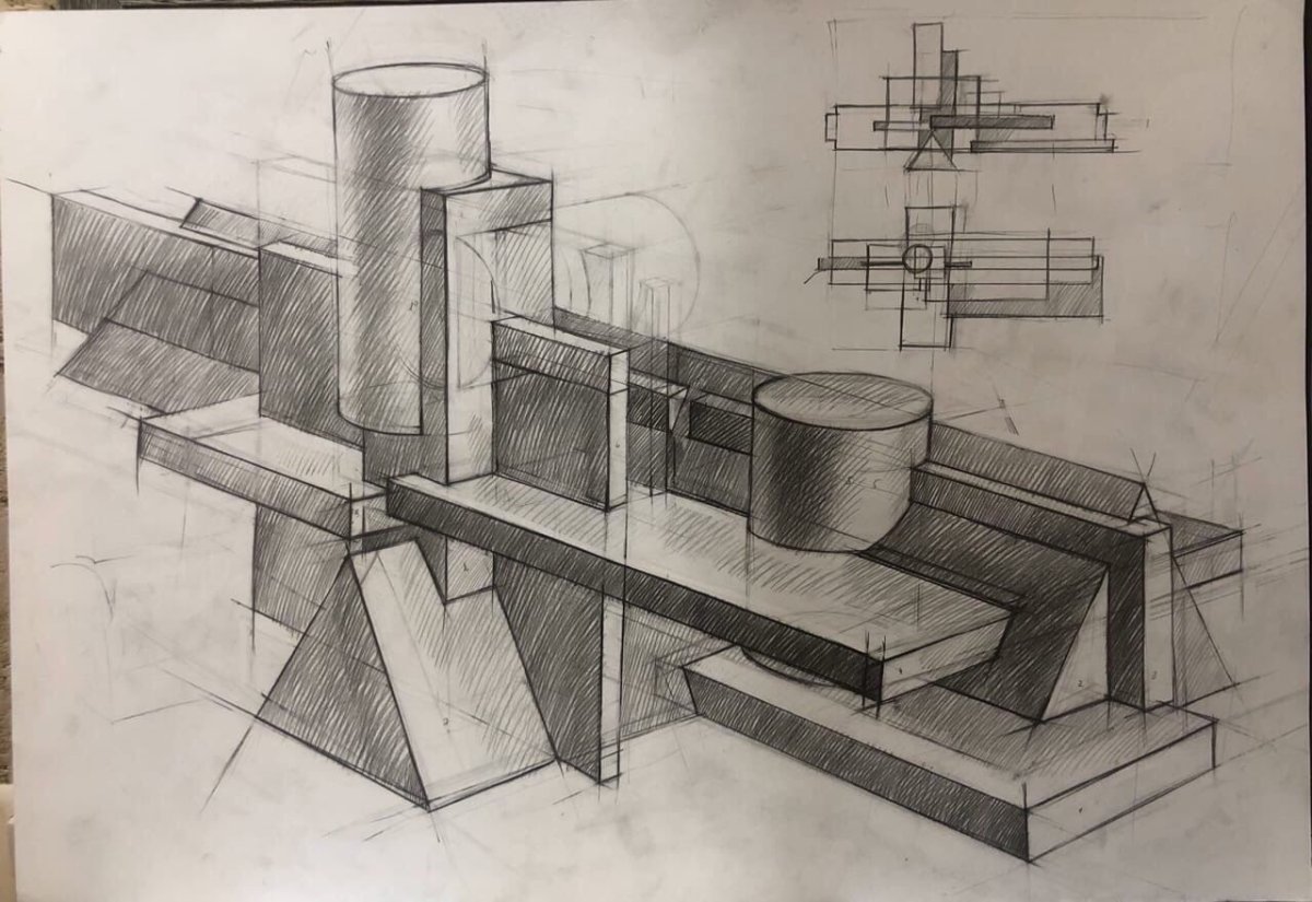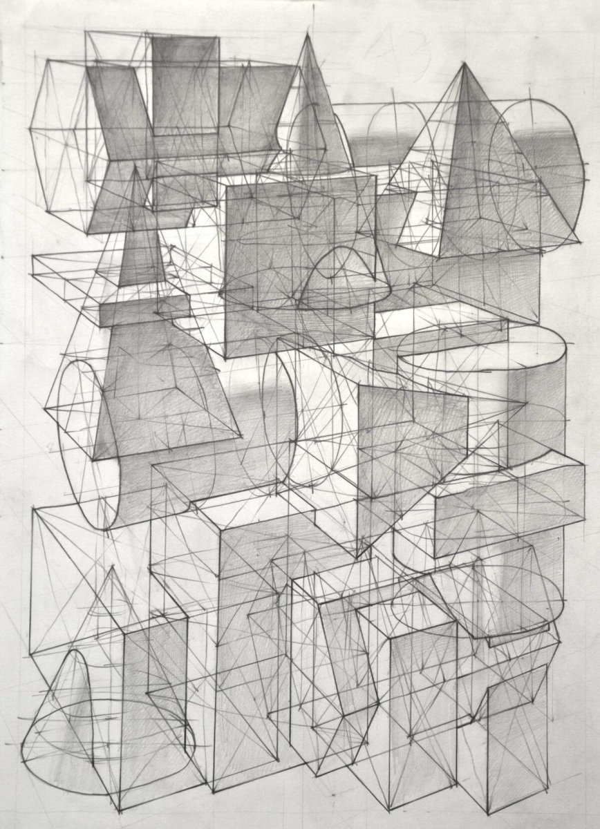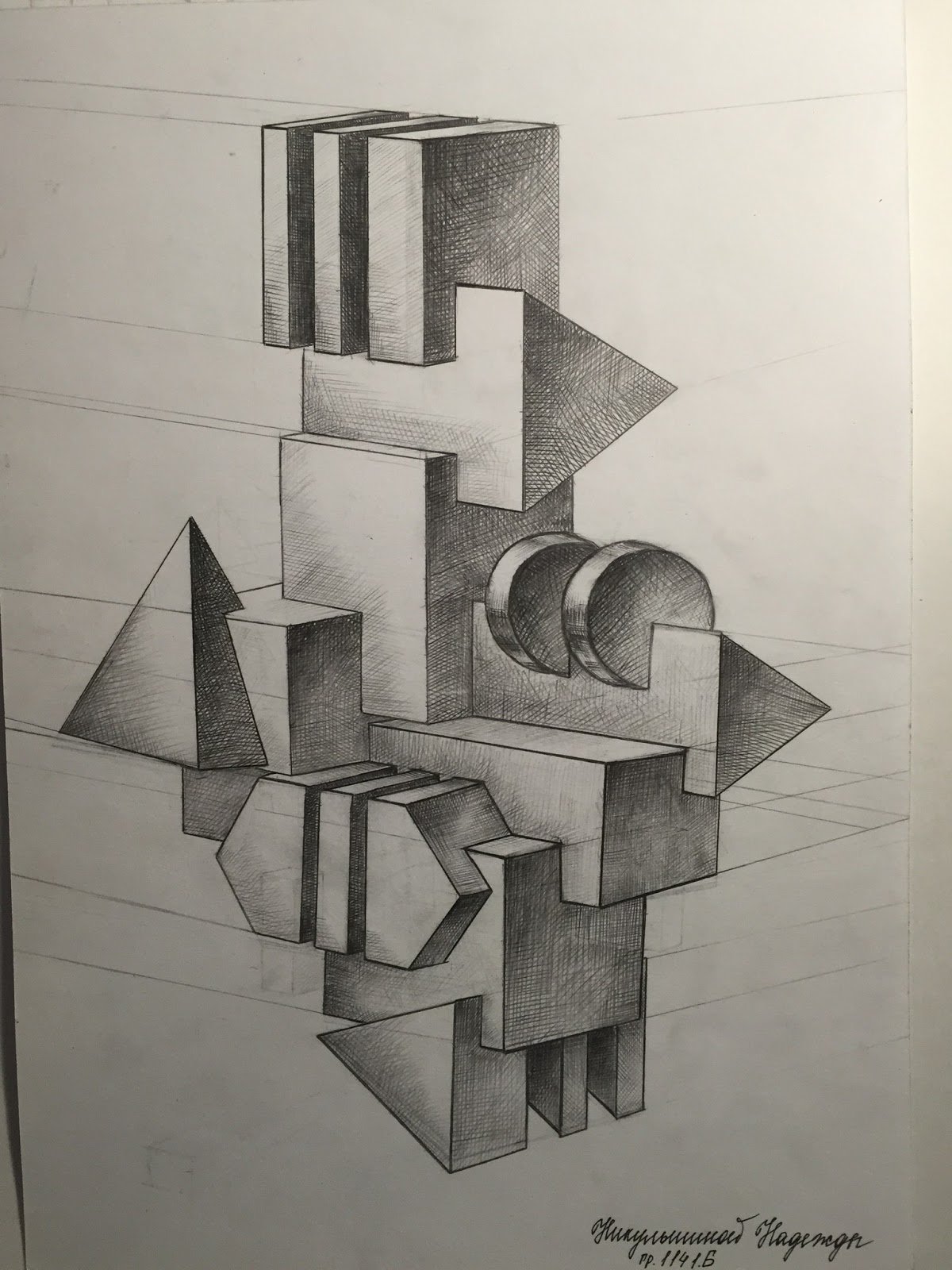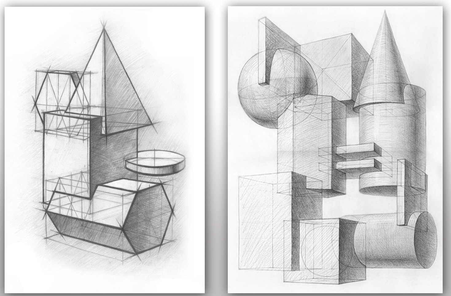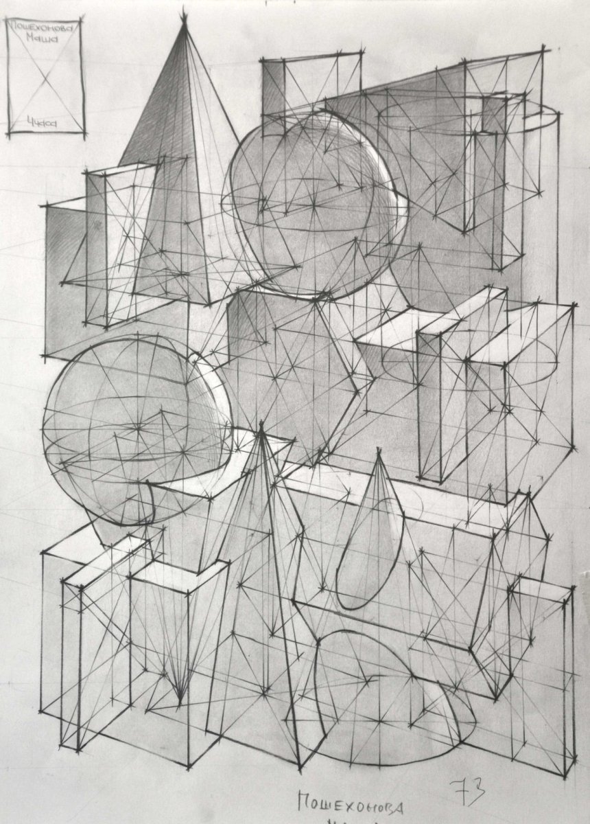 Линейно-конструктивный рисунок геометрических тел МАРХИ