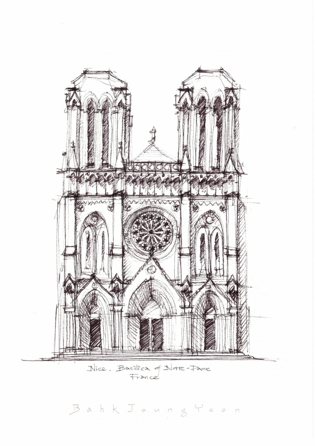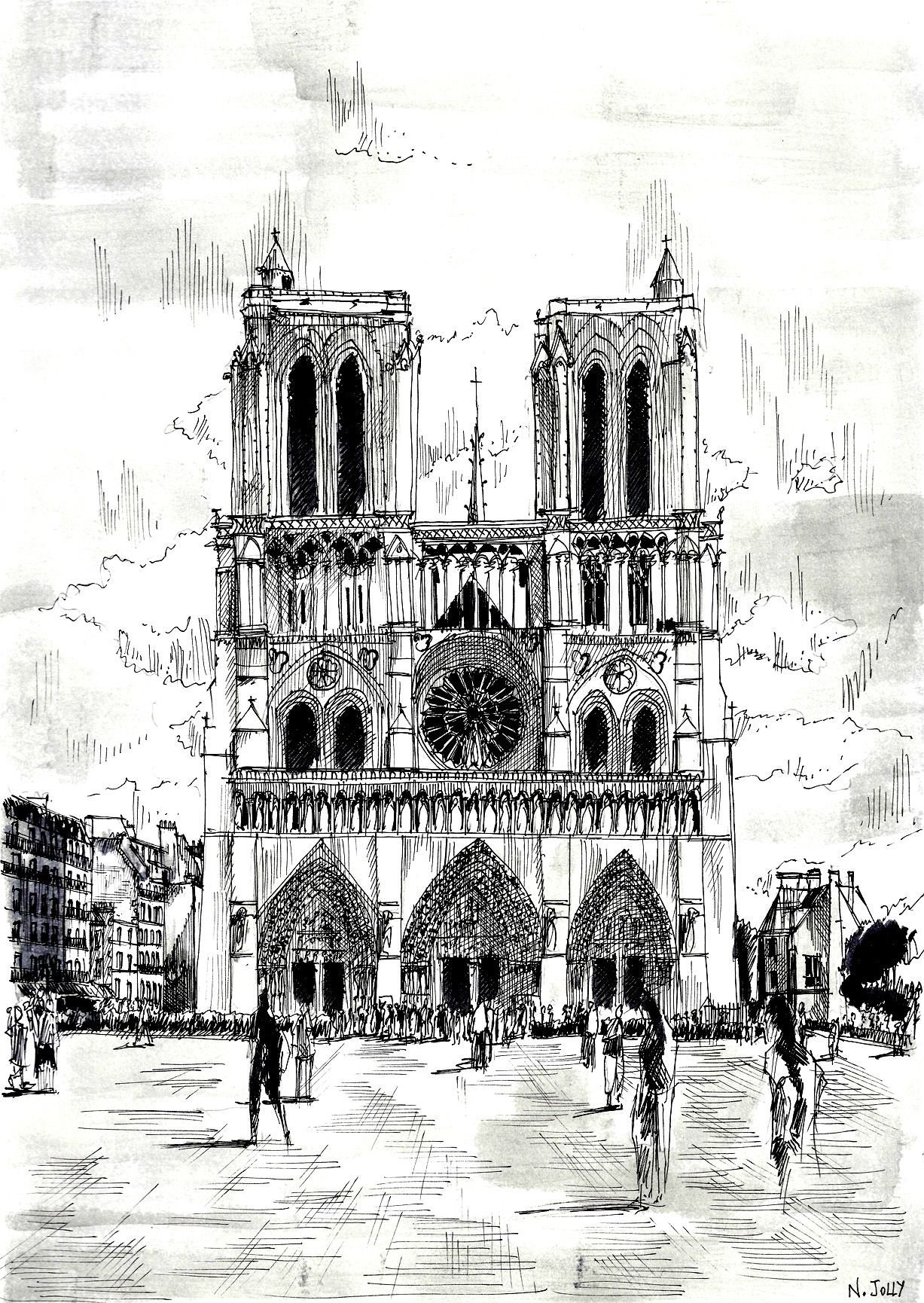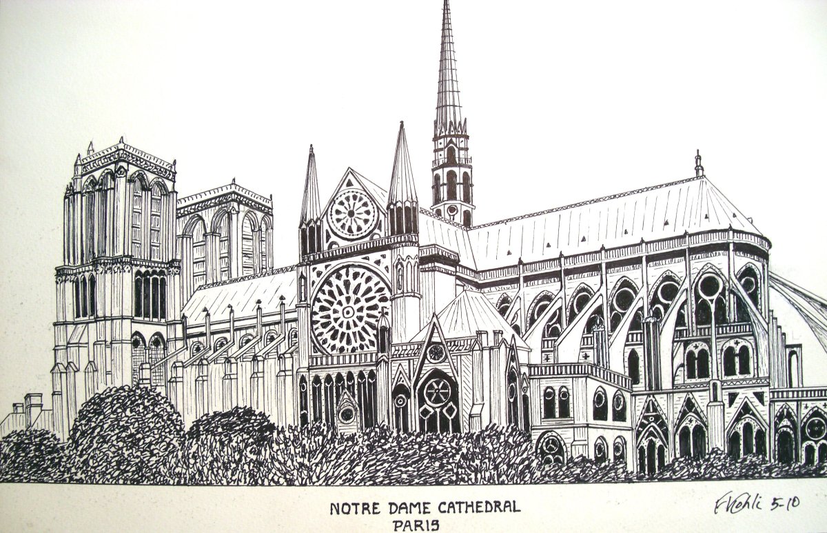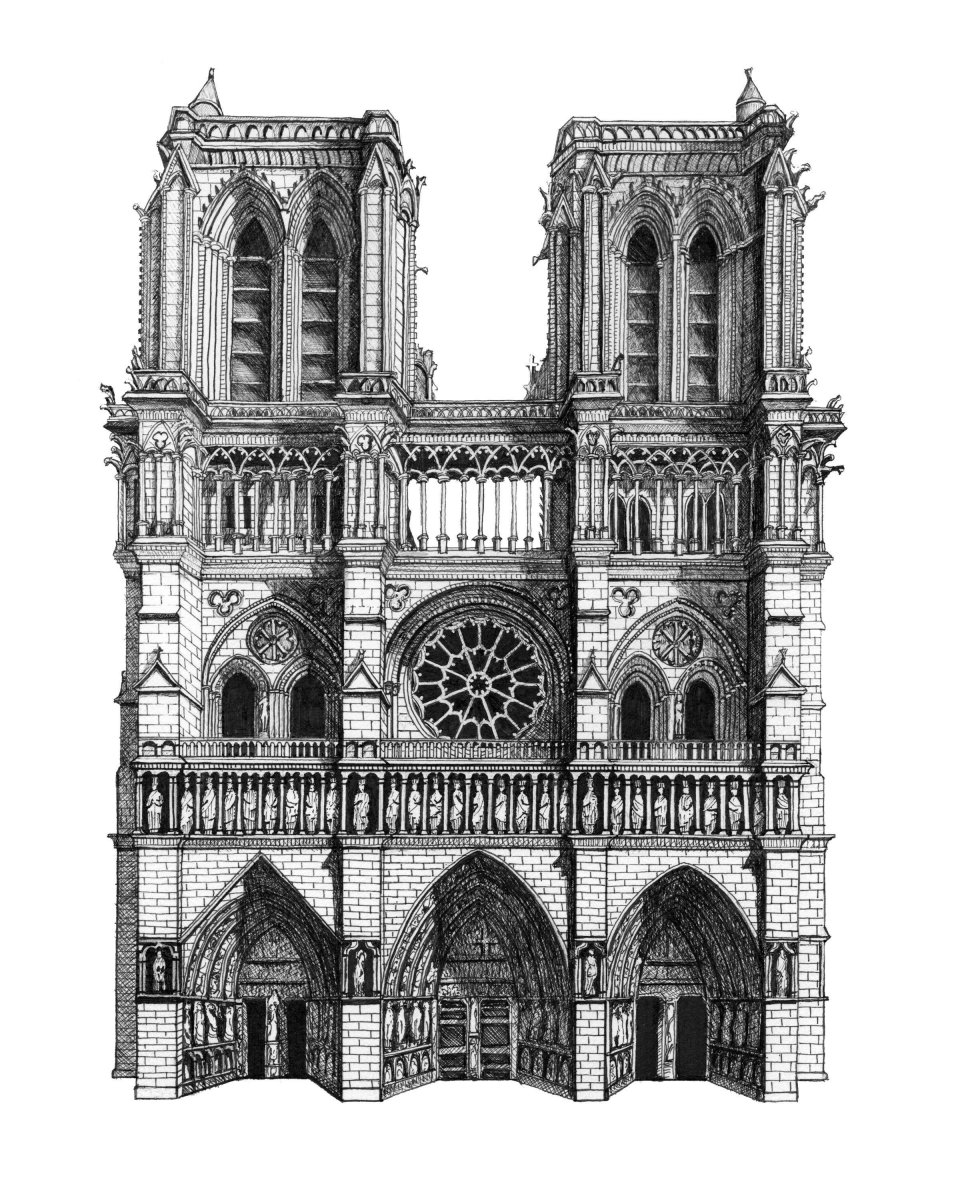 Собор Нотр дам де пари фасад рисунок