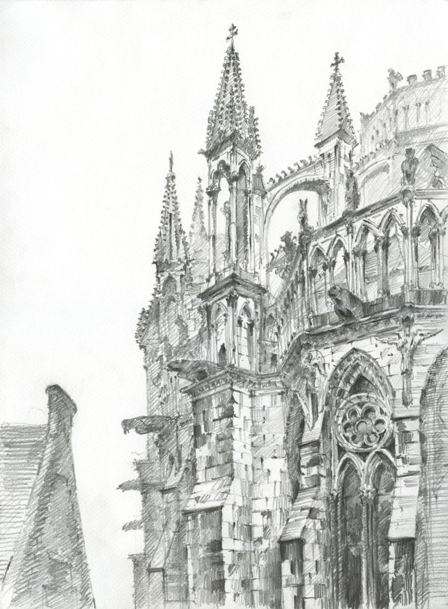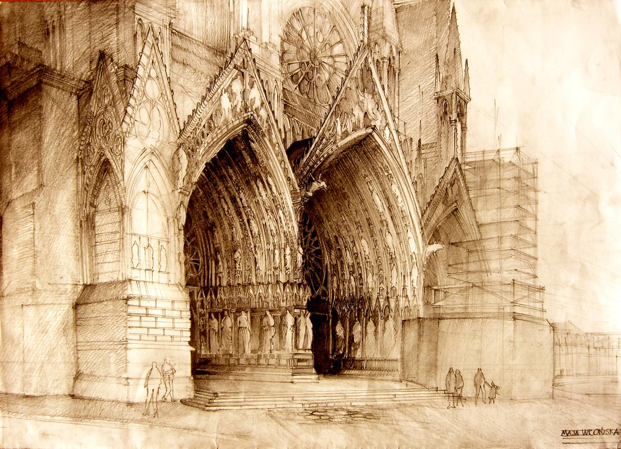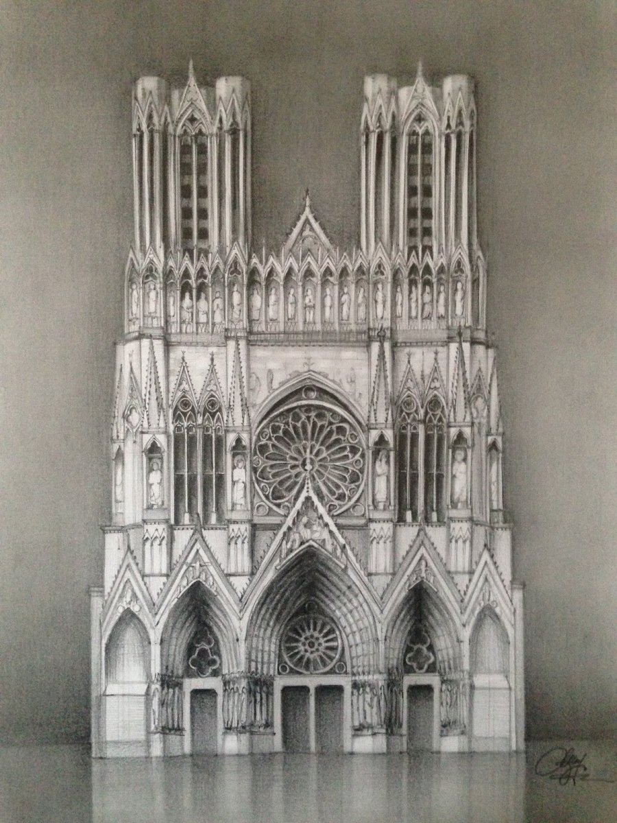 Реймский собор рисунок карандашом