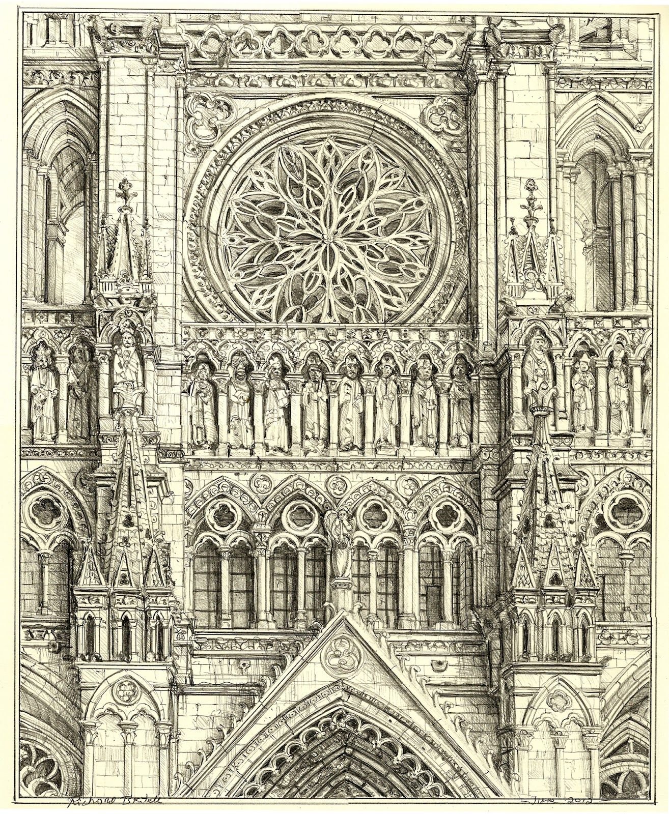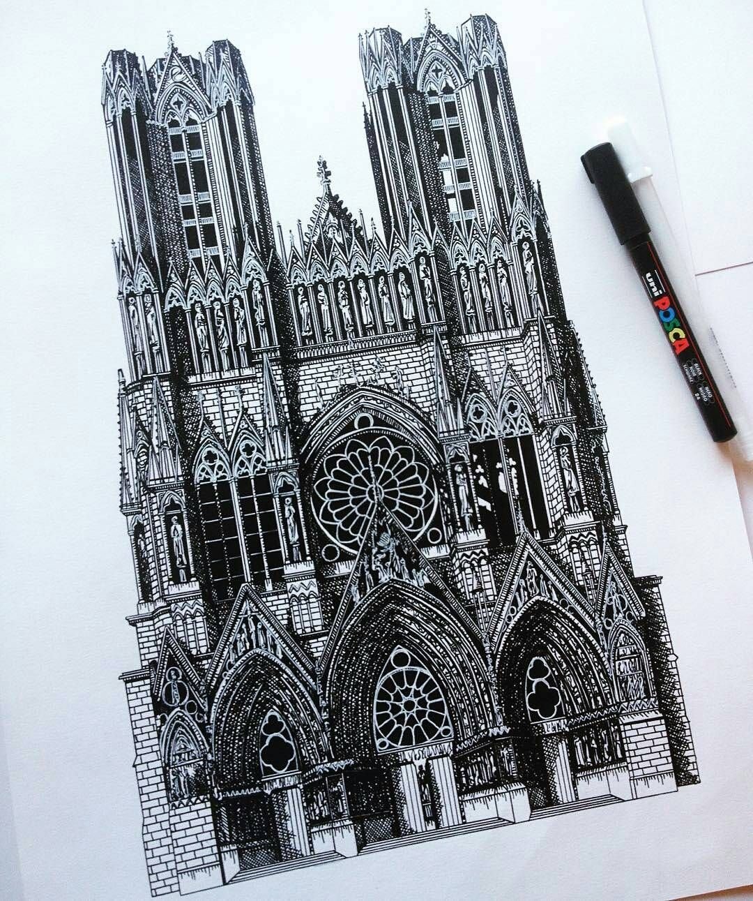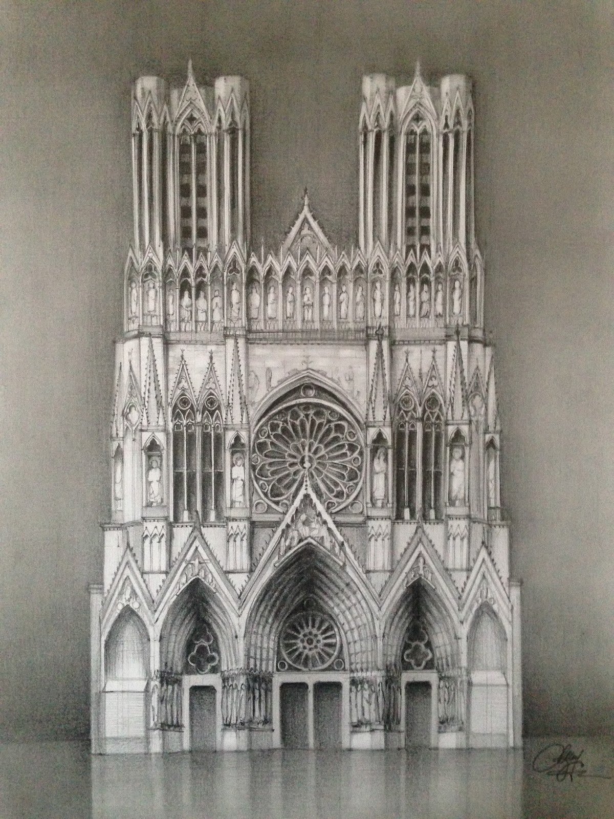 Реймский собор рисунок карандашом