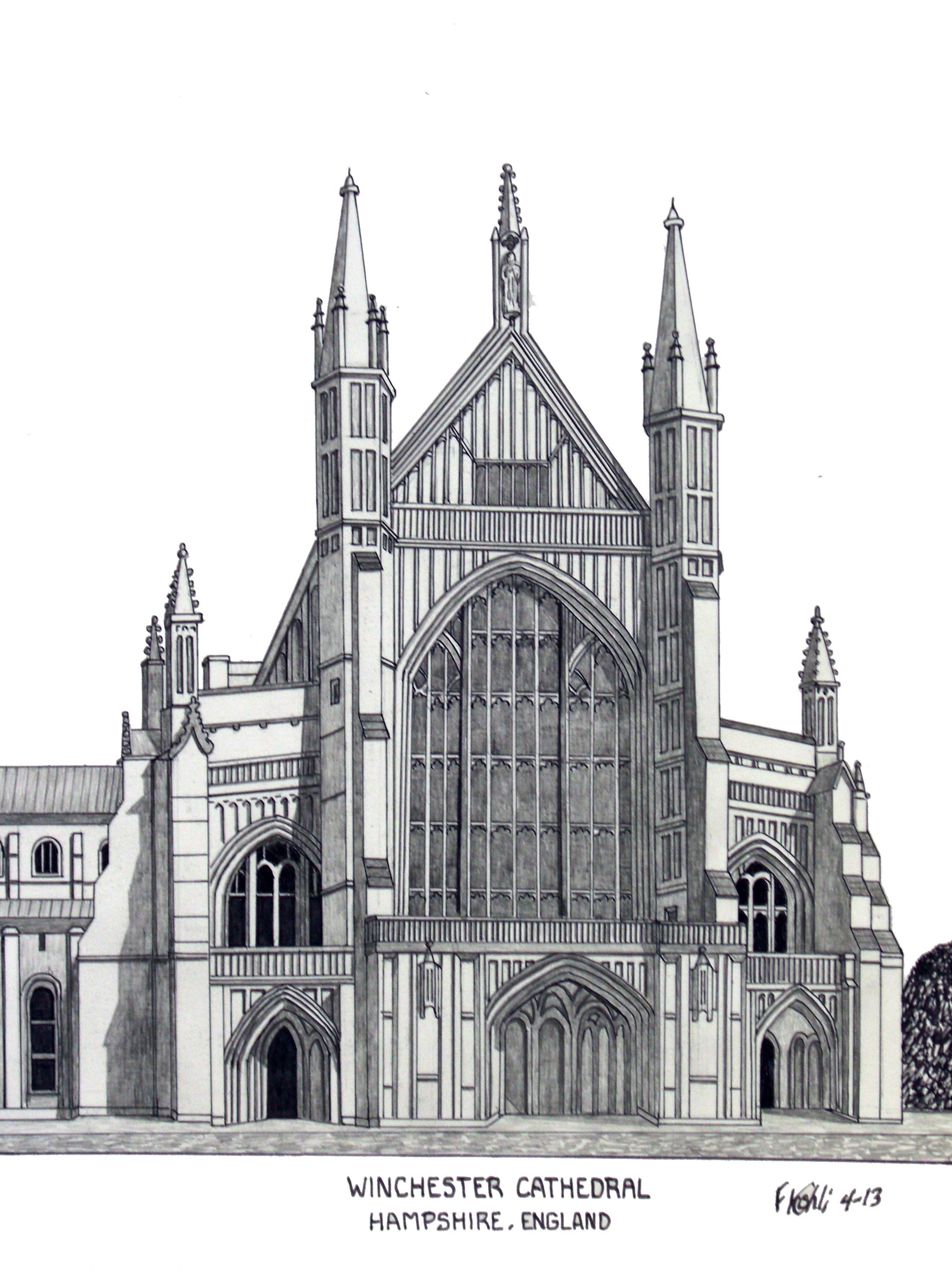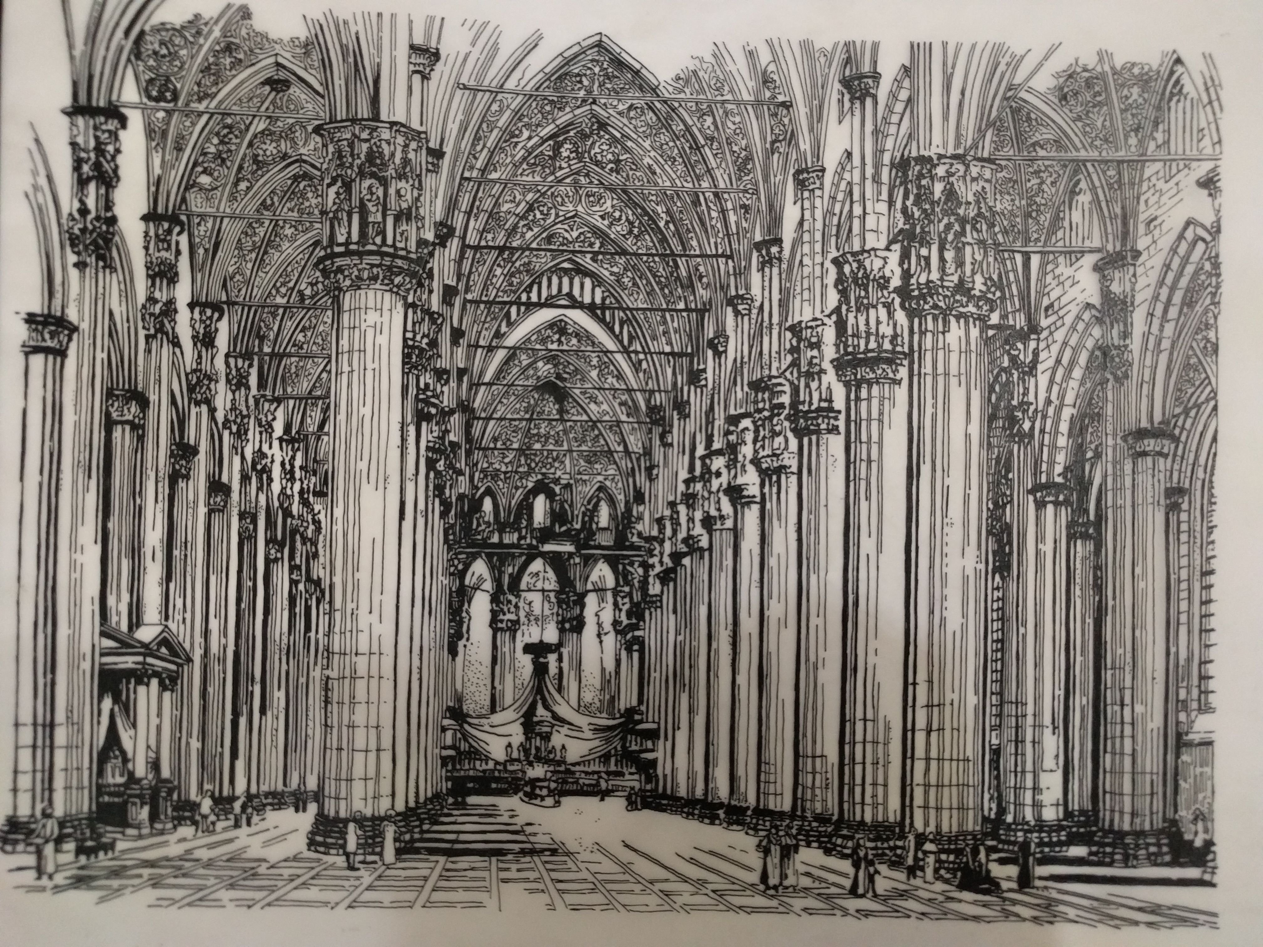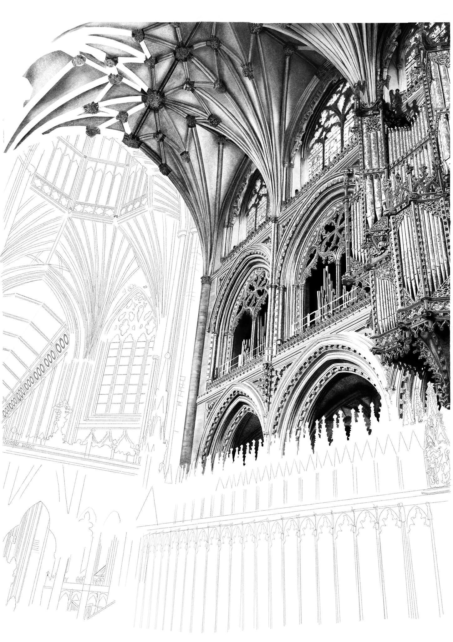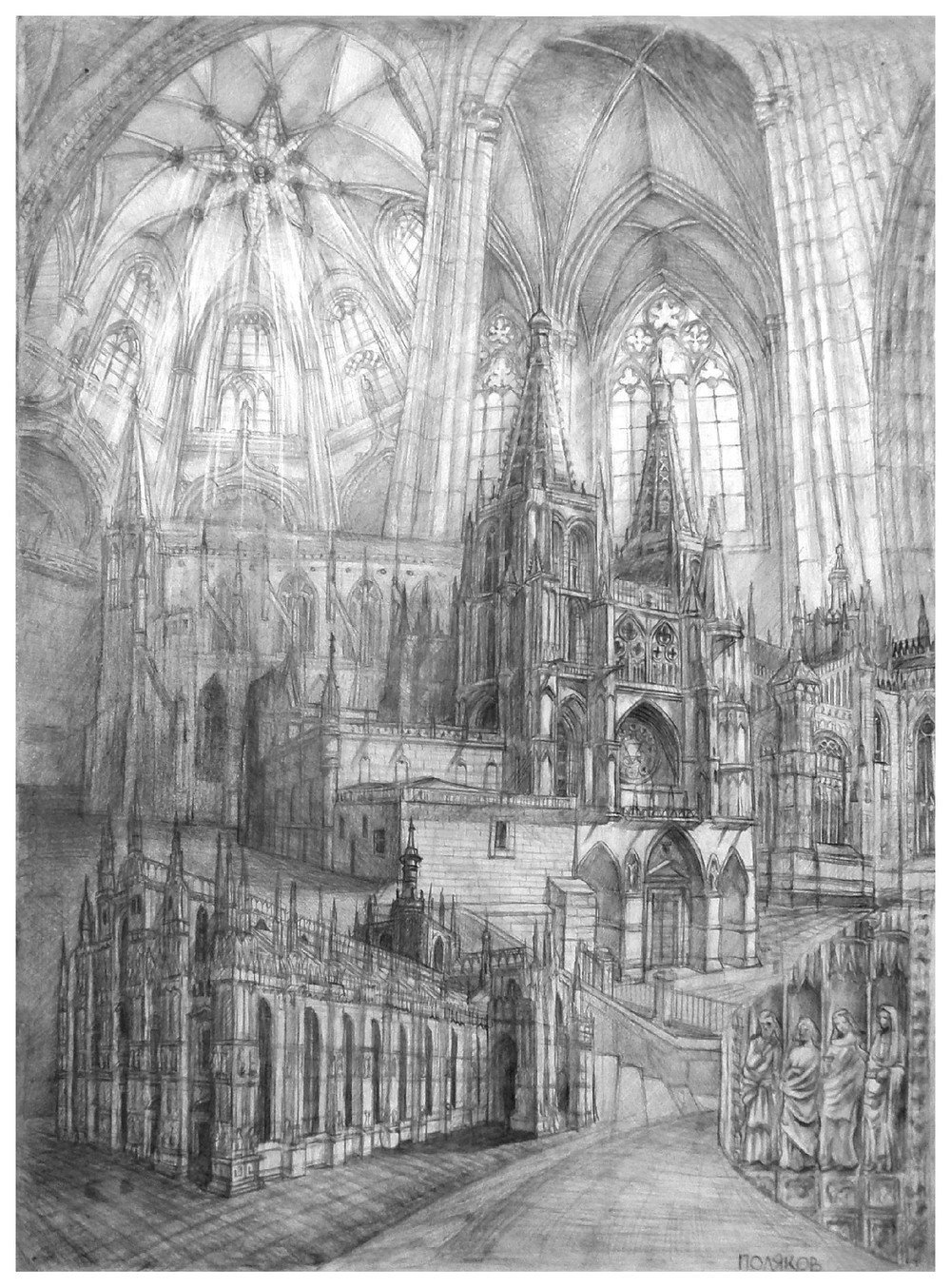 Готический собор карандашом
