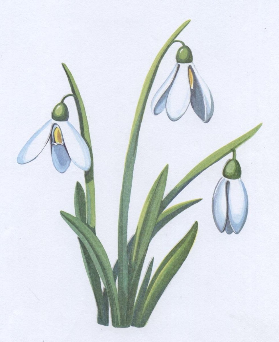 Как нарисовать Подснежник ребенку 1 класс поэтапно