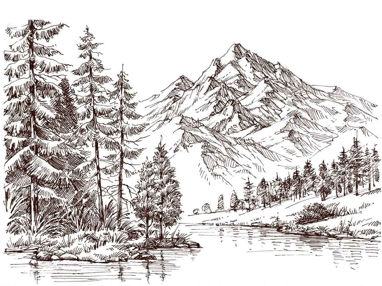 Горный пейзаж рисунок