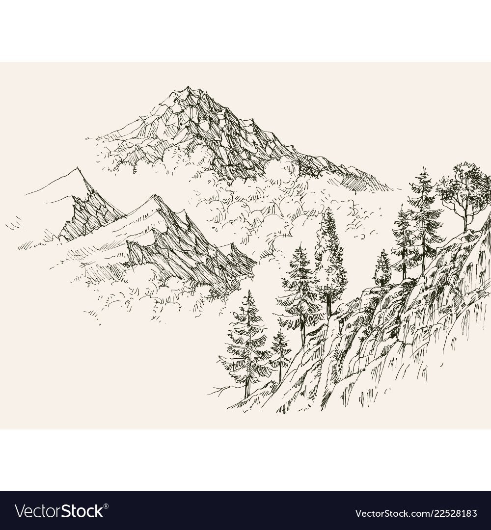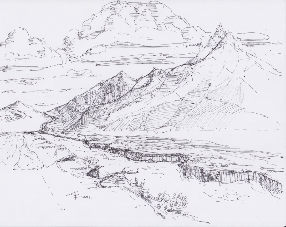 Горы скетч пером