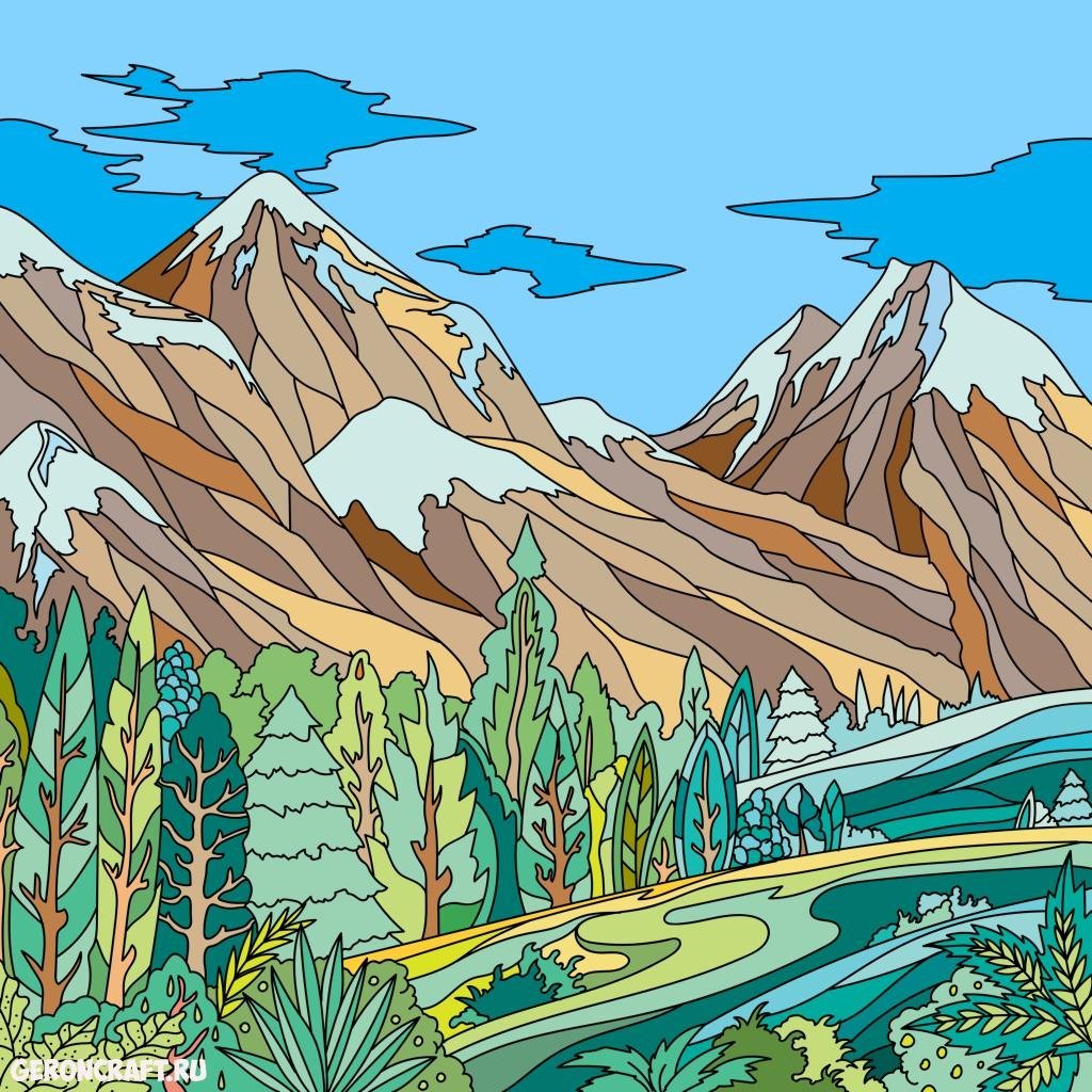 Пейзаж гор разукрашенный