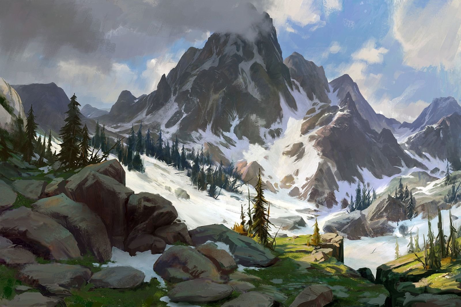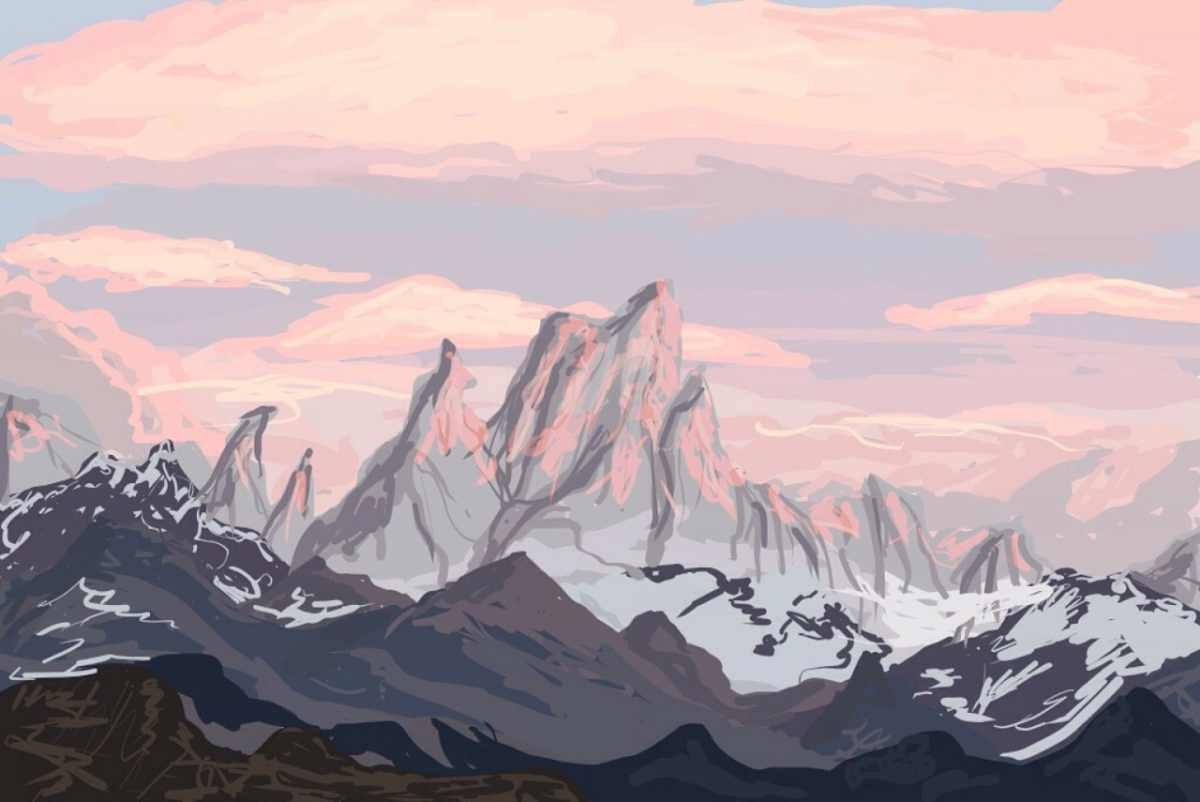 Растровый эскиз природа горы