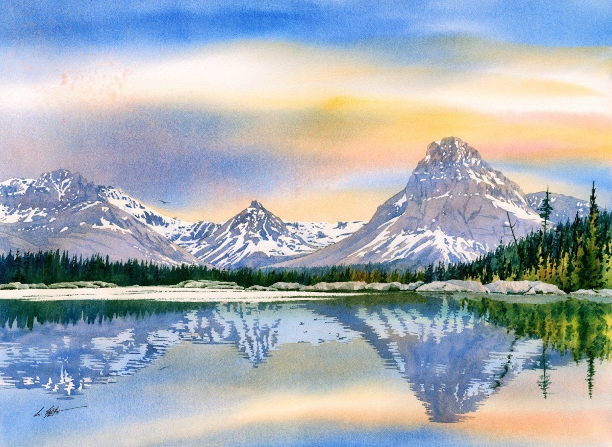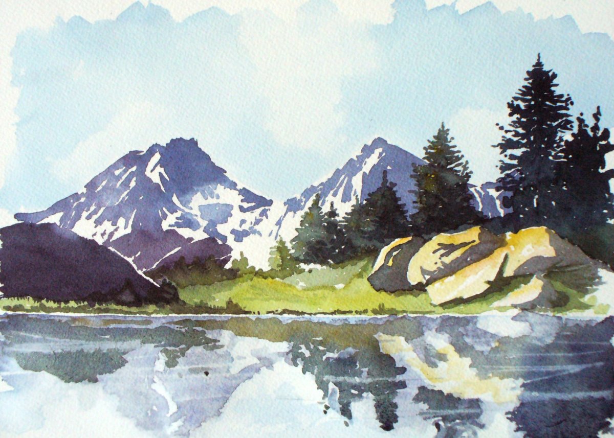 Горы акварелью лессировка