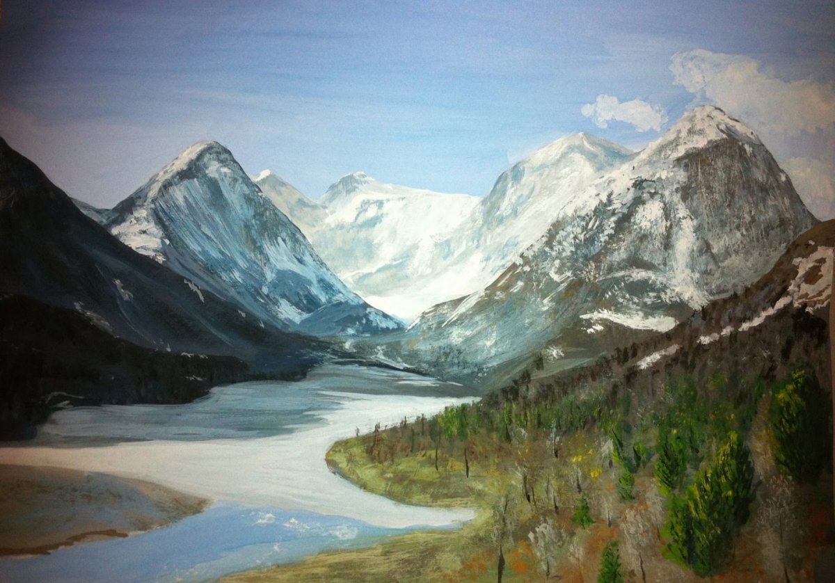 Горы живопись гуашь Катюнь