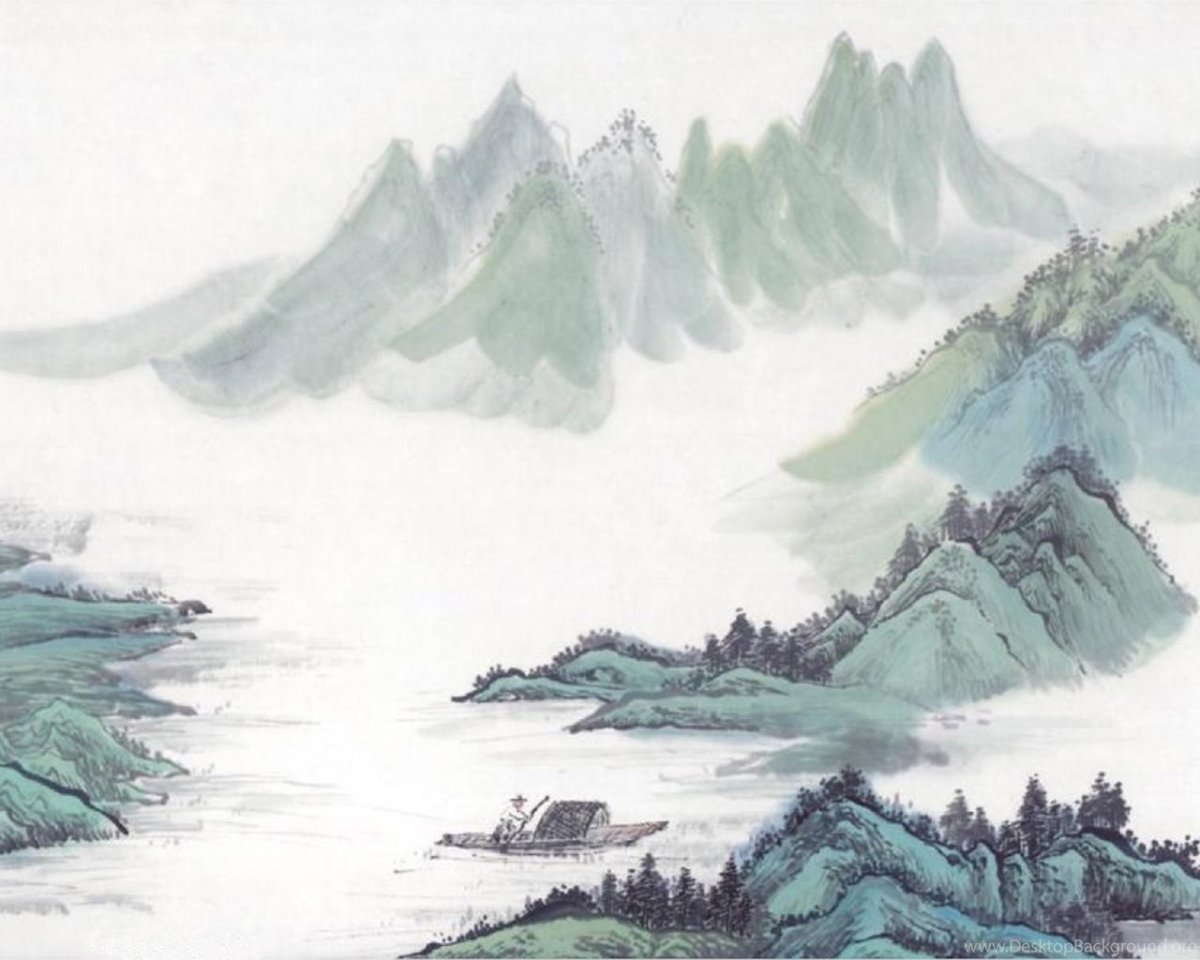 Китайская Акварельная живопись горы