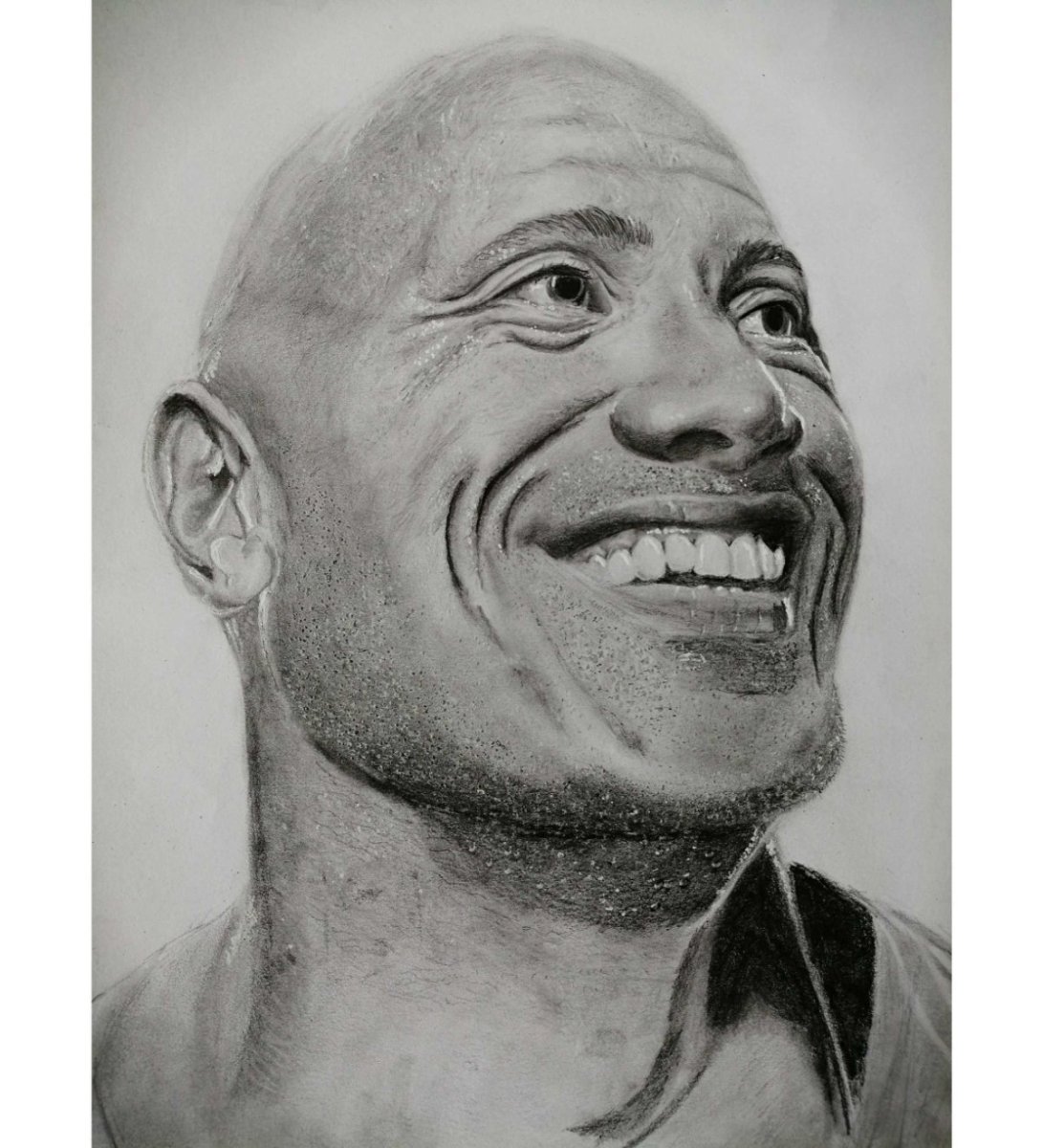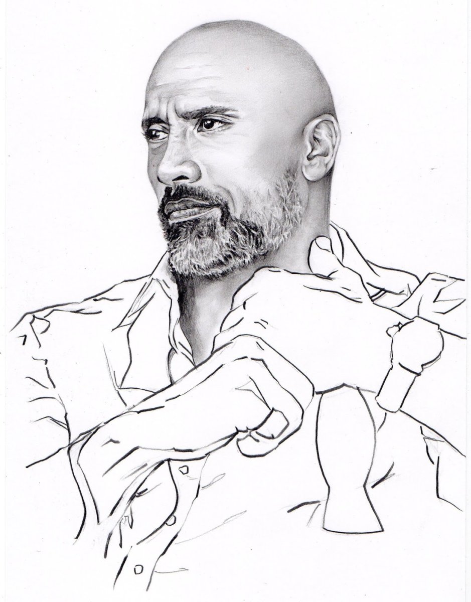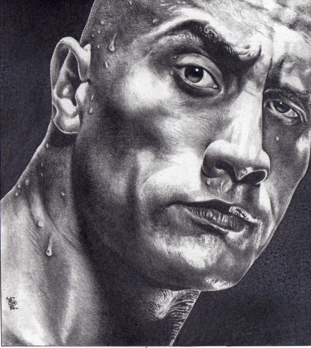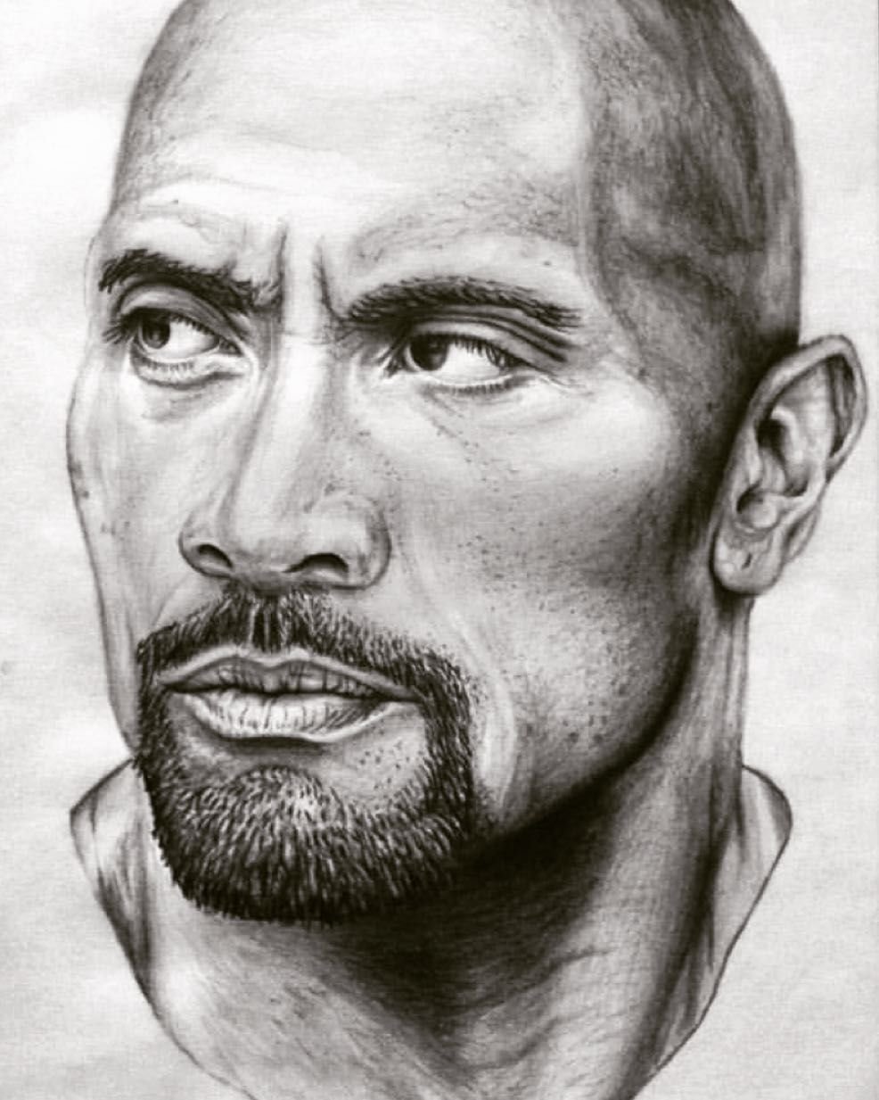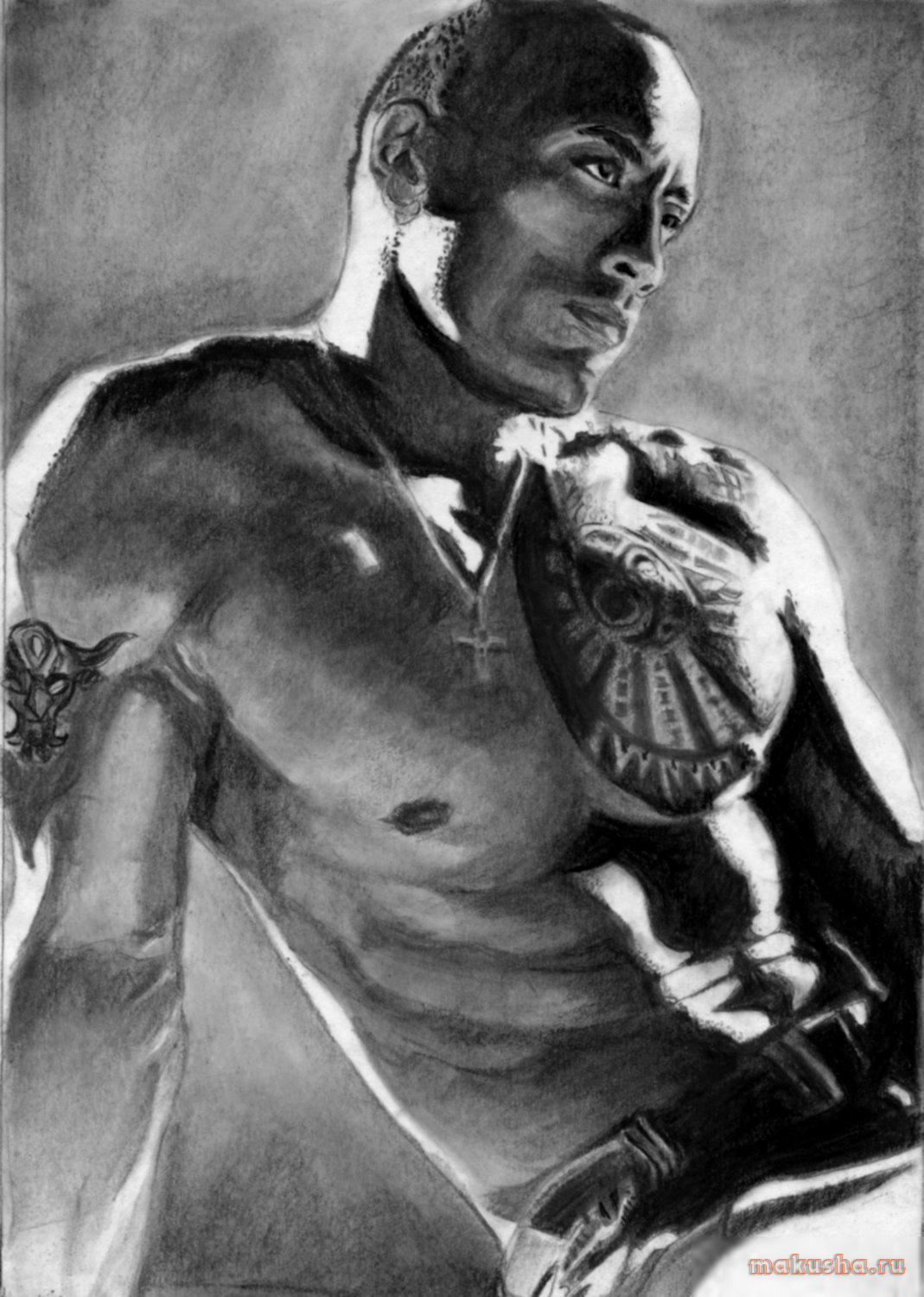 Портрет Дуэйна Джонсона карандашом для начинающих