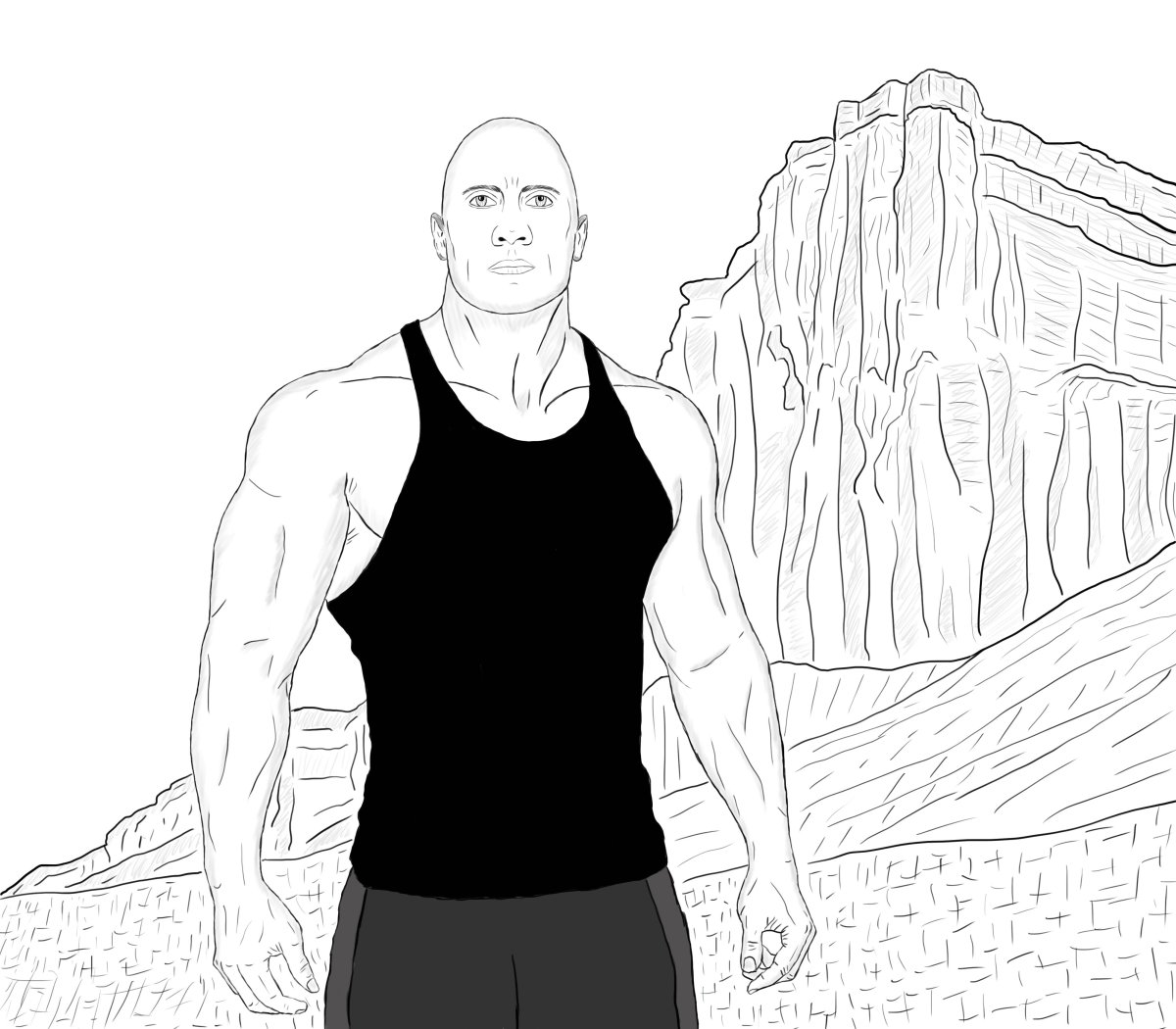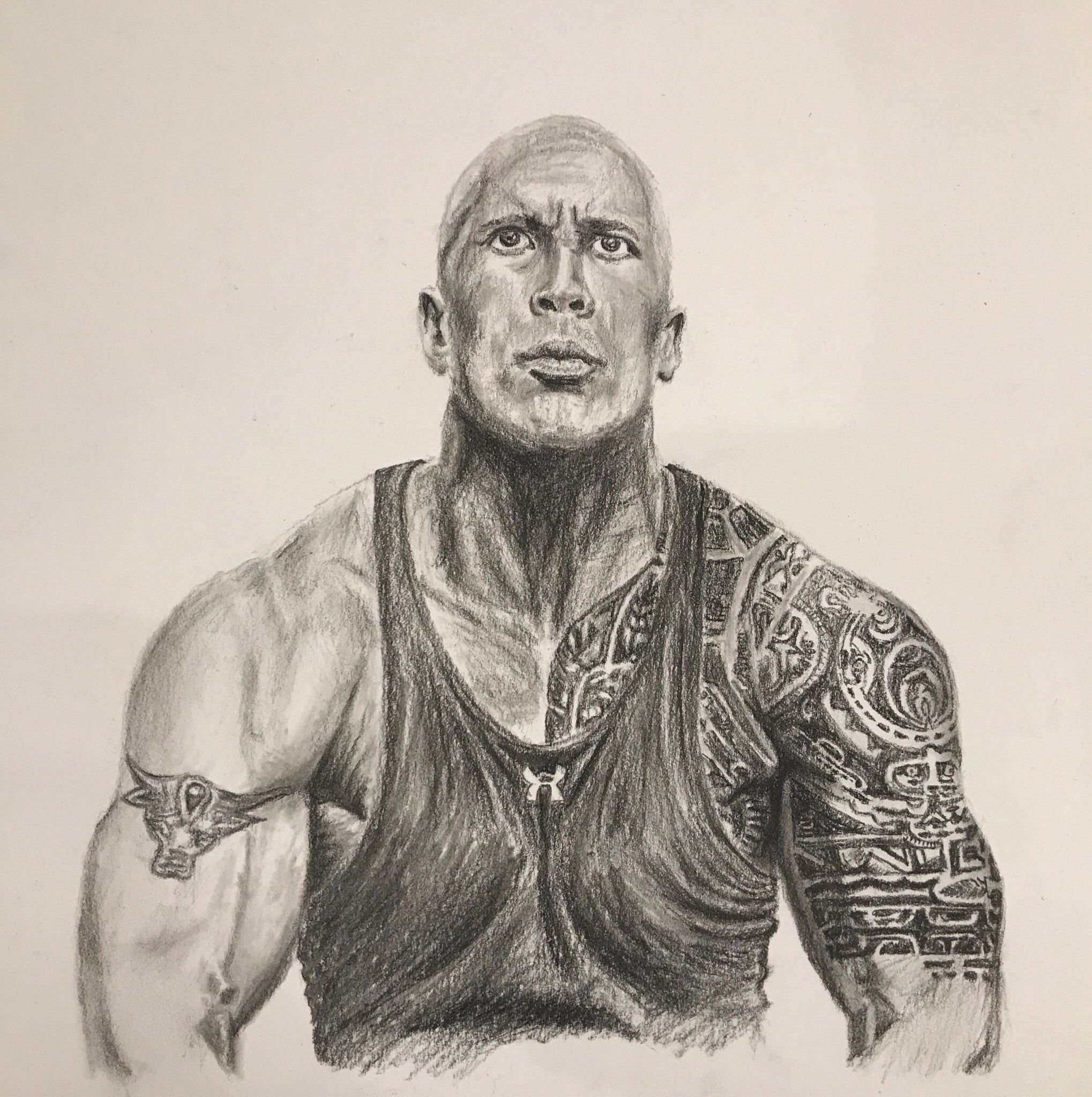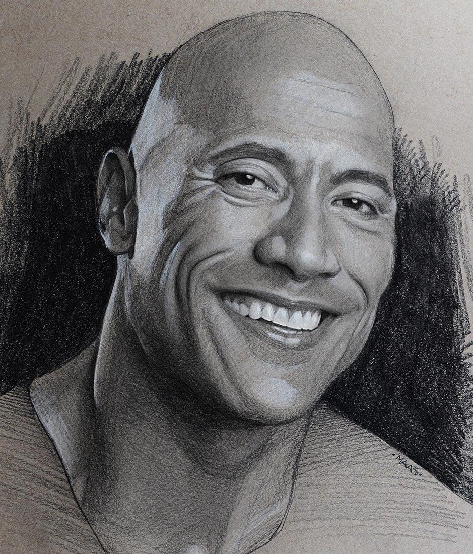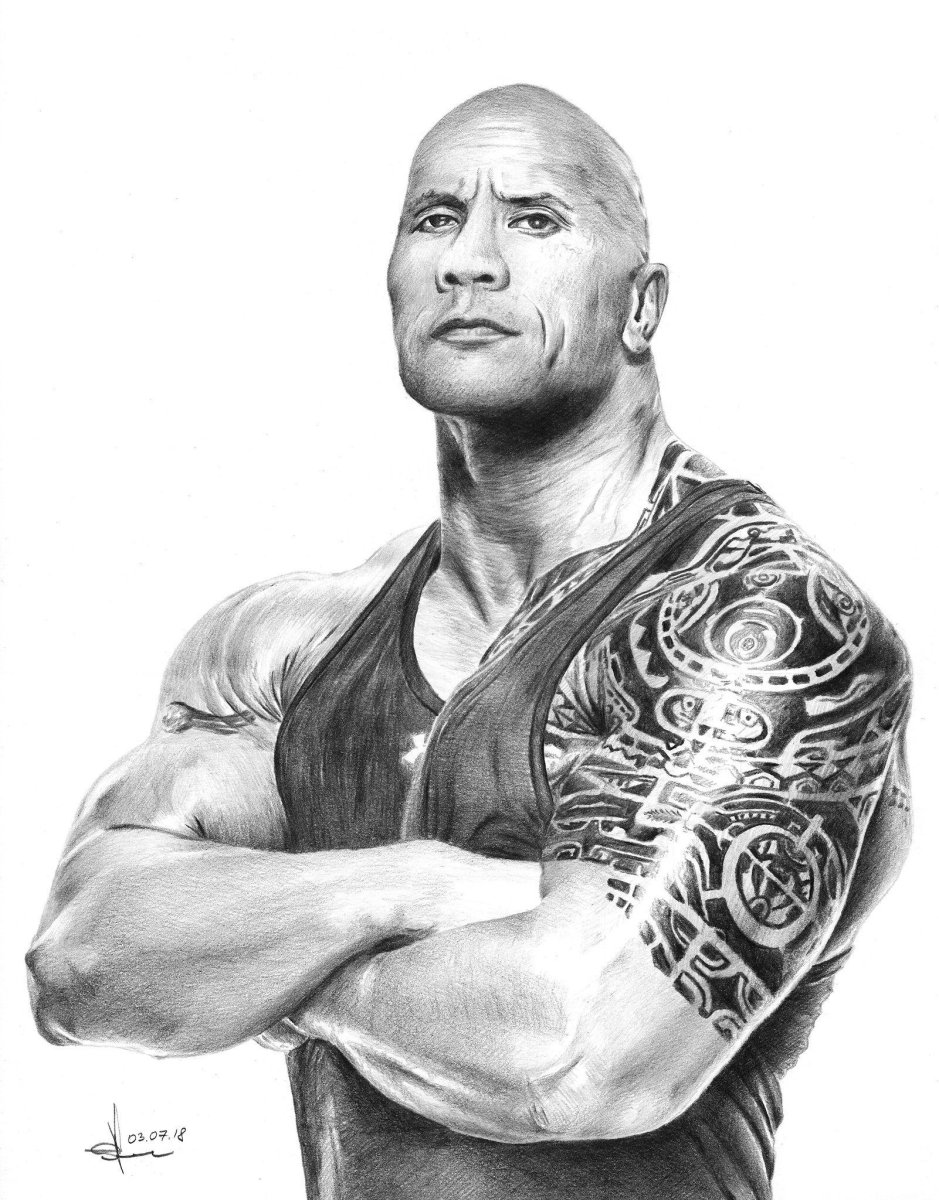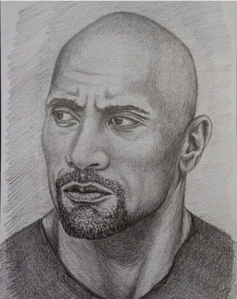 Портрет Дуэйна Джонсона карандашом для начинающих