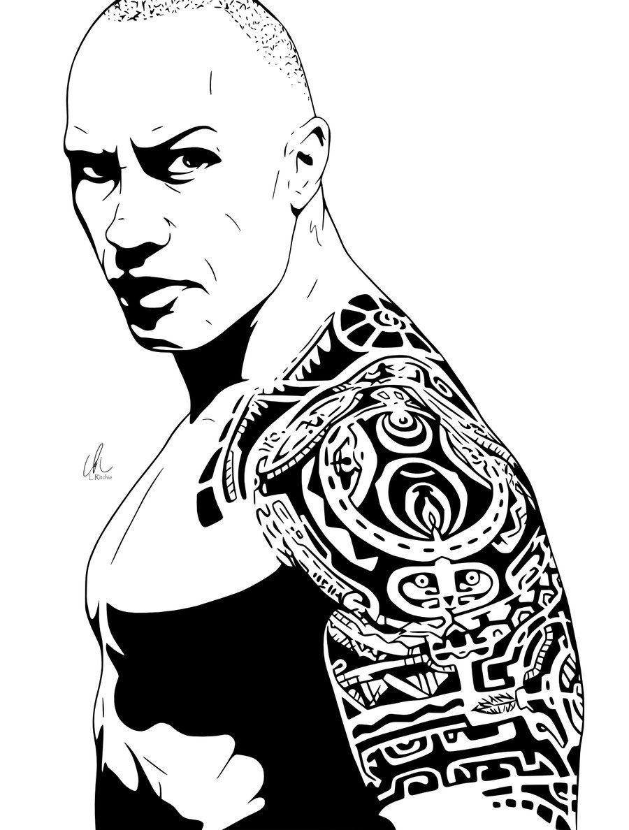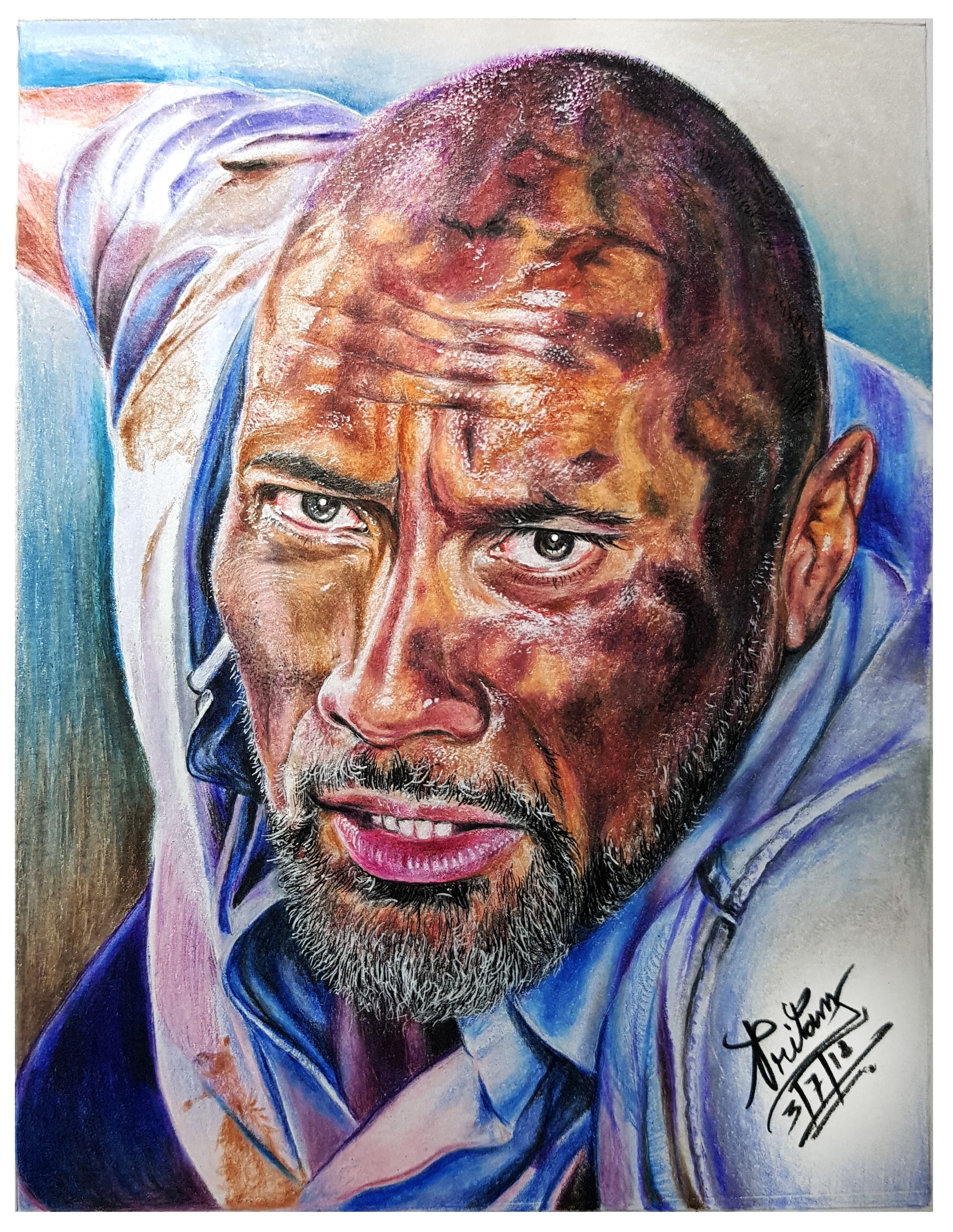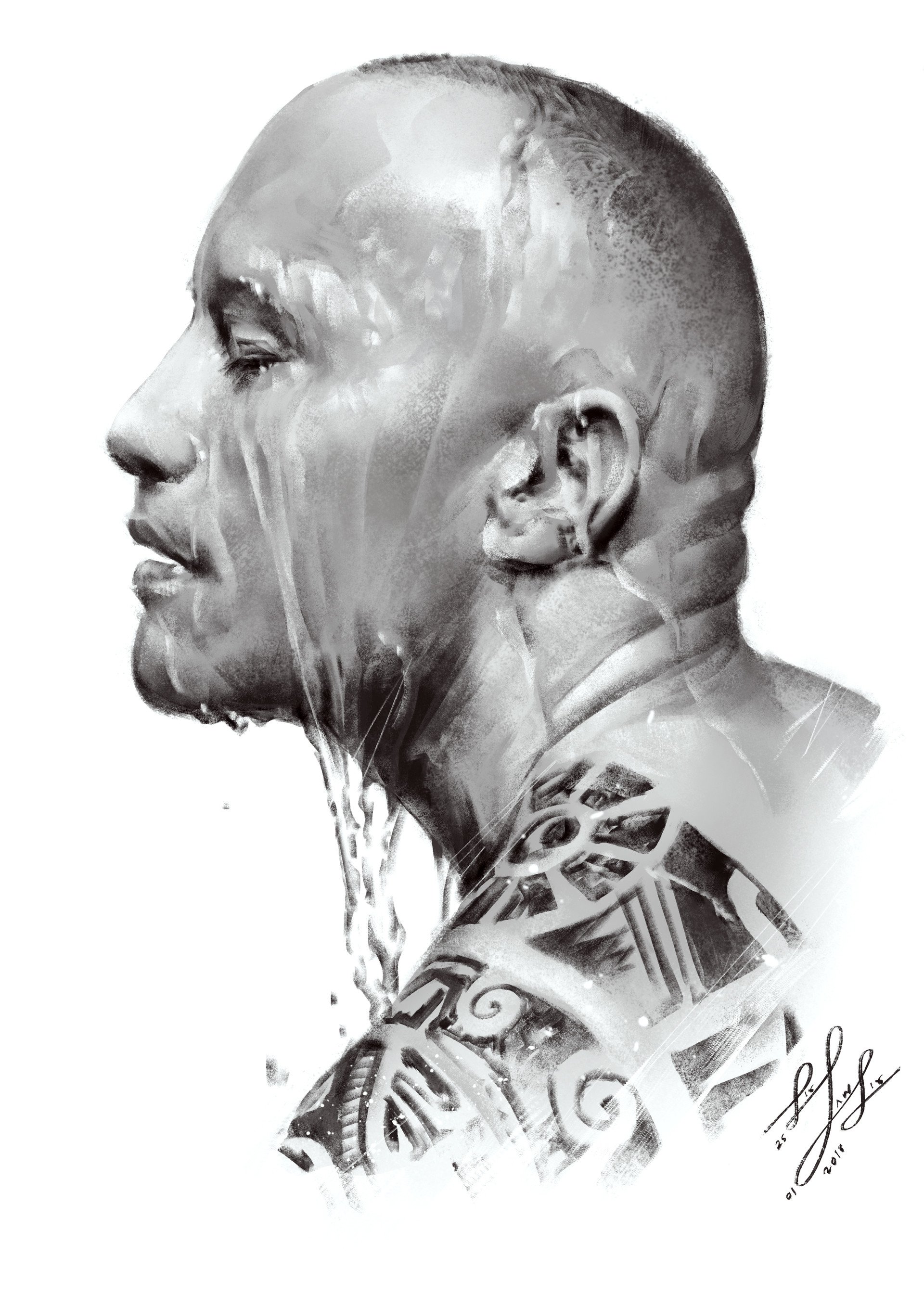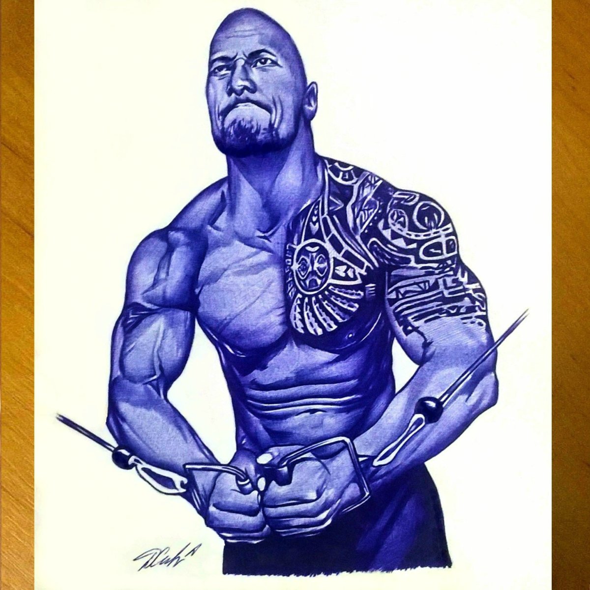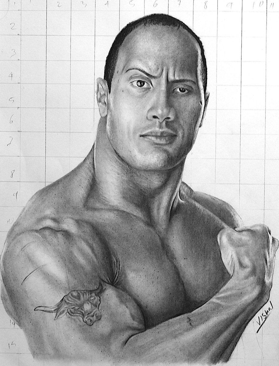 Портрет Дуэйна Джонсона карандашом для начинающих