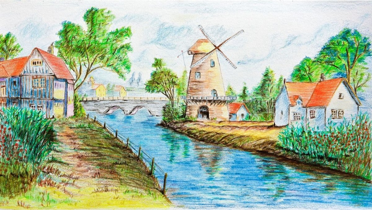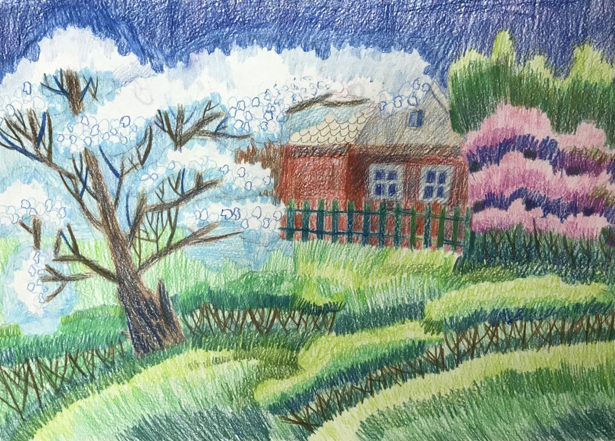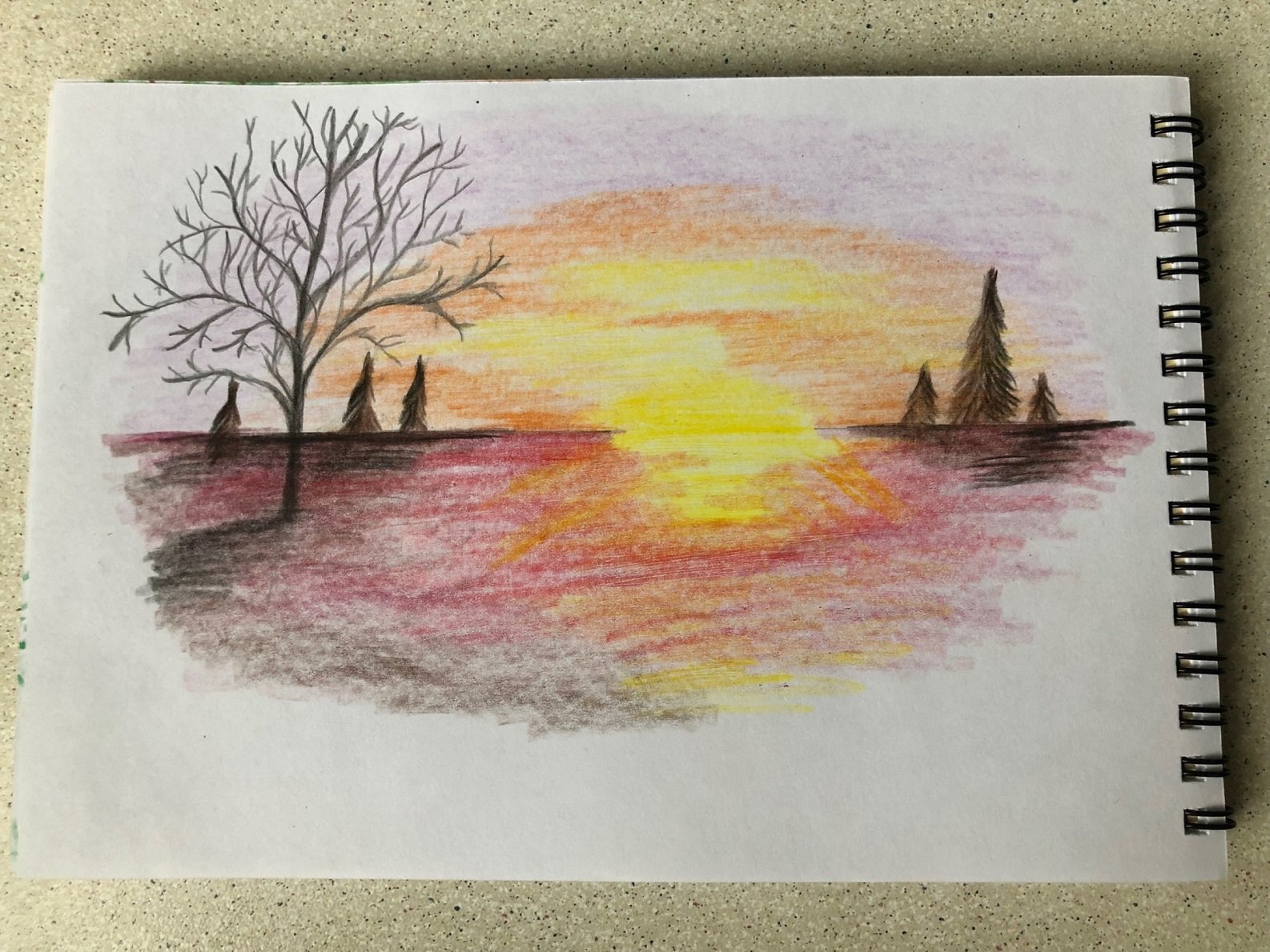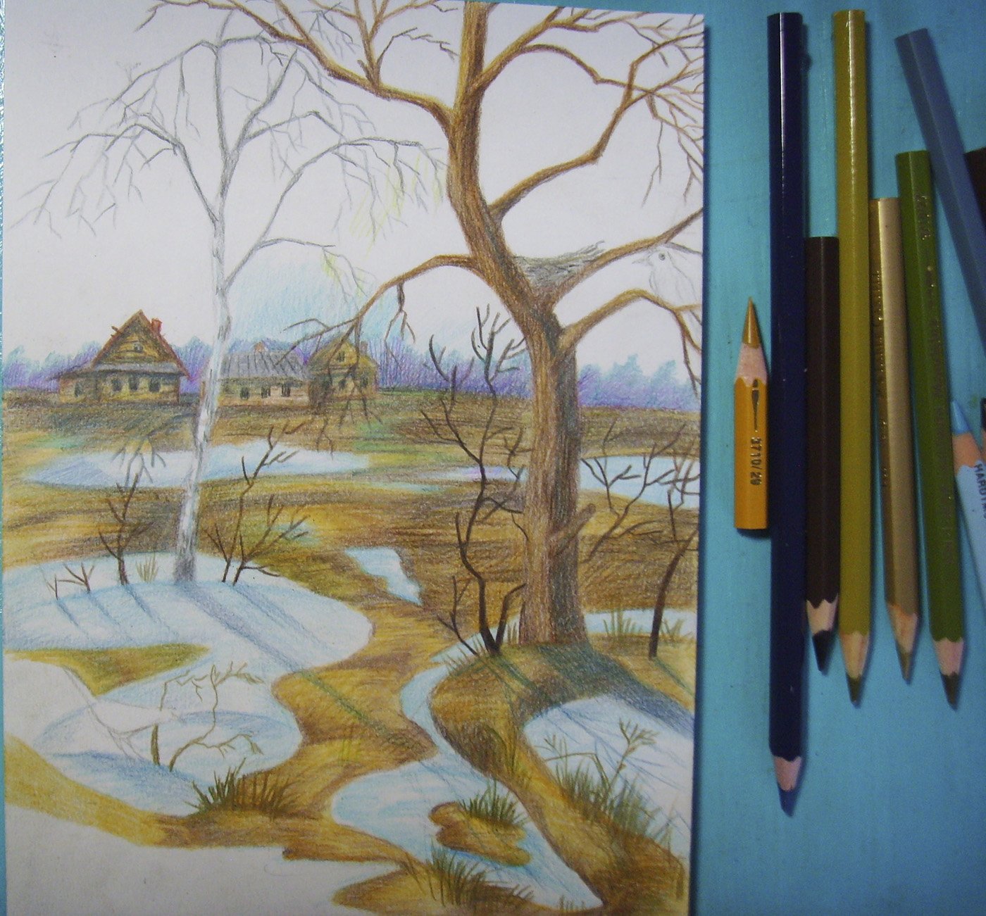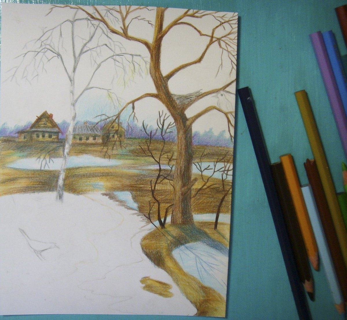 Как нарисовать пейзаж поэтапно цветными карандашами