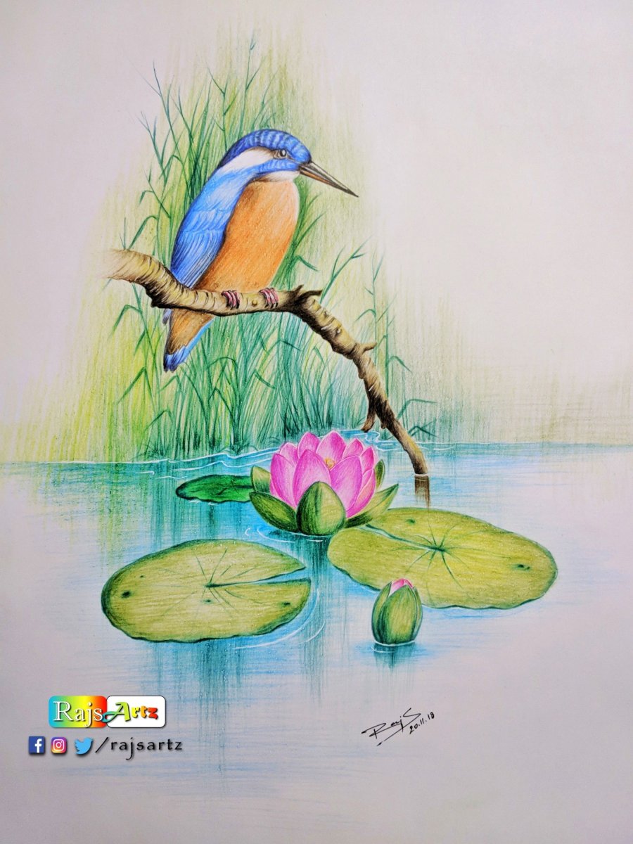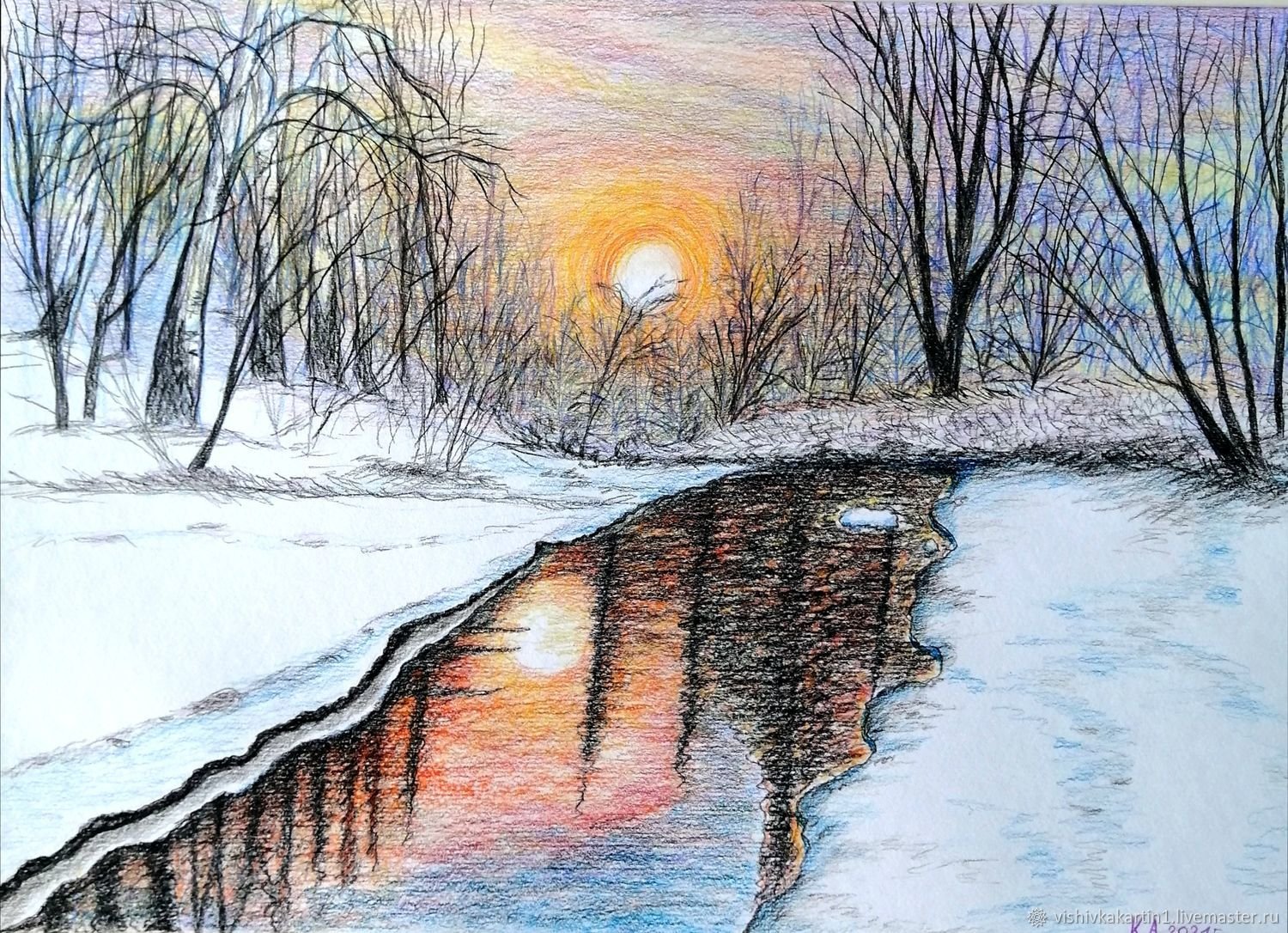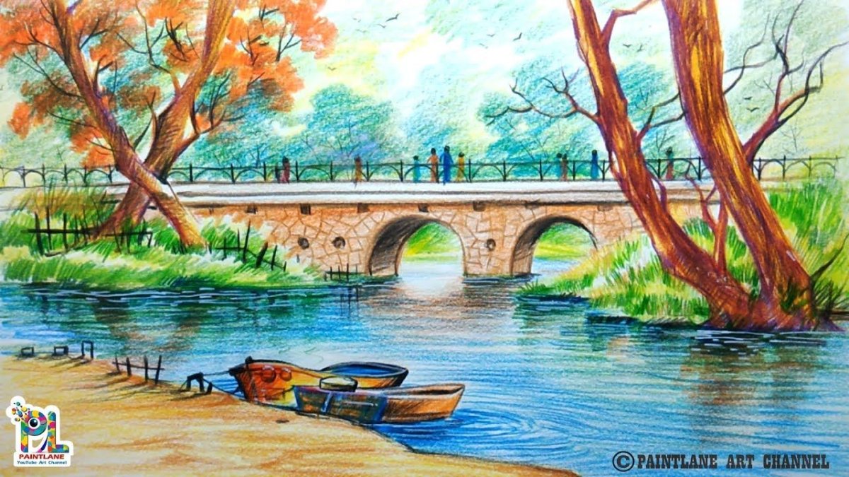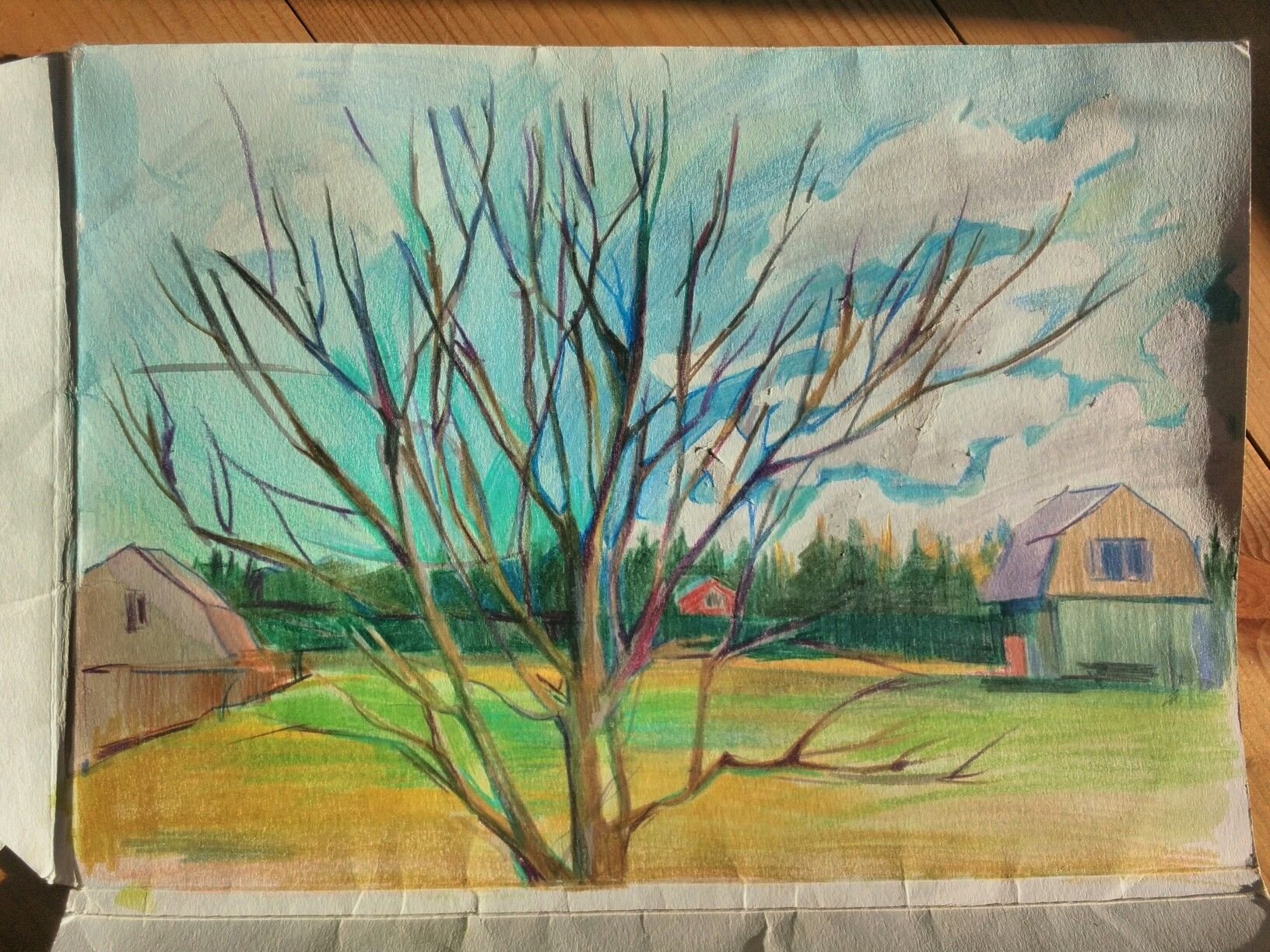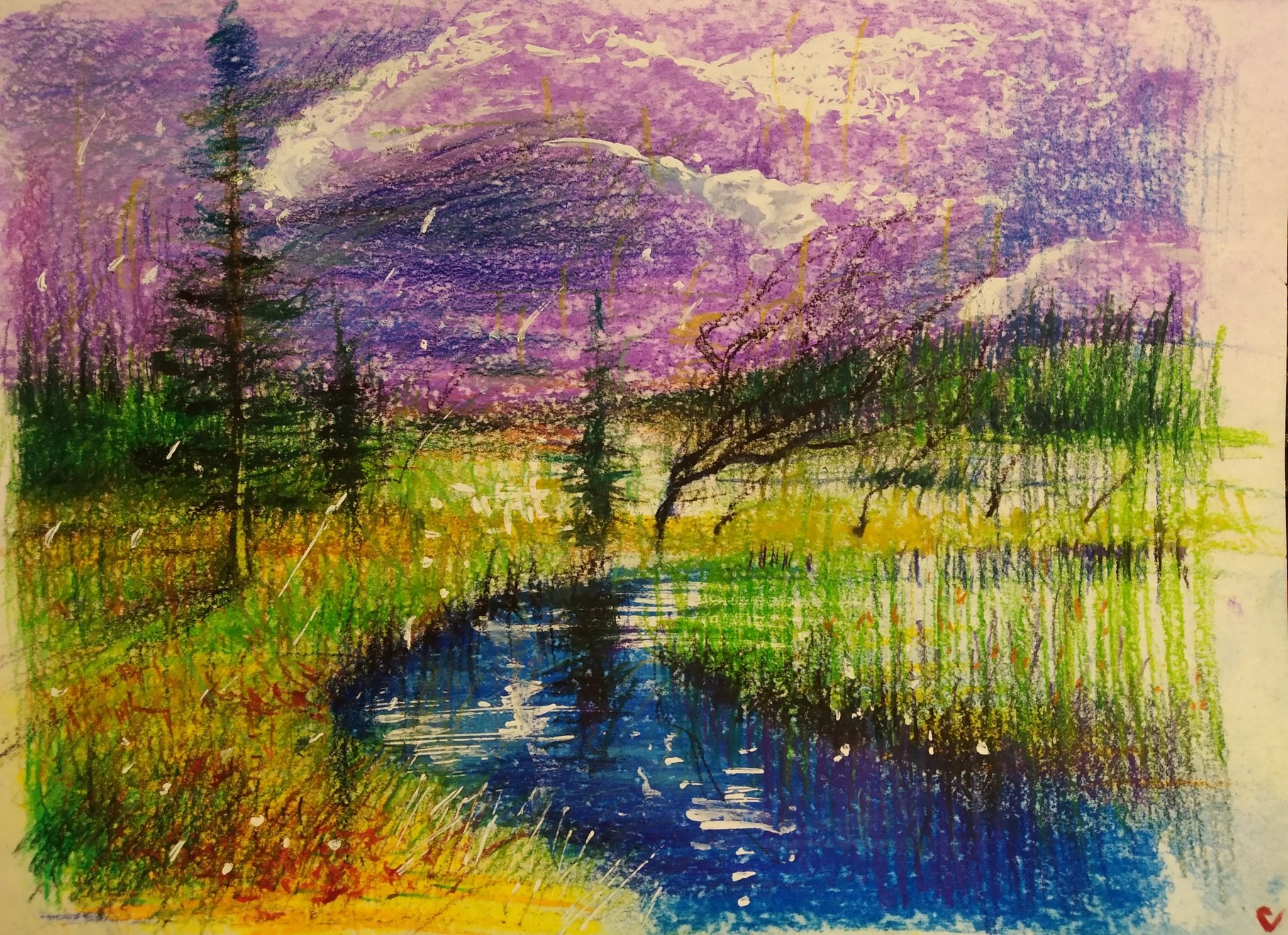 Как нарисовать пейзаж поэтапно цветными карандашами