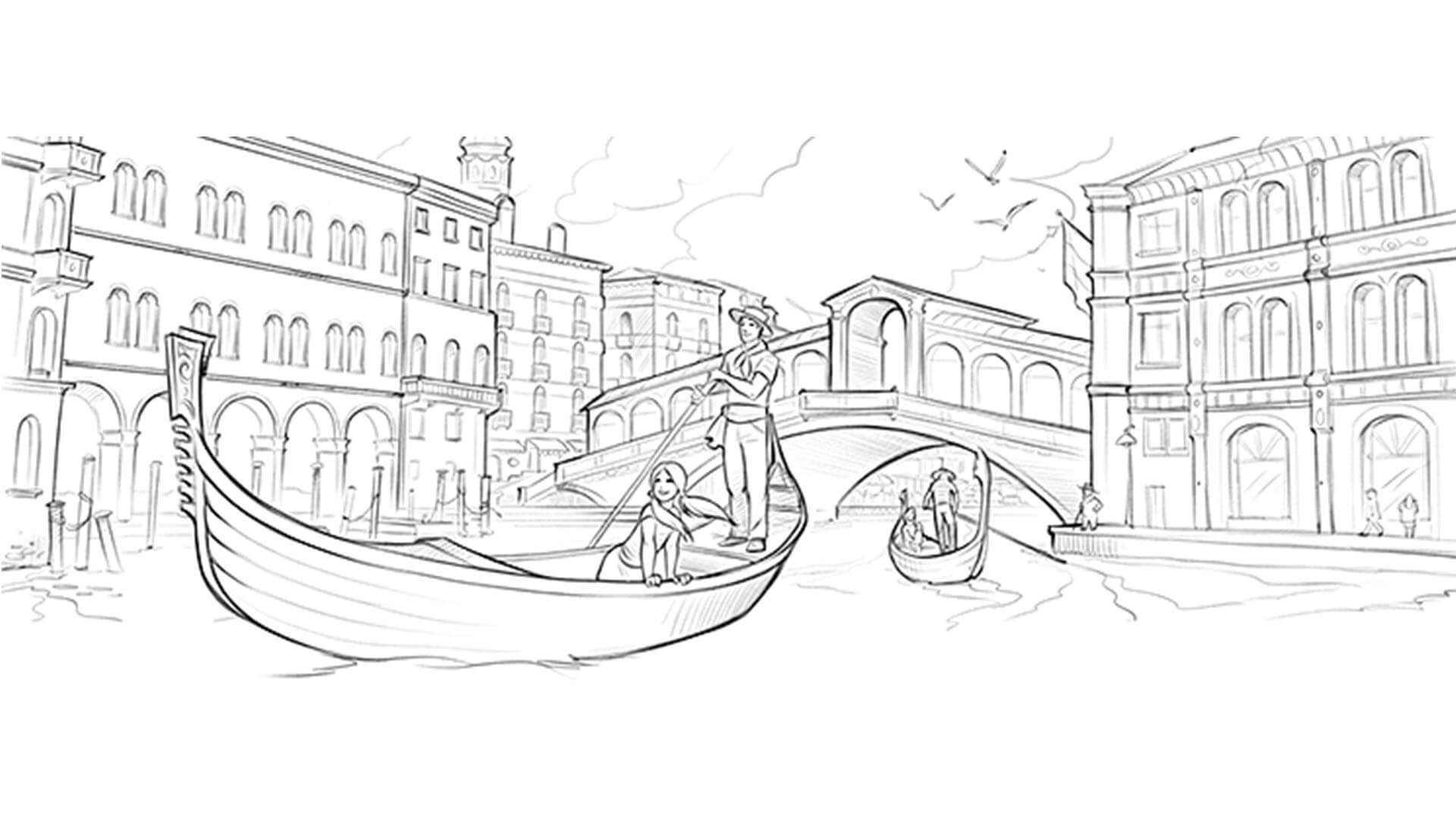 Венеция контурный рисунок