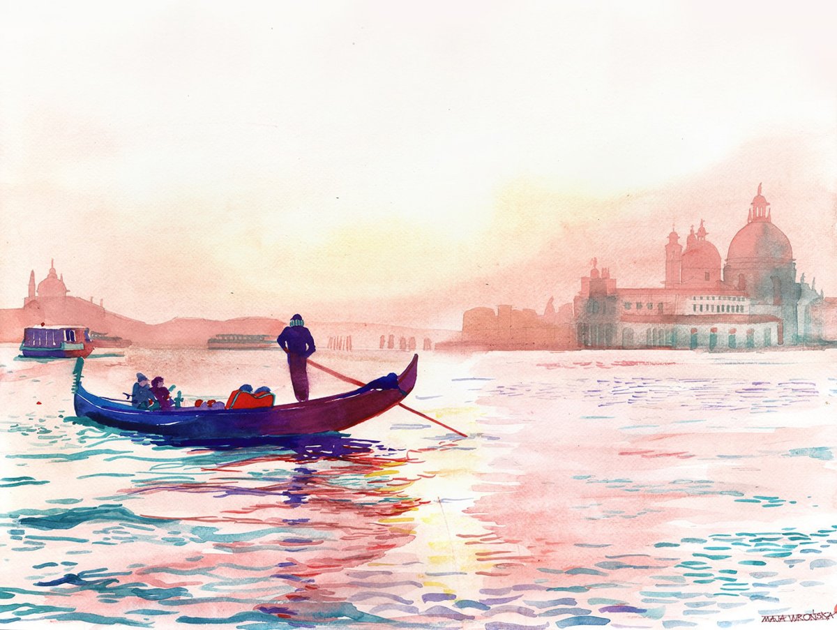 Италия гондолы акварель