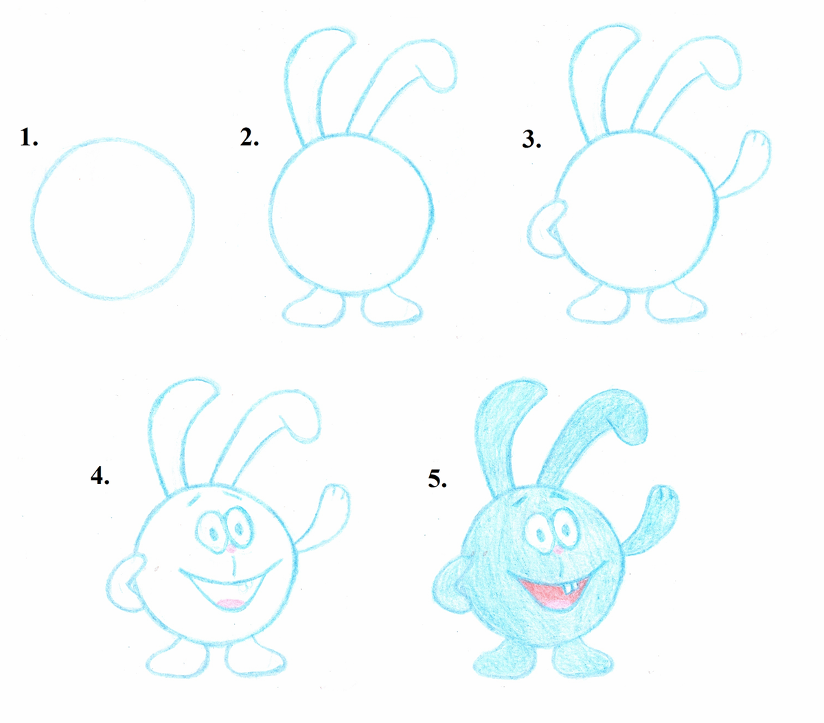 Как нарисовать Кроша из смешариков карандашом поэтапно