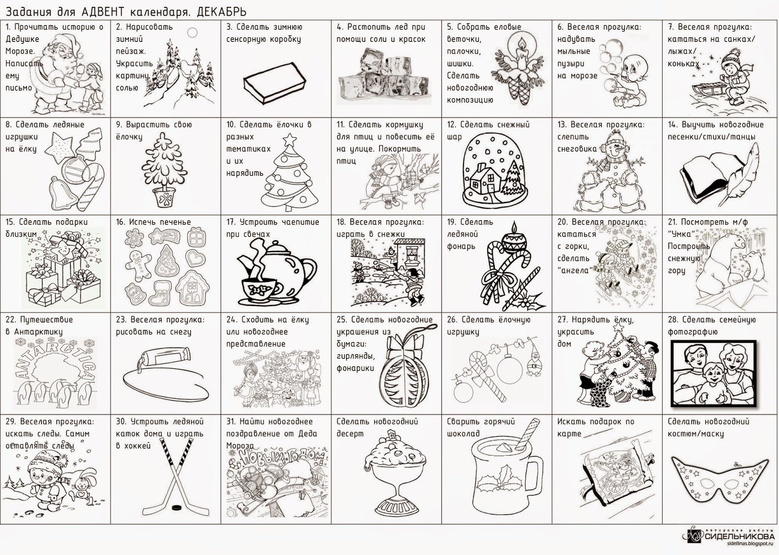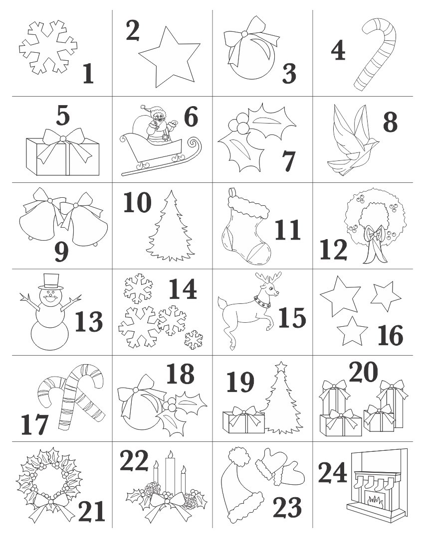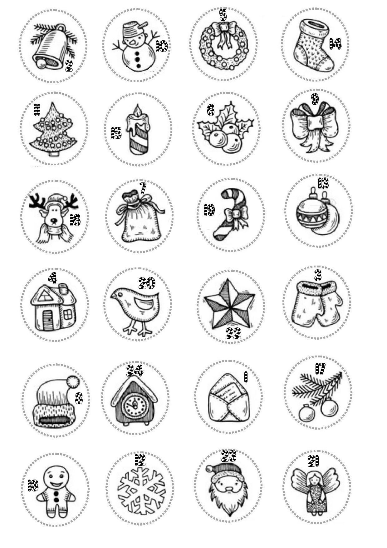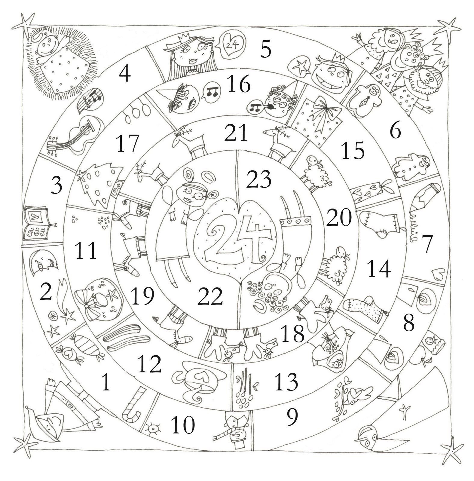 Адвент календарь раскраска для детей новогодний городок распечатать