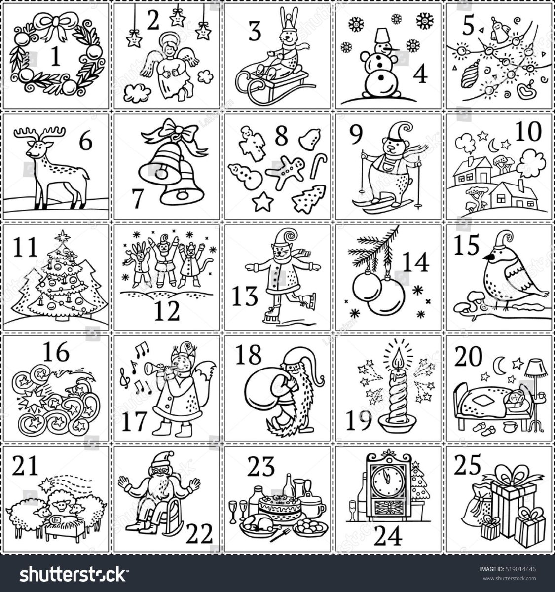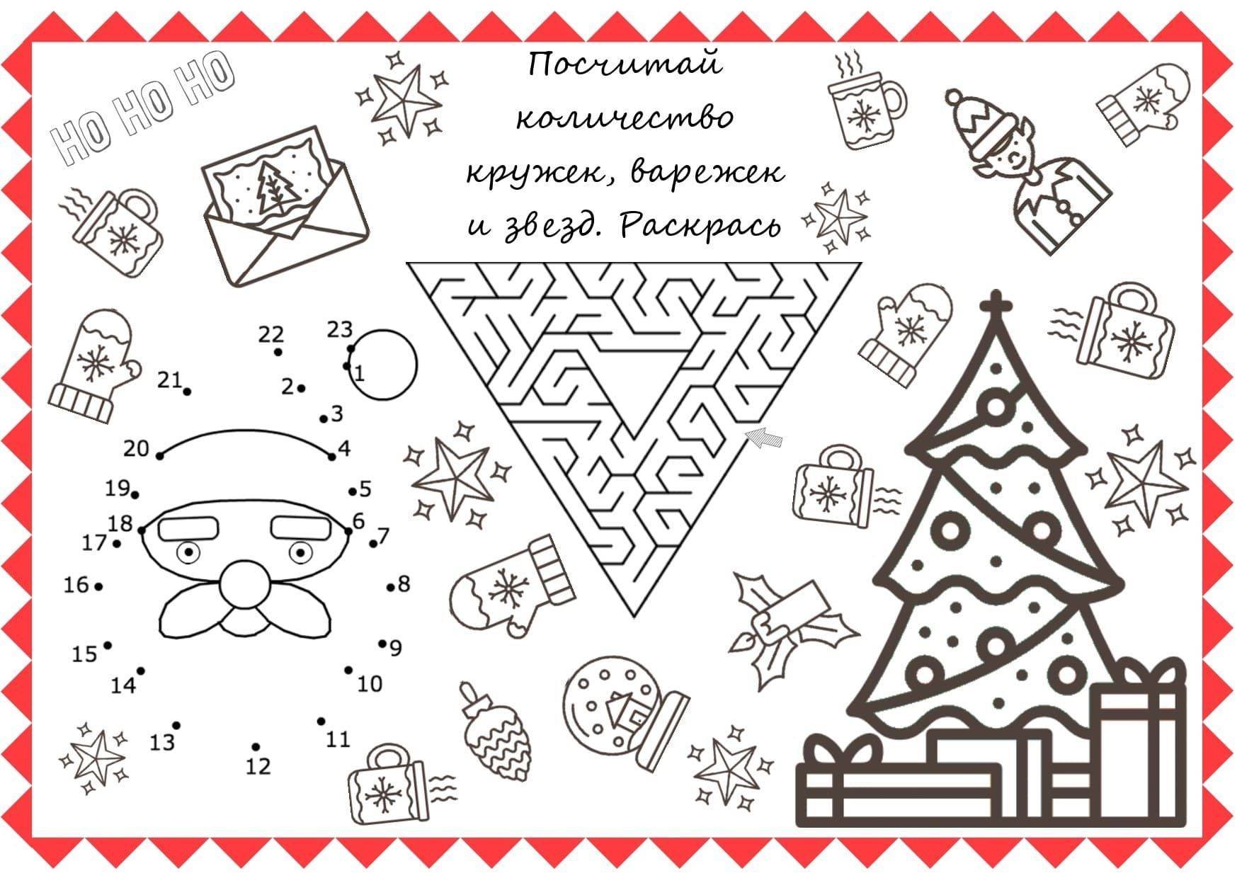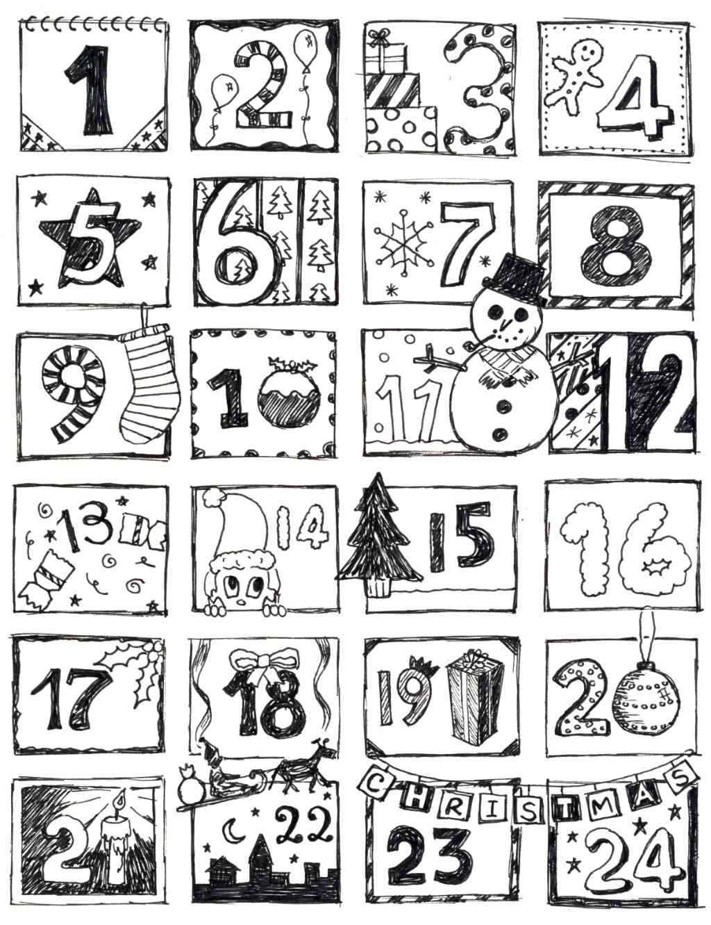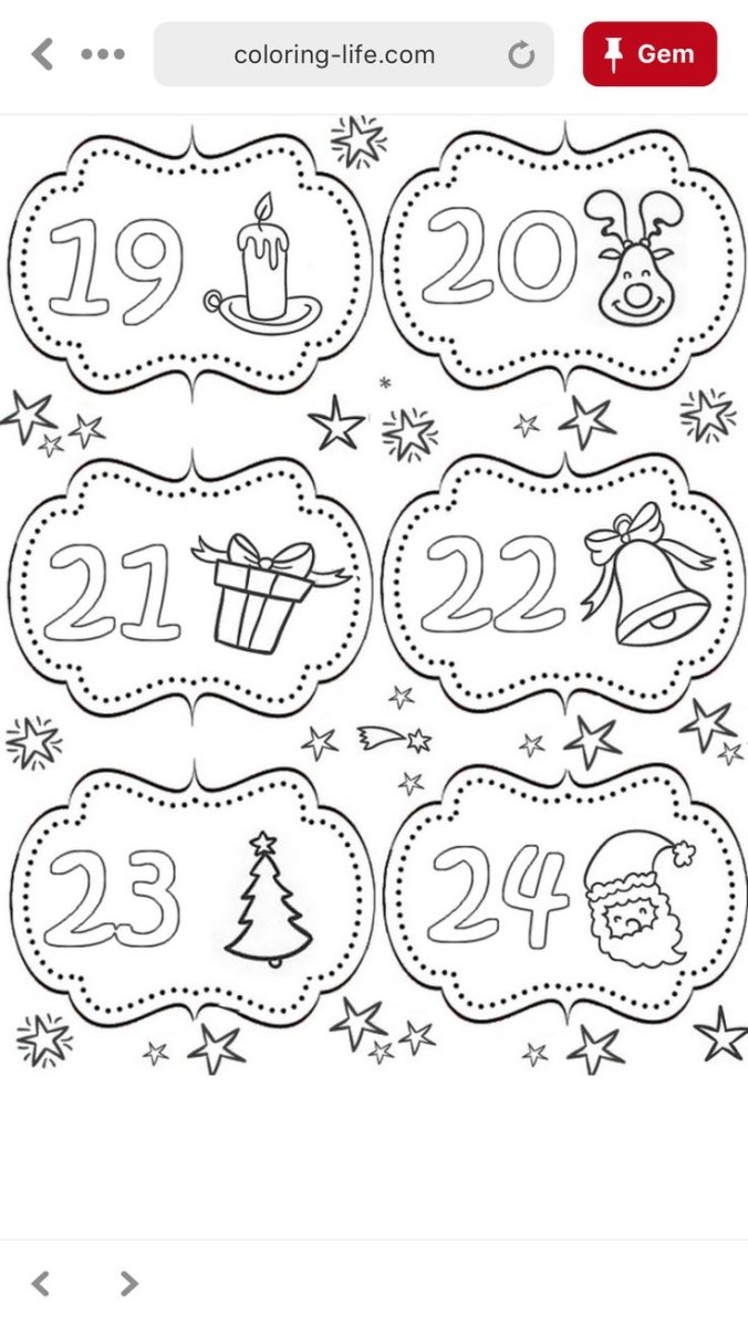 Адвент календарь раскраска для детей новогодний городок распечатать
