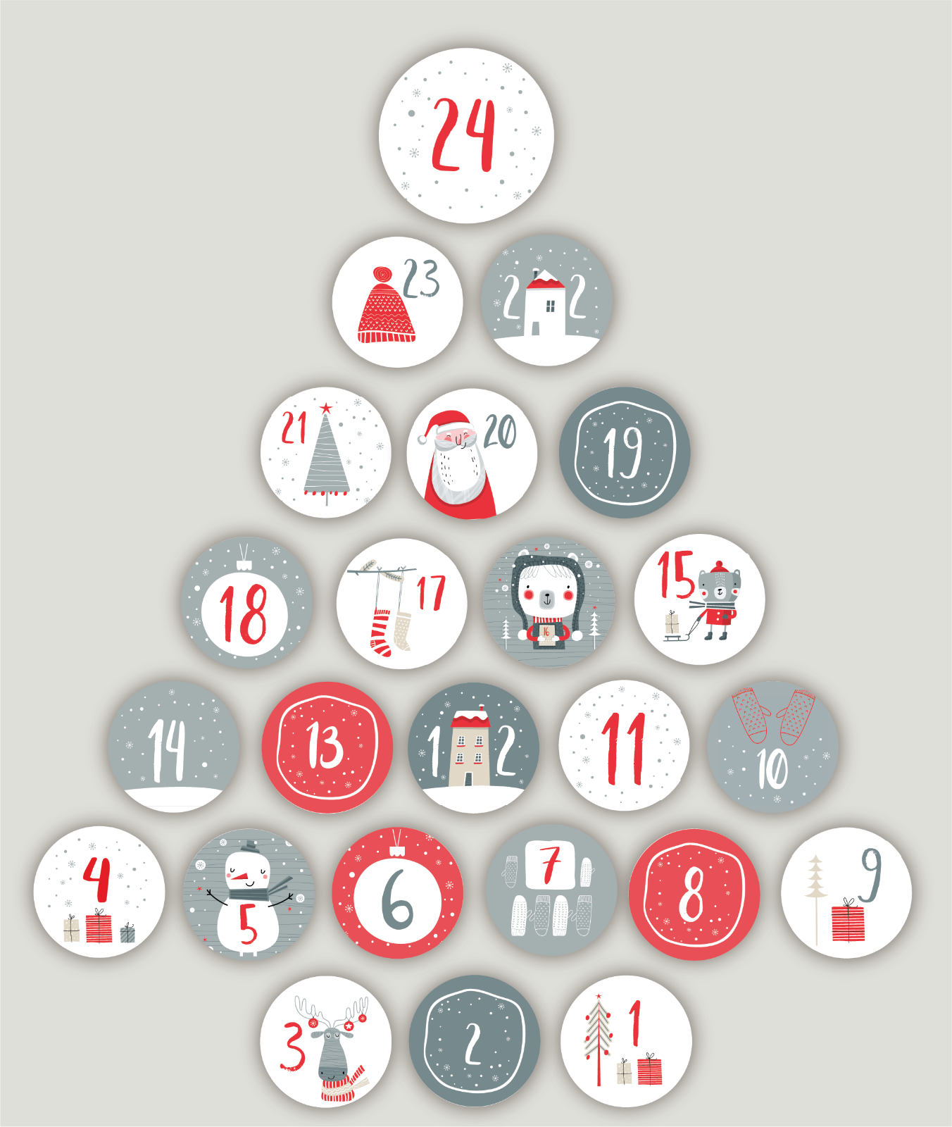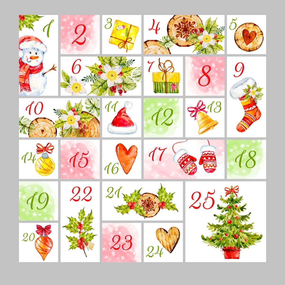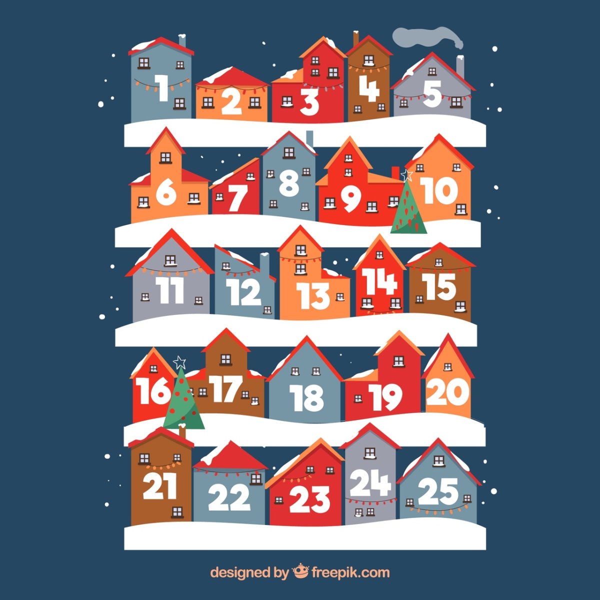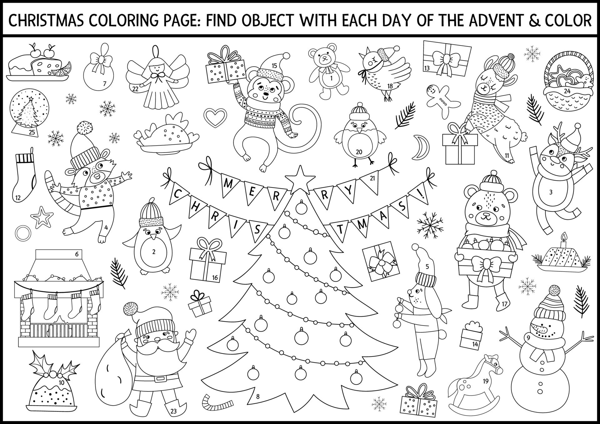 Адвент календарь раскраска для детей новогодний городок распечатать