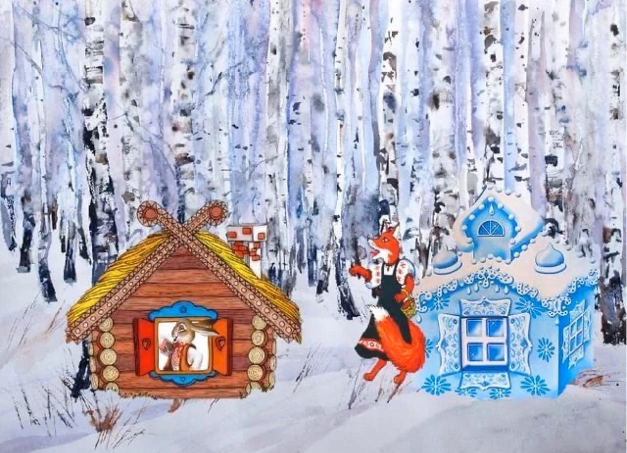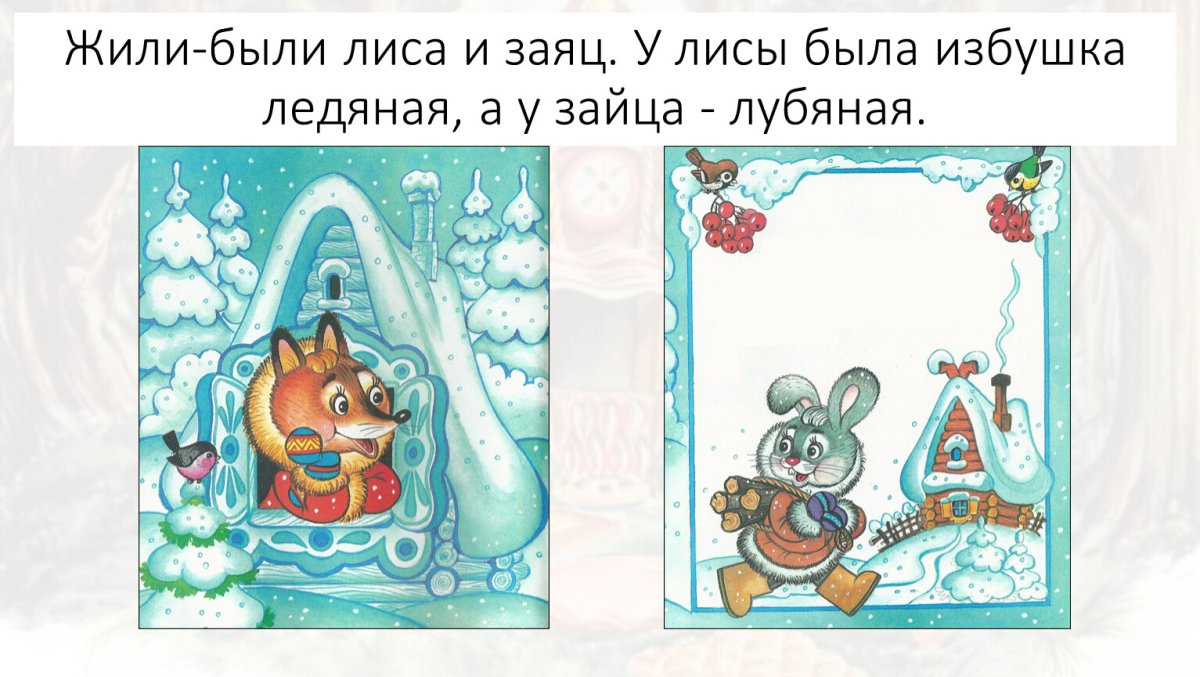 Сказка у зайчика избушка Лубяная а у лисы Ледяная