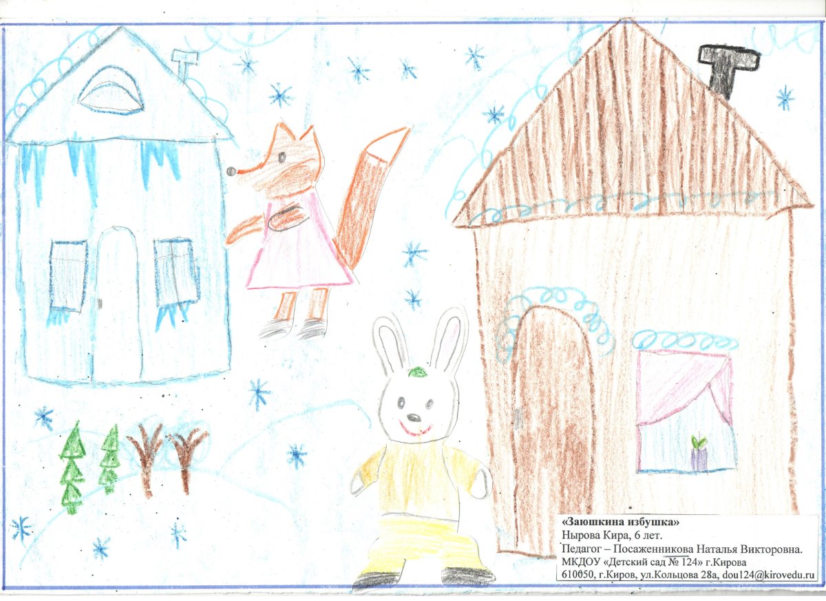 Рисование была у зайчика избушка Лубяная а у лисы Ледяная