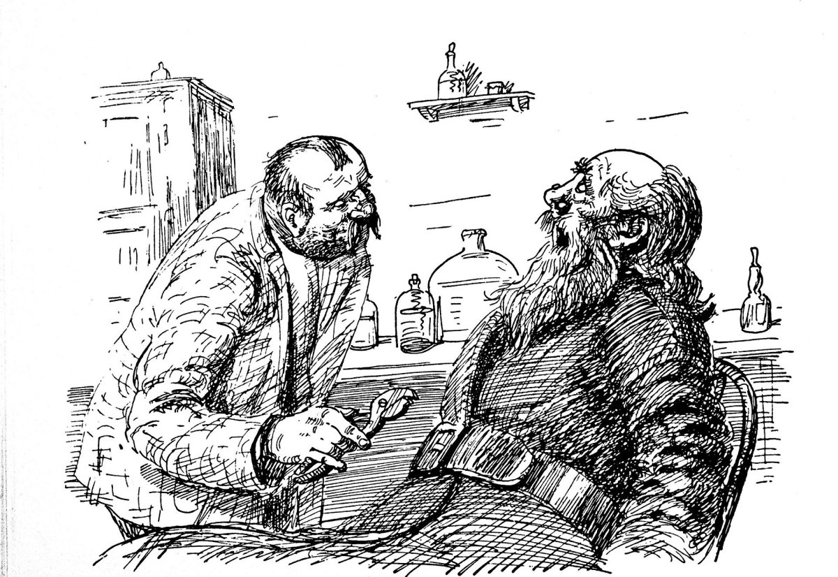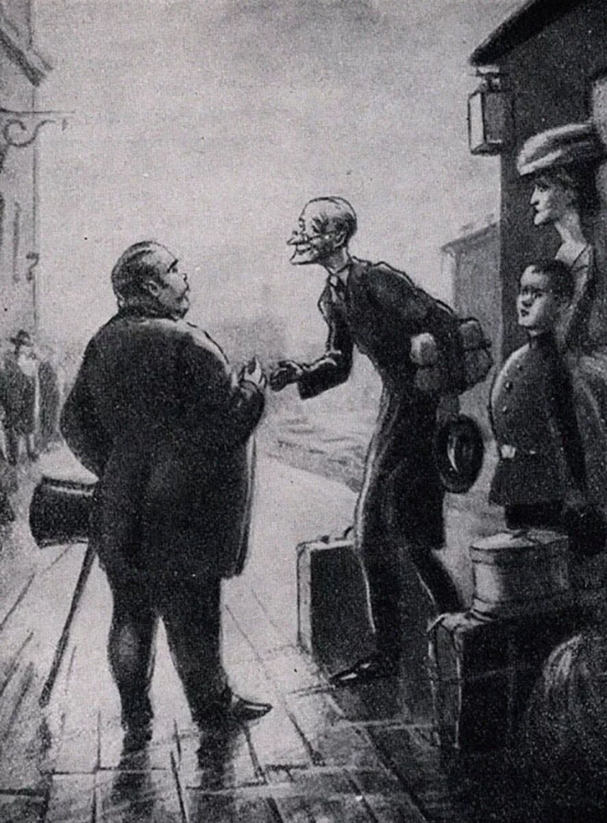 Иллюстрация к рассказу Чехова толстый и тонкий