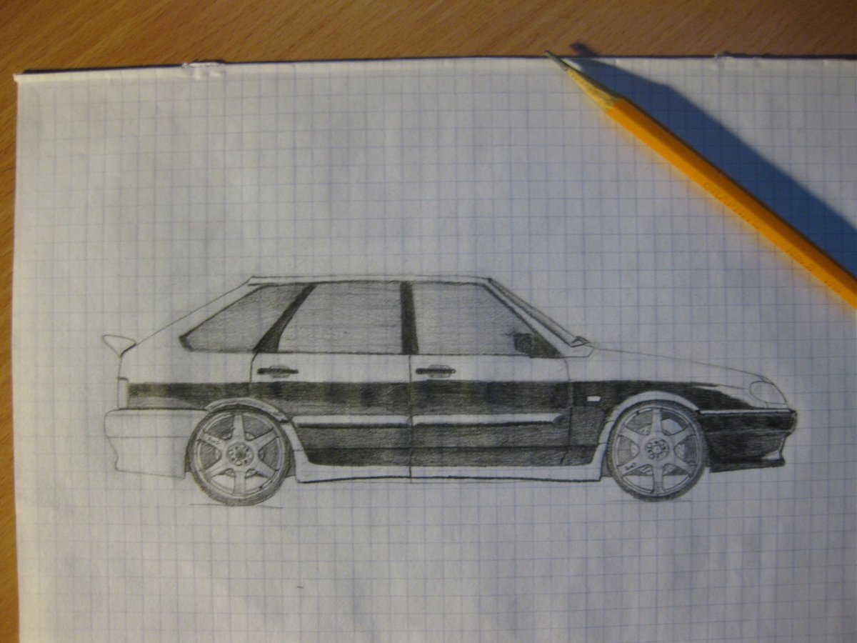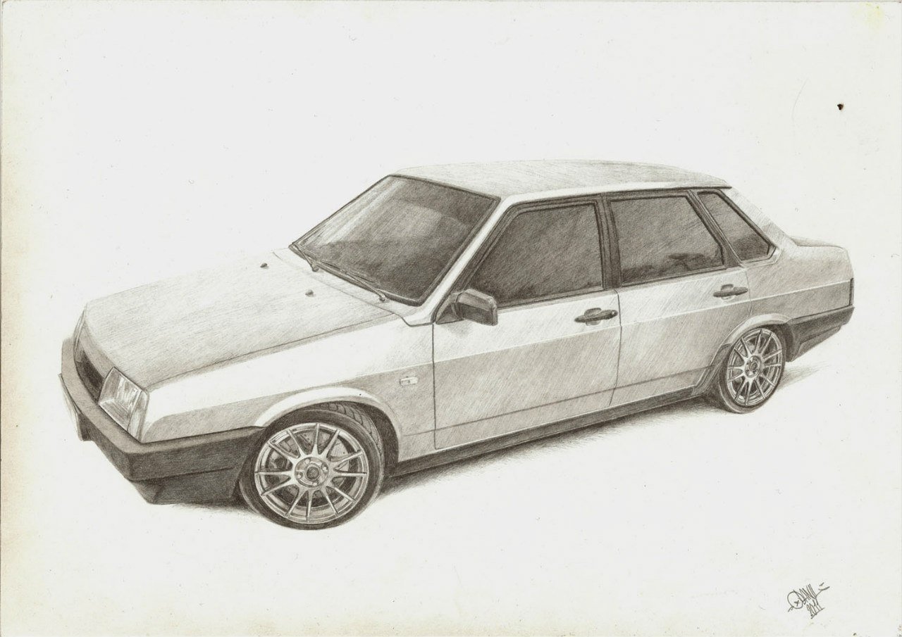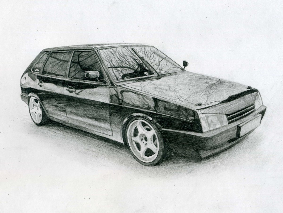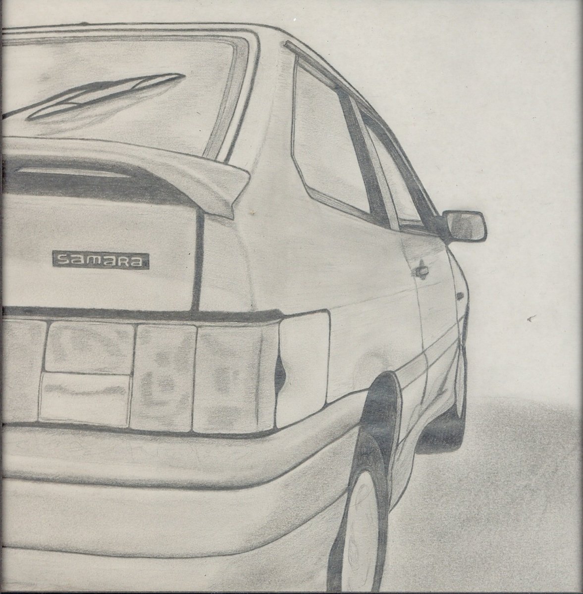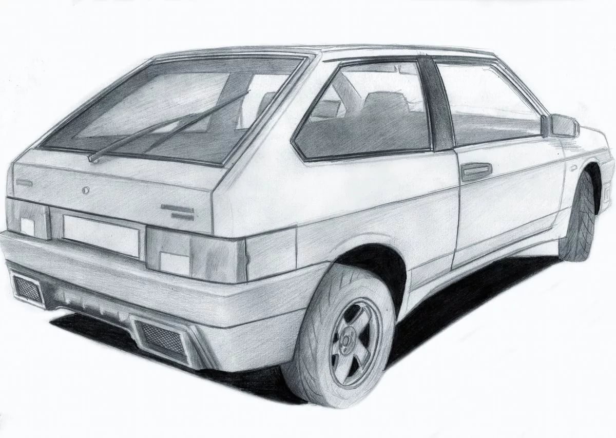 Нарисовать ВАЗ 2108 карандашом легко сбоку